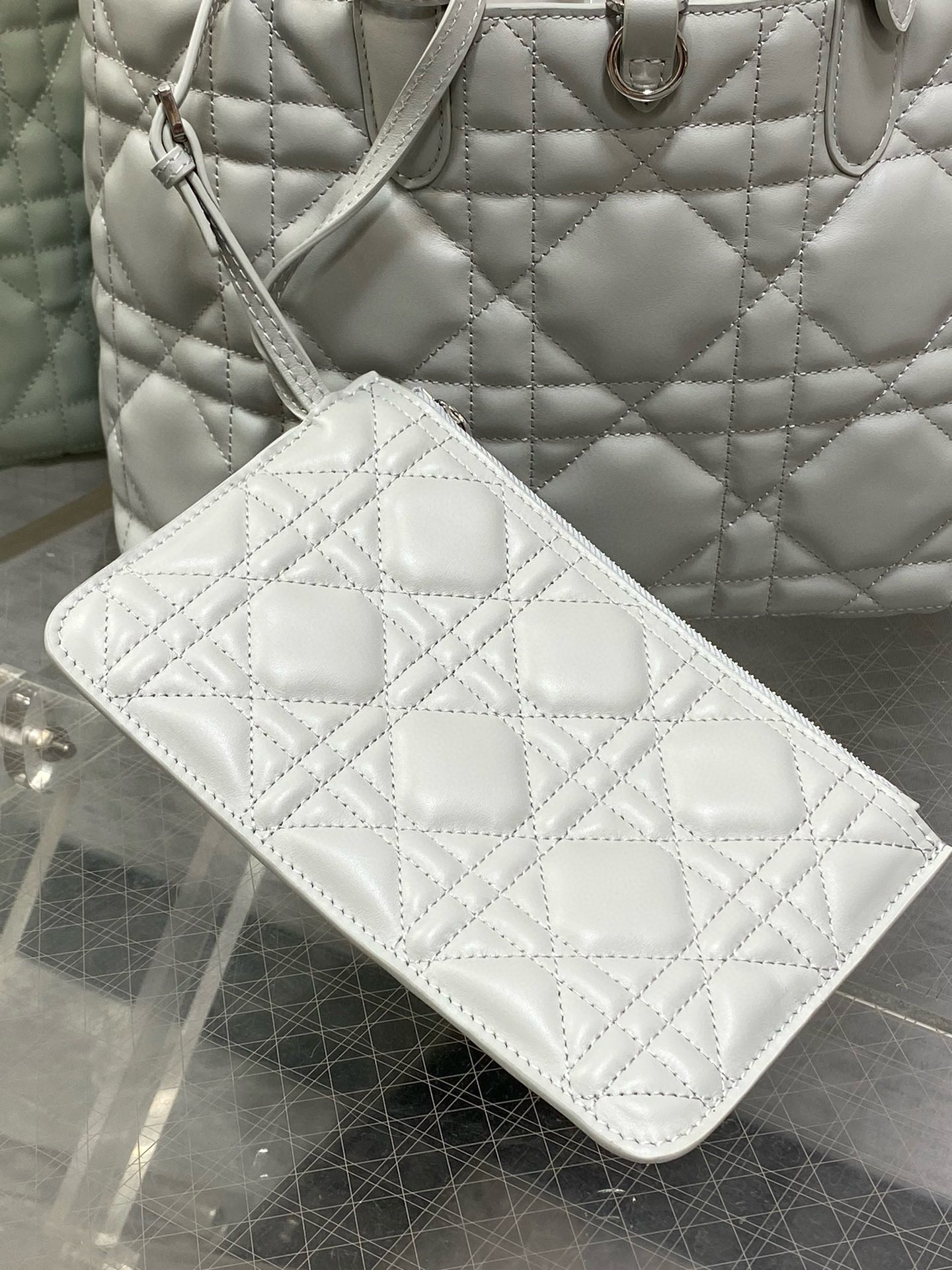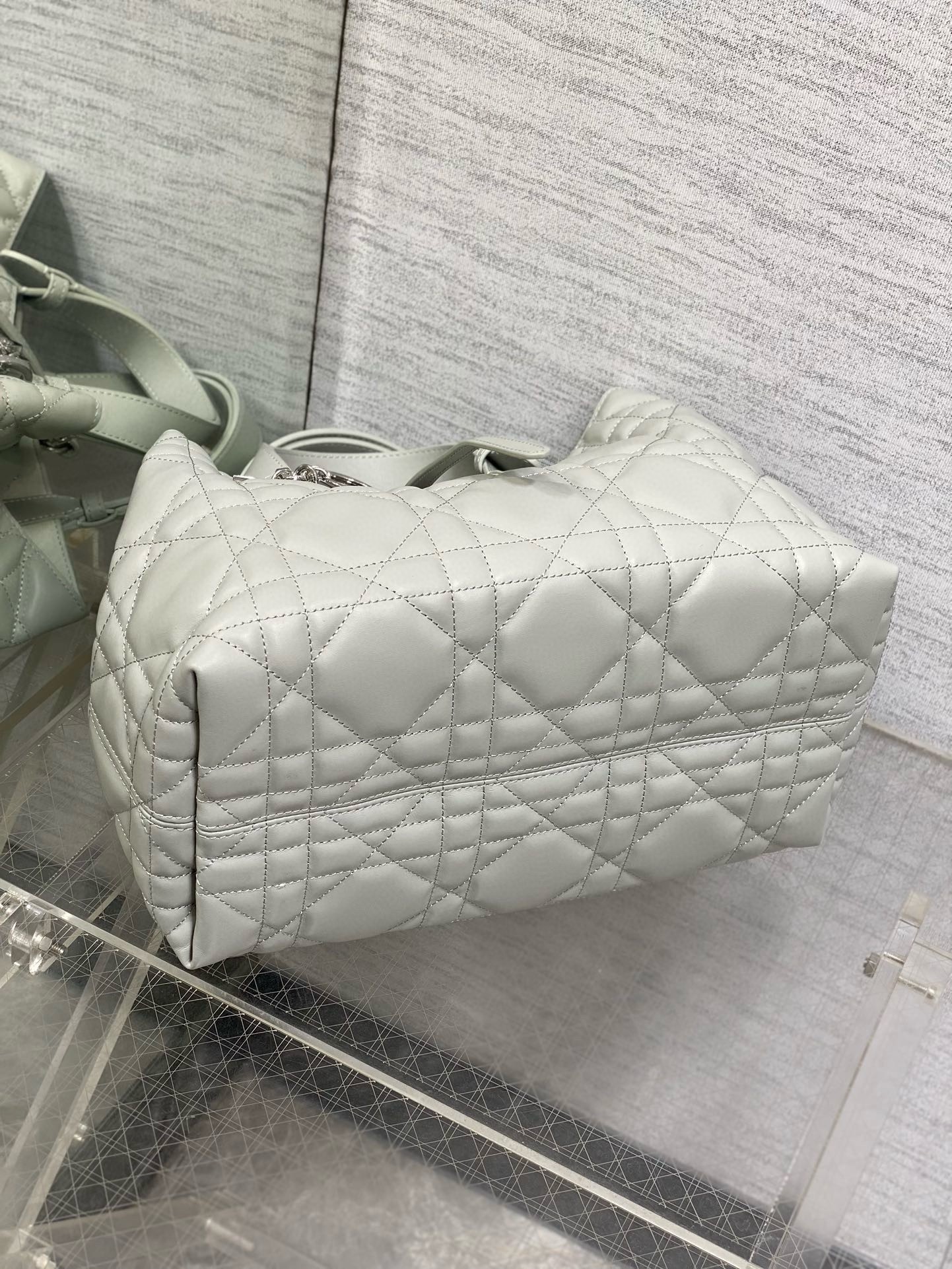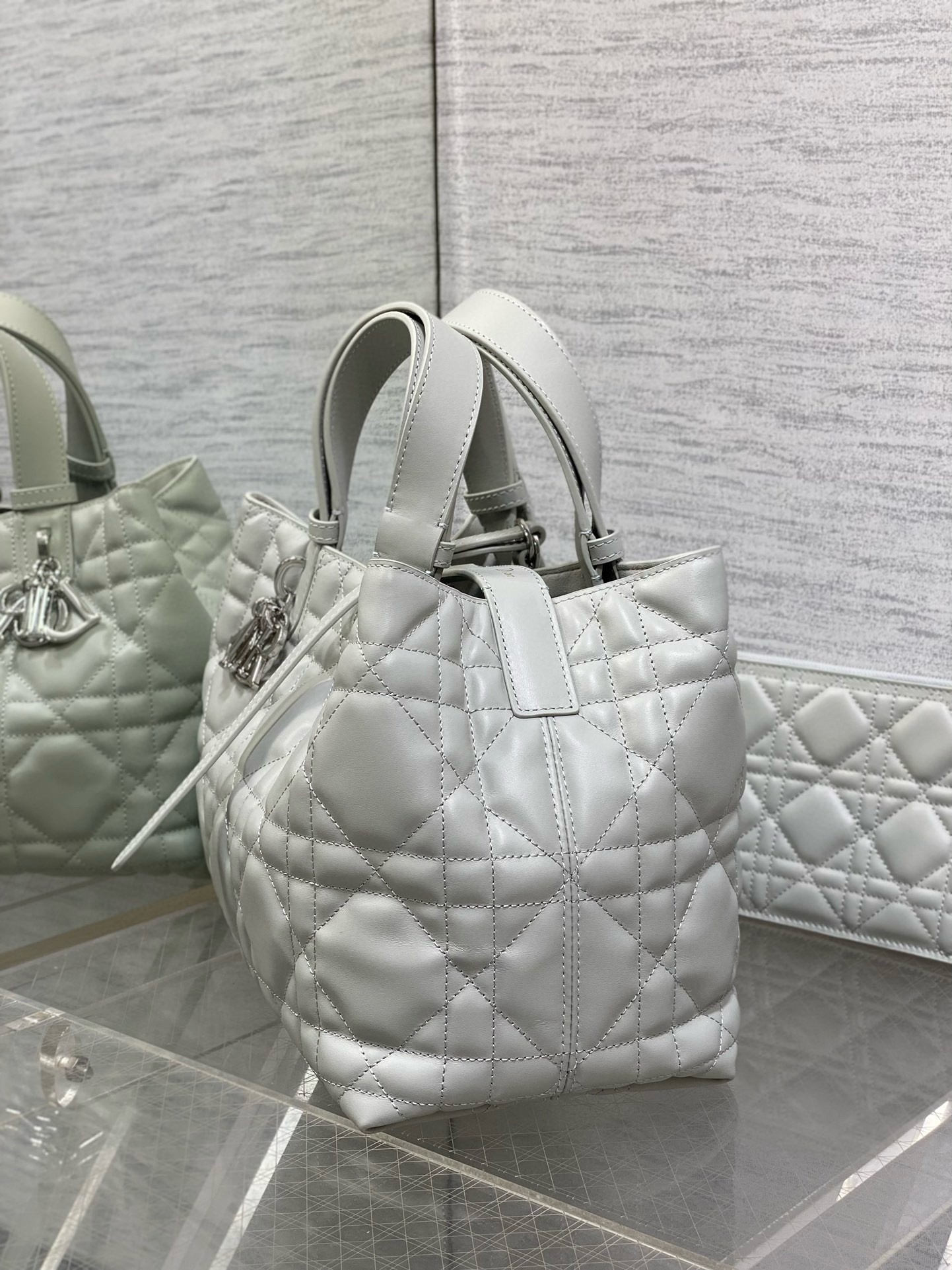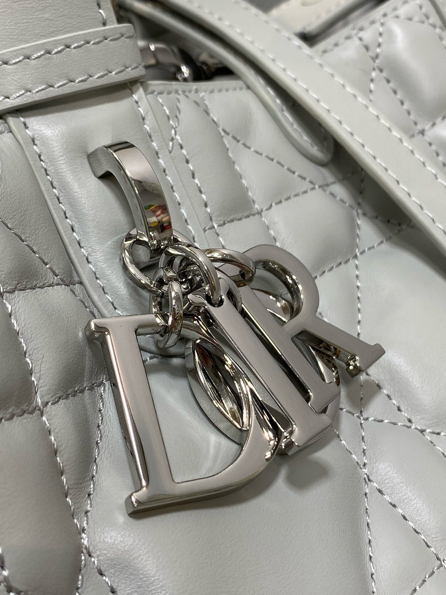 The Dior Toujours bag is distinguished by a casual and practical design. Crafted in calfskin with Macrocannage topstitching, it showcases a spacious interior compartment with a matching pouch to organize the essentials. Its thin leather strap closure keeps items secure while the D of the CD Lock clasp twists to adjust the sides and enhance the bag's silhouette. The leather handles can be adjusted using the small notches so the medium bag can be carried by hand or worn over the shoulder.