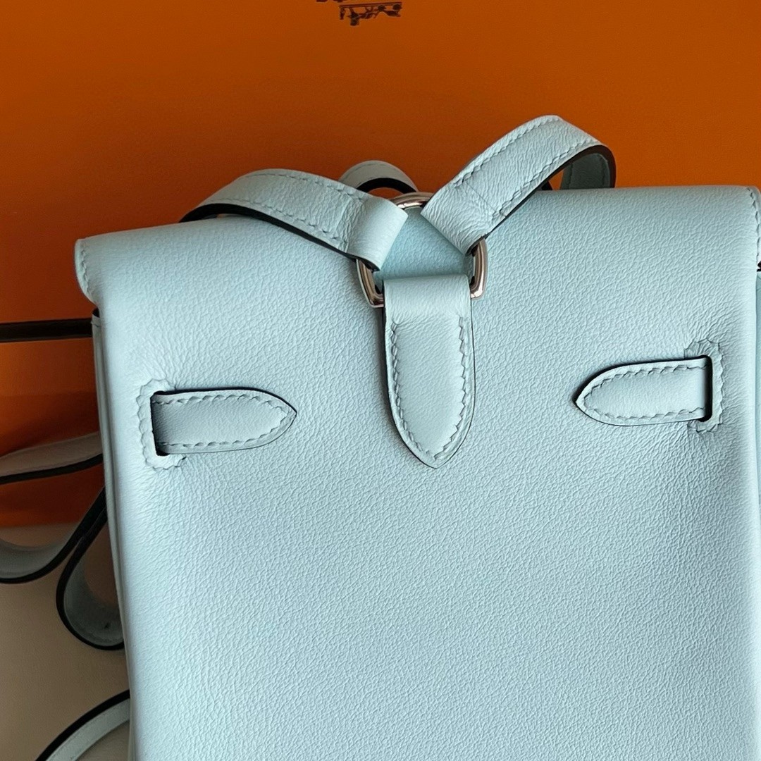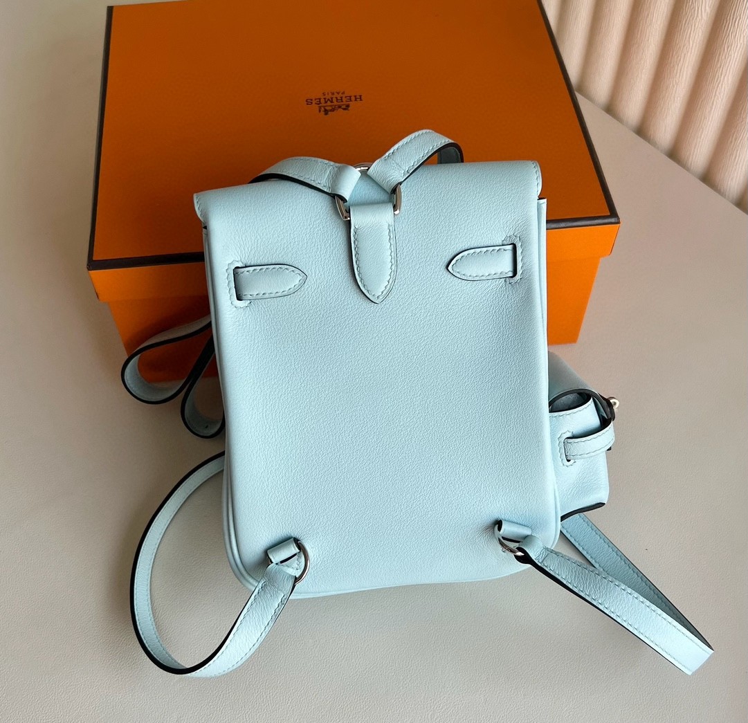 Hermes Kelly Jump Backpack in Blue Brume Swift Calfskin