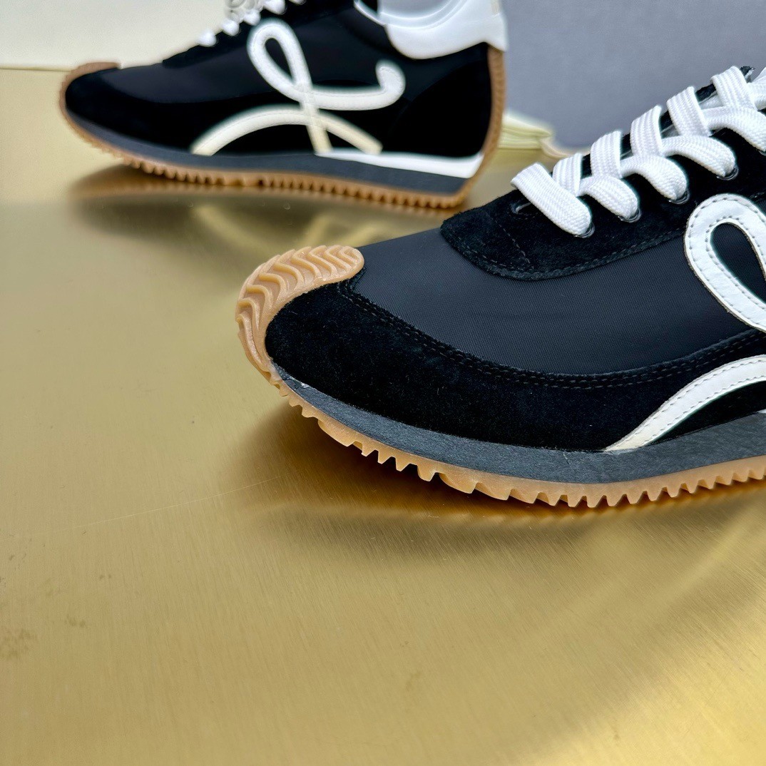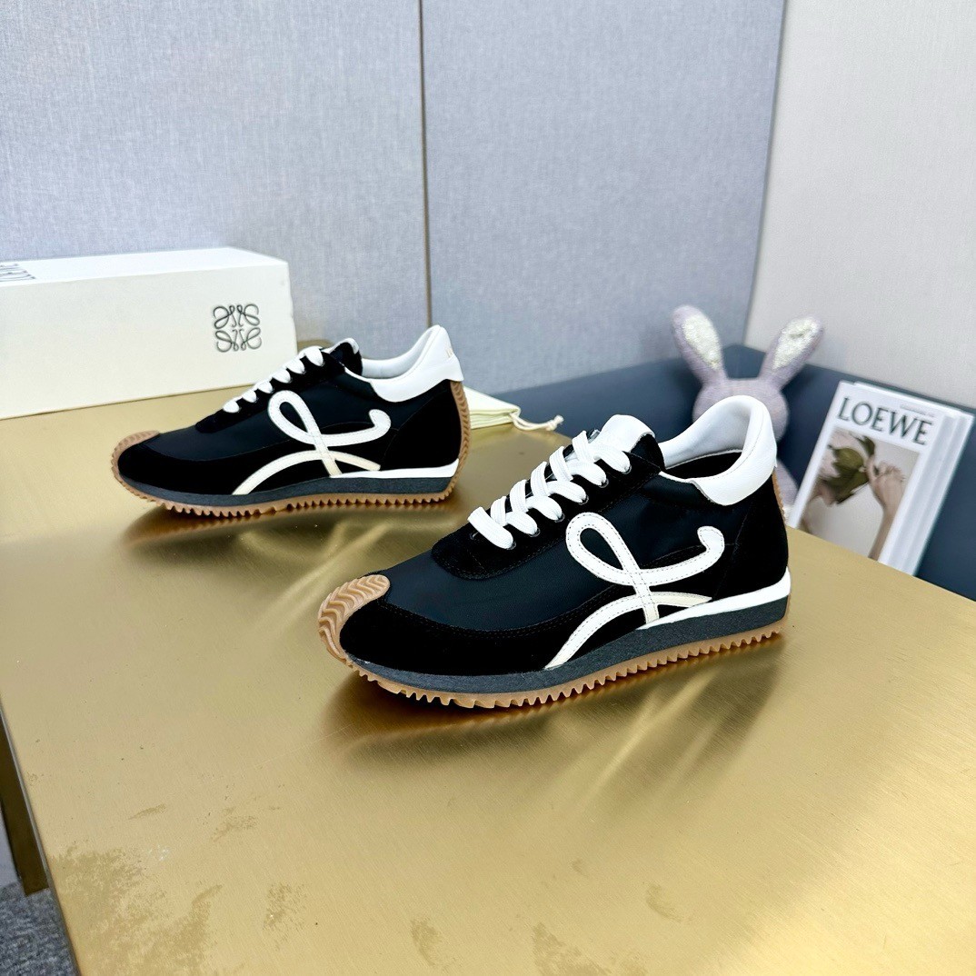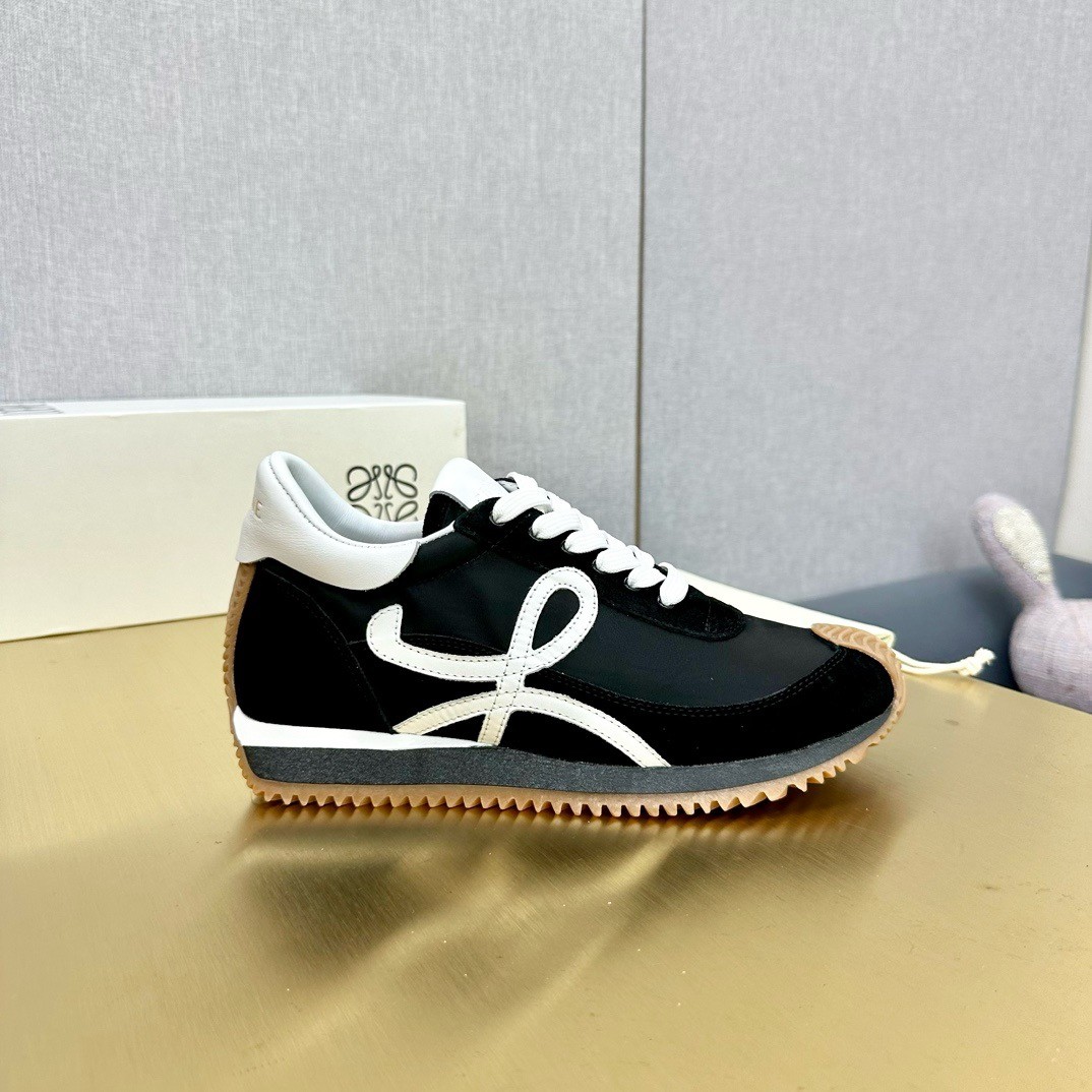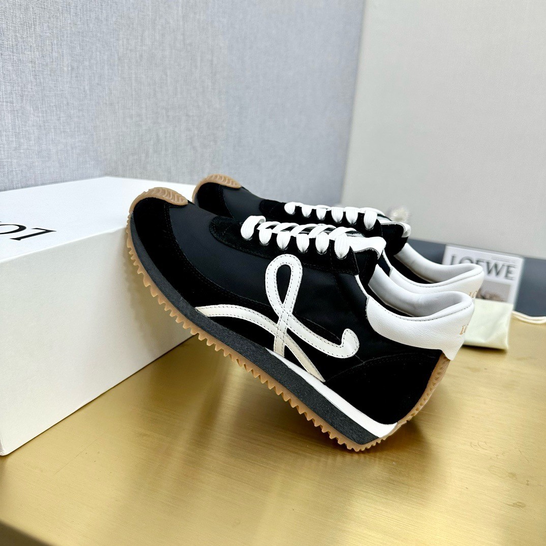 When it comes to branding, Loewe usually keeps it low-key - fans will recognize the swirling appliqués on these 'Flow' sneakers as the house's 'Anagram' emblem. Modeled on '70s styles, they've been made from supple leather, suede and shell and have gripped rubber soles that curve up the toes and heels.