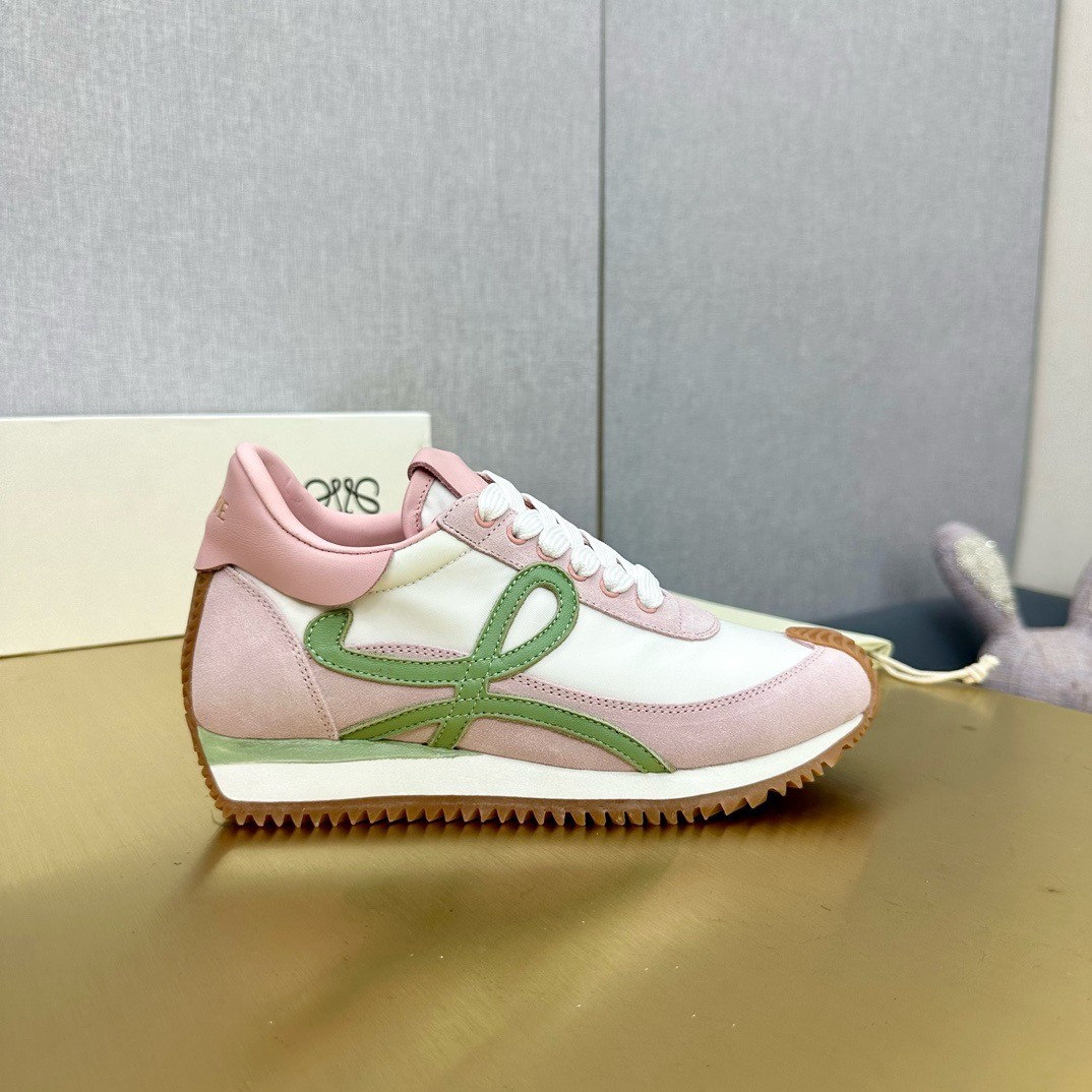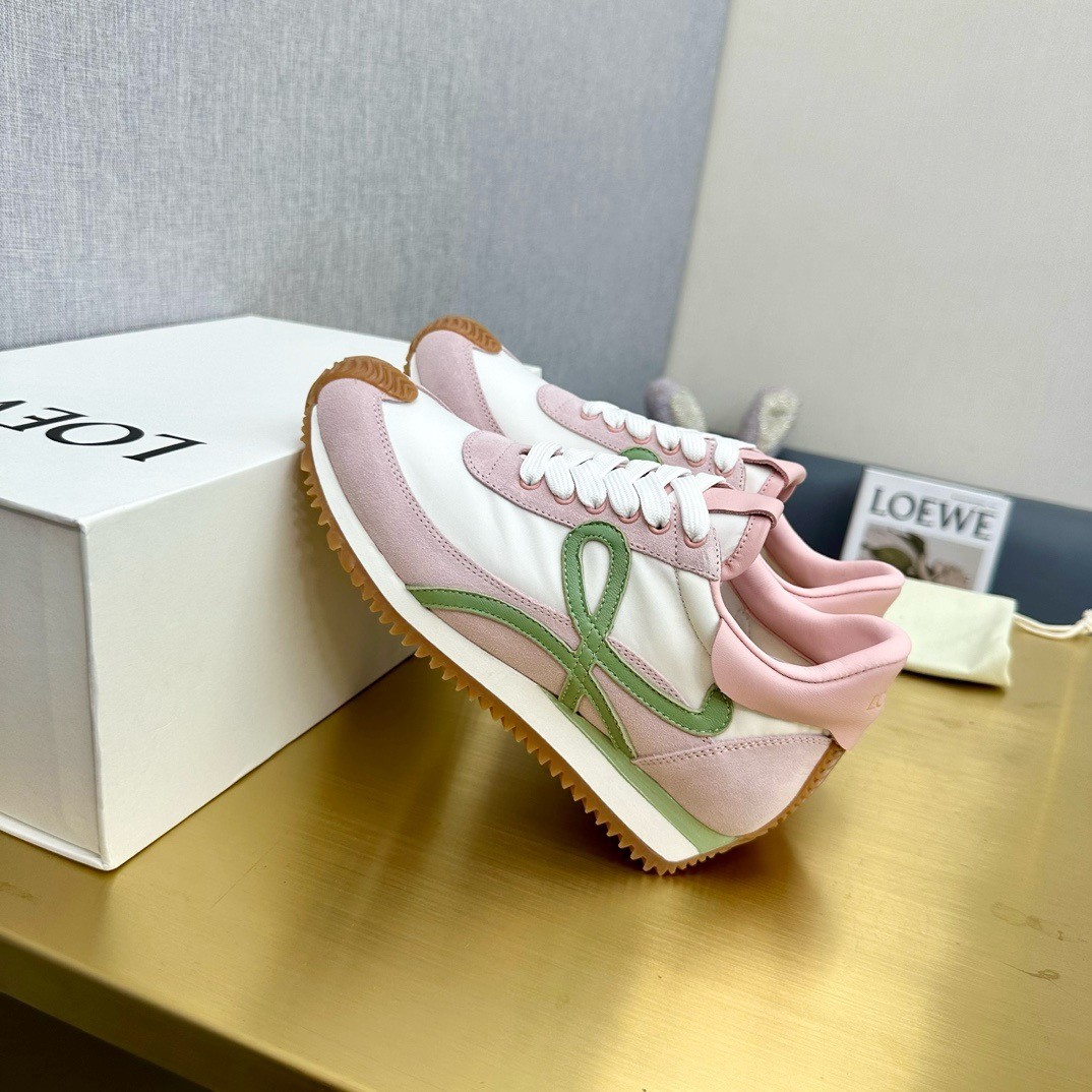 Loewe Women's Flow Runner Sneakers in White Nylon and Pink Suede