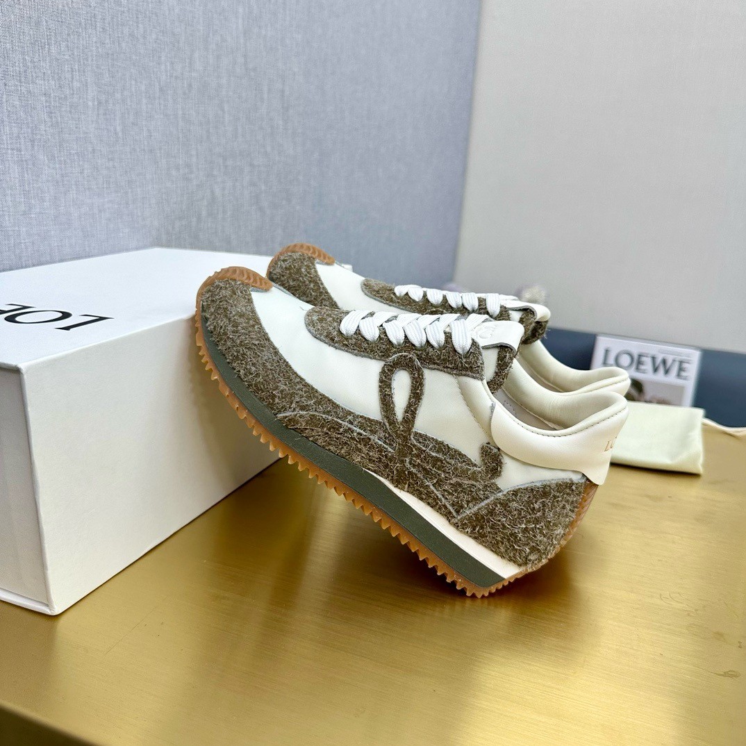 Loewe Women's Flow Runner Sneakers in Green Brushed Suede