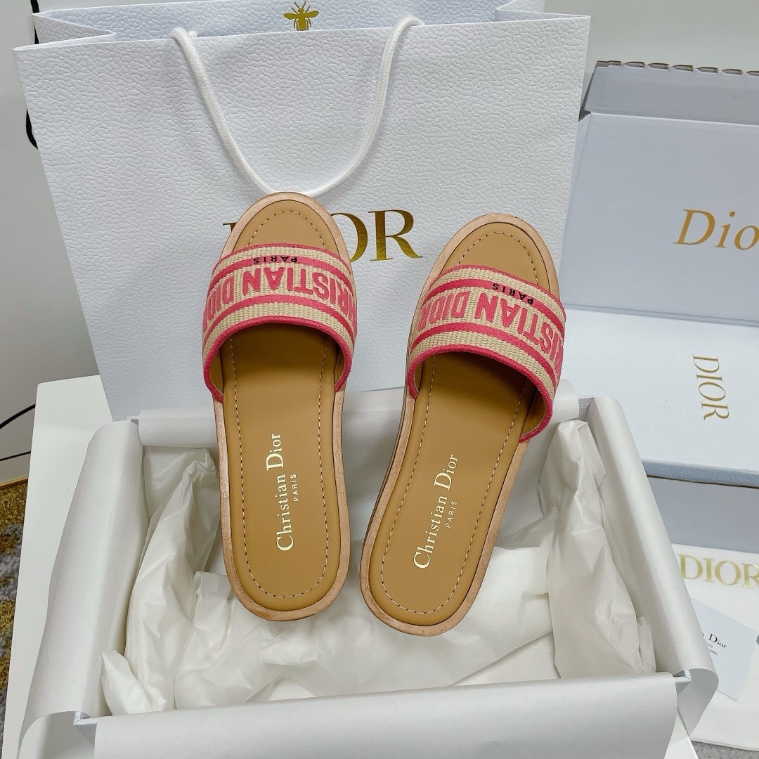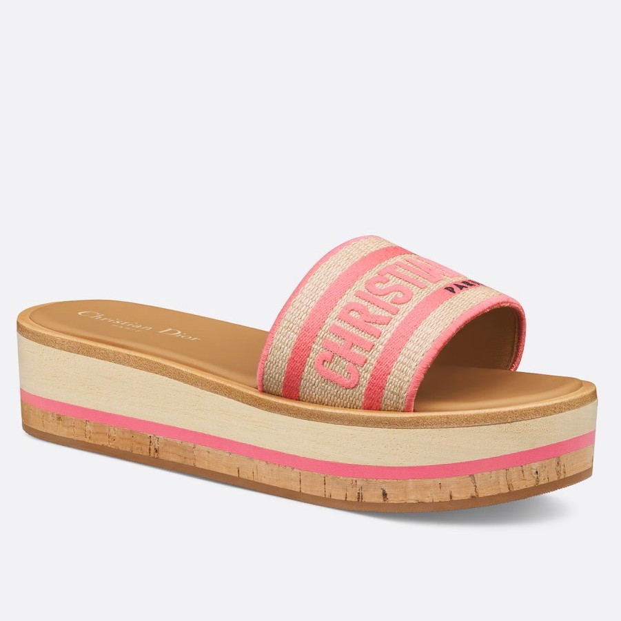 New for Fall 2024, the Dway platform slide has a modern and casual look. The natural raffia and cotton upper is embroidered with the instantly recognizable Christian Dior Paris signature. Completed by a thick sole in wood, black rubber and cork, the shoe will elevate any of the season's looks.