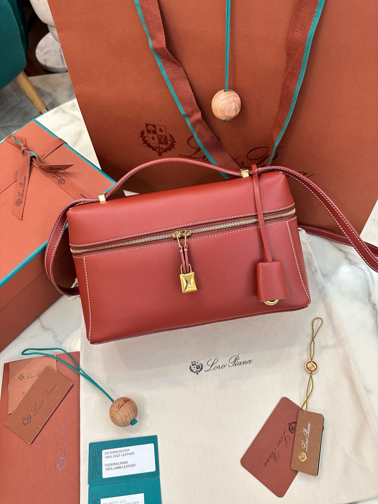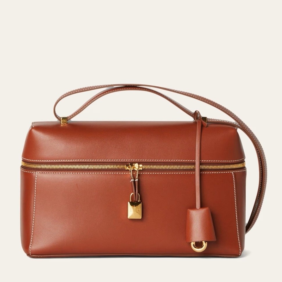 Defined by its boxy, elongated shape, Loro Piana's Extra L27 bag is inspired by vintage travel suitcases. It's been crafted from smooth leather and has an adjustable shoulder strap, which can be extended to carry it cross-body. Inside, you'll find a small pocket for your cards and enough space for your phone, makeup compact and hand lotion.