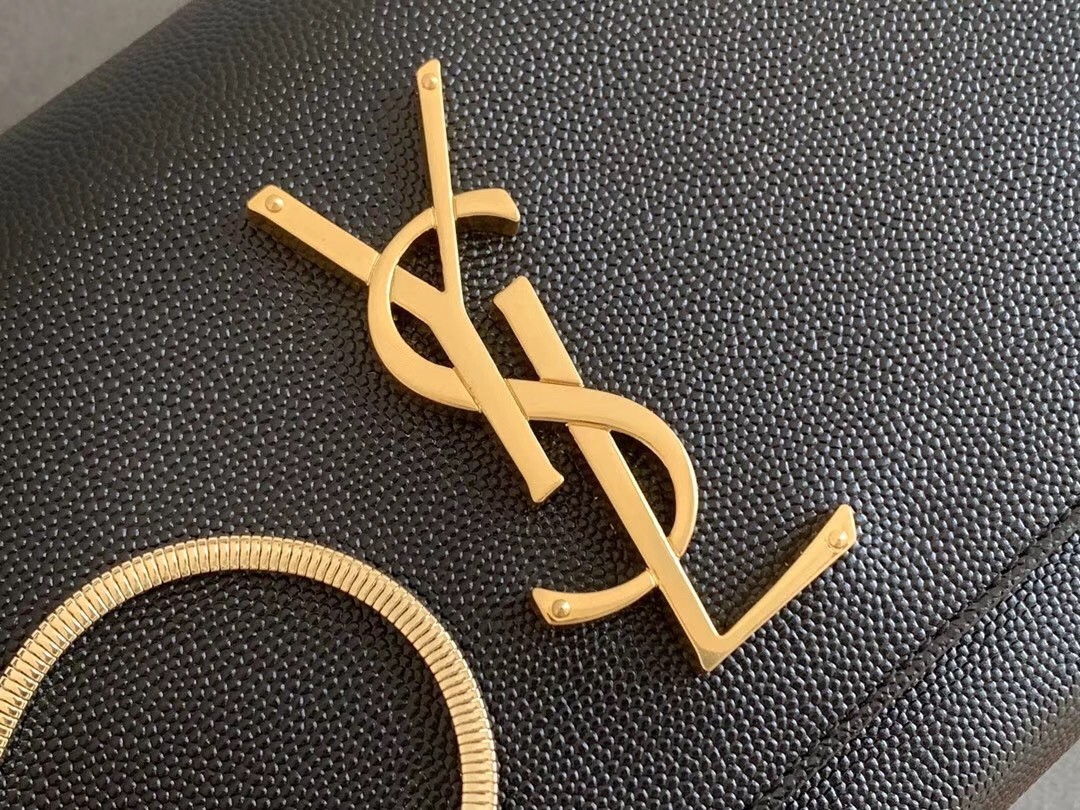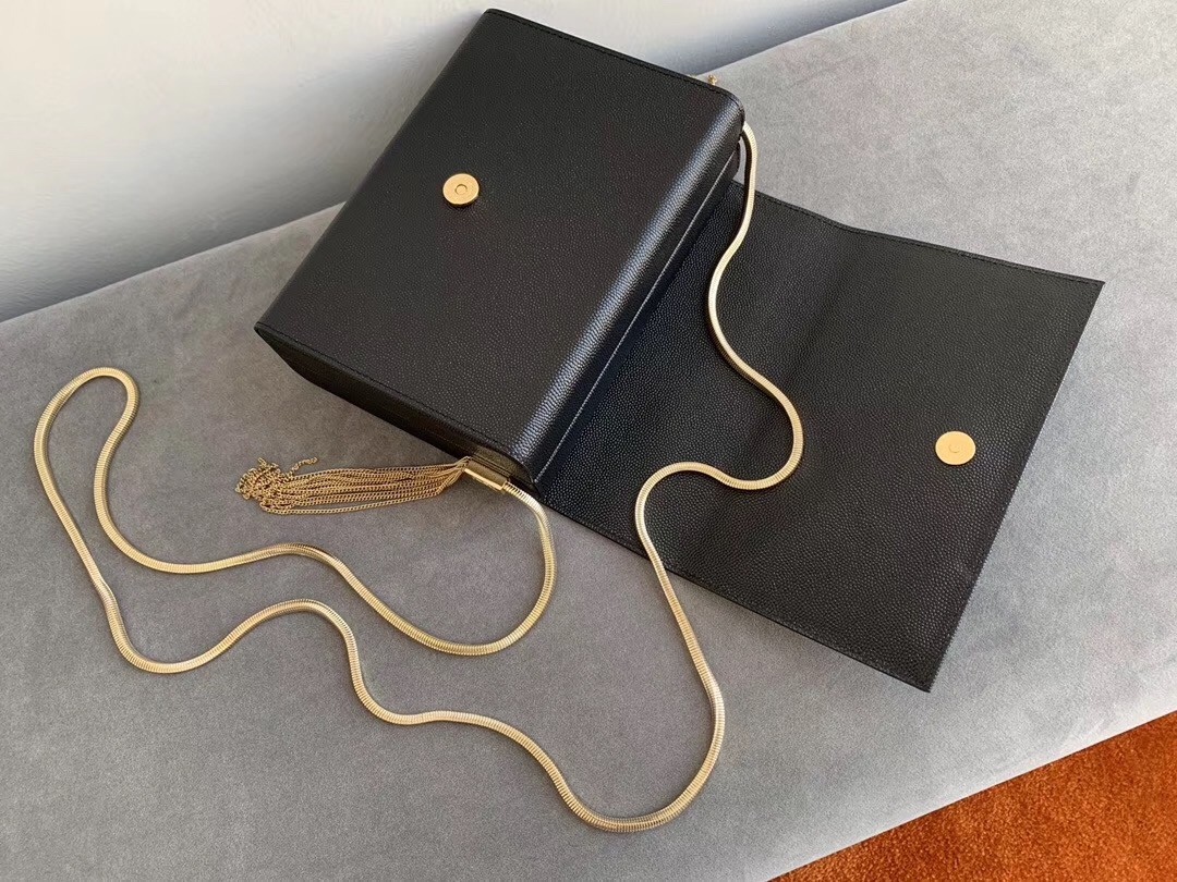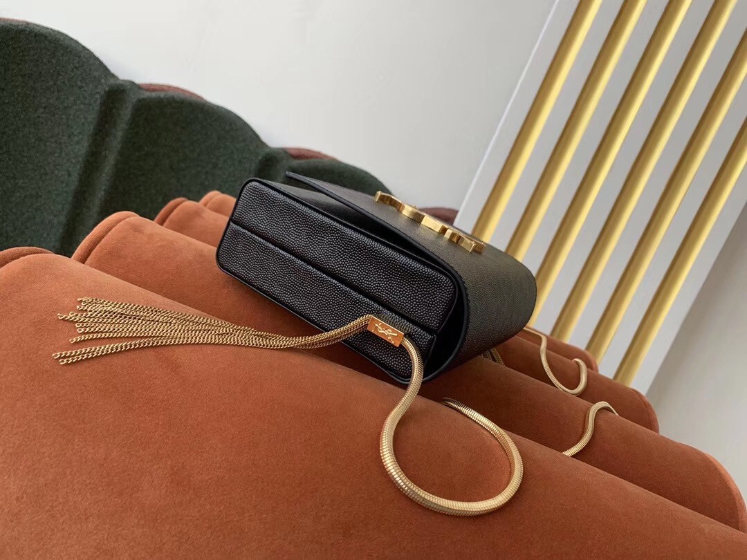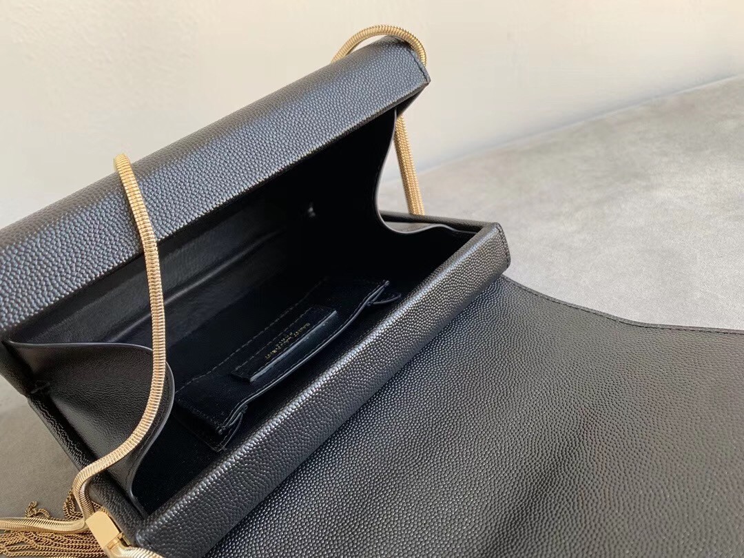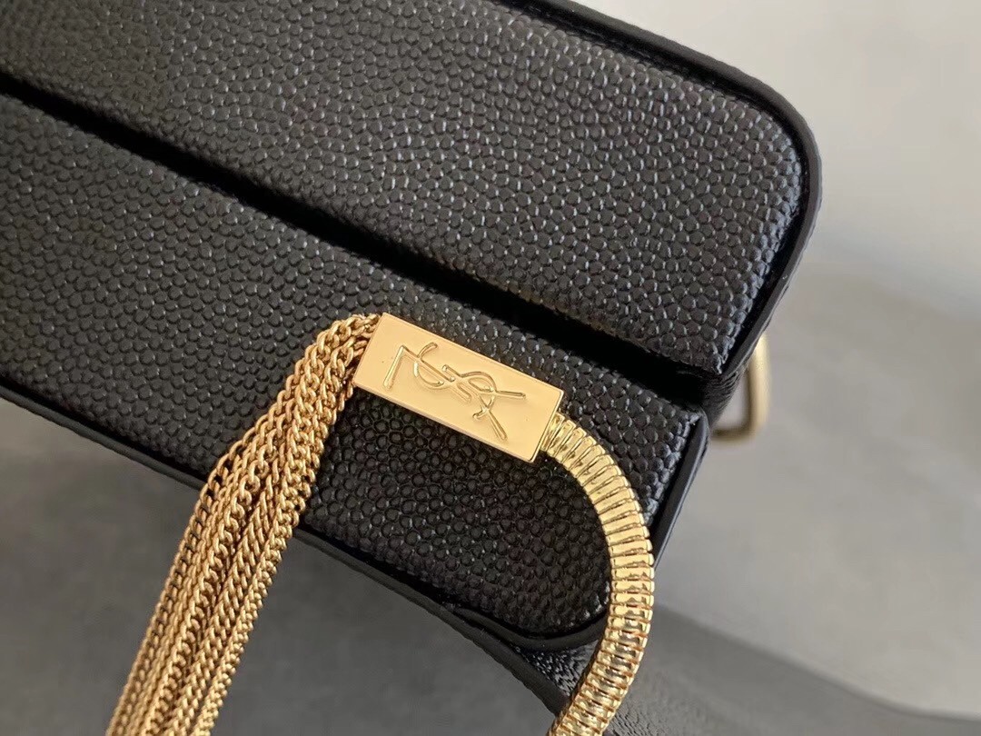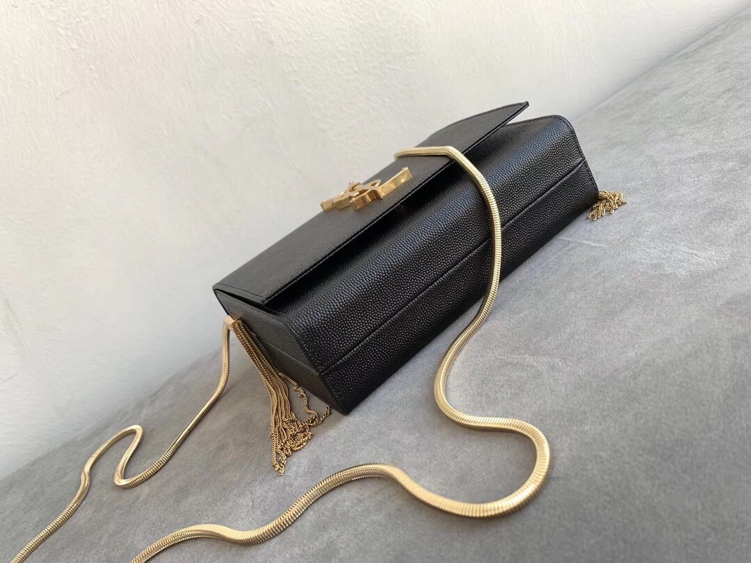 Each season, Saint Laurent's 'Kate' bag is re-imagined in line with the collection's theme. Referencing Fall '19's throwback to the brand's 1978 'Opium' launch party, this edition is embellished with a shiny gold monogram and matching swishy tassels that would have fitted right in at the soirée. It's made from textured patent-leather and sized to fit your wallet, phone and essential makeup.