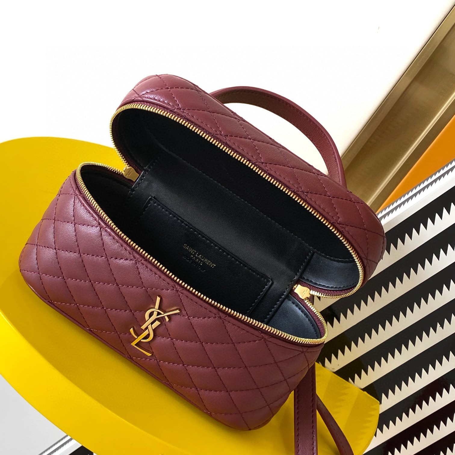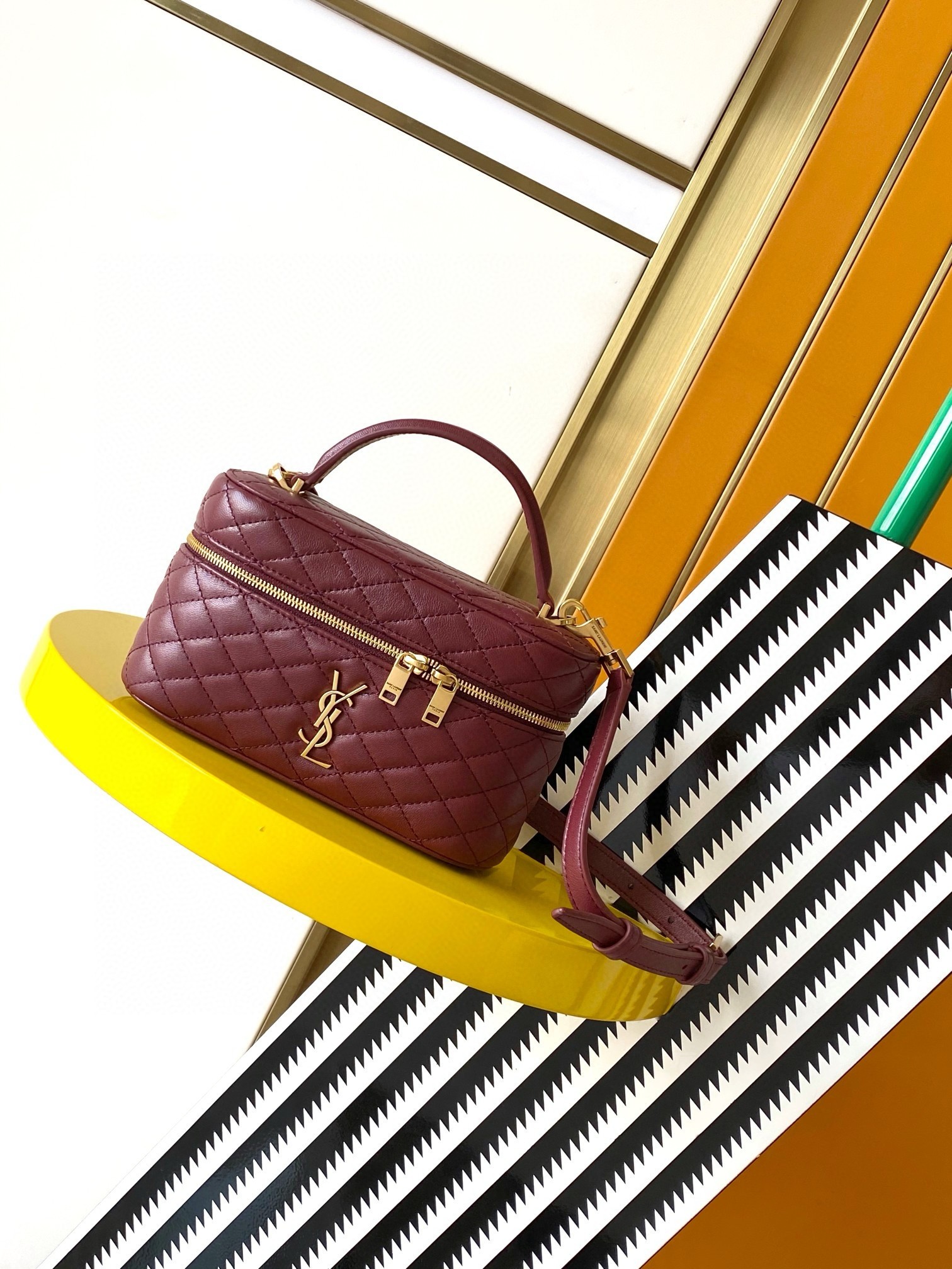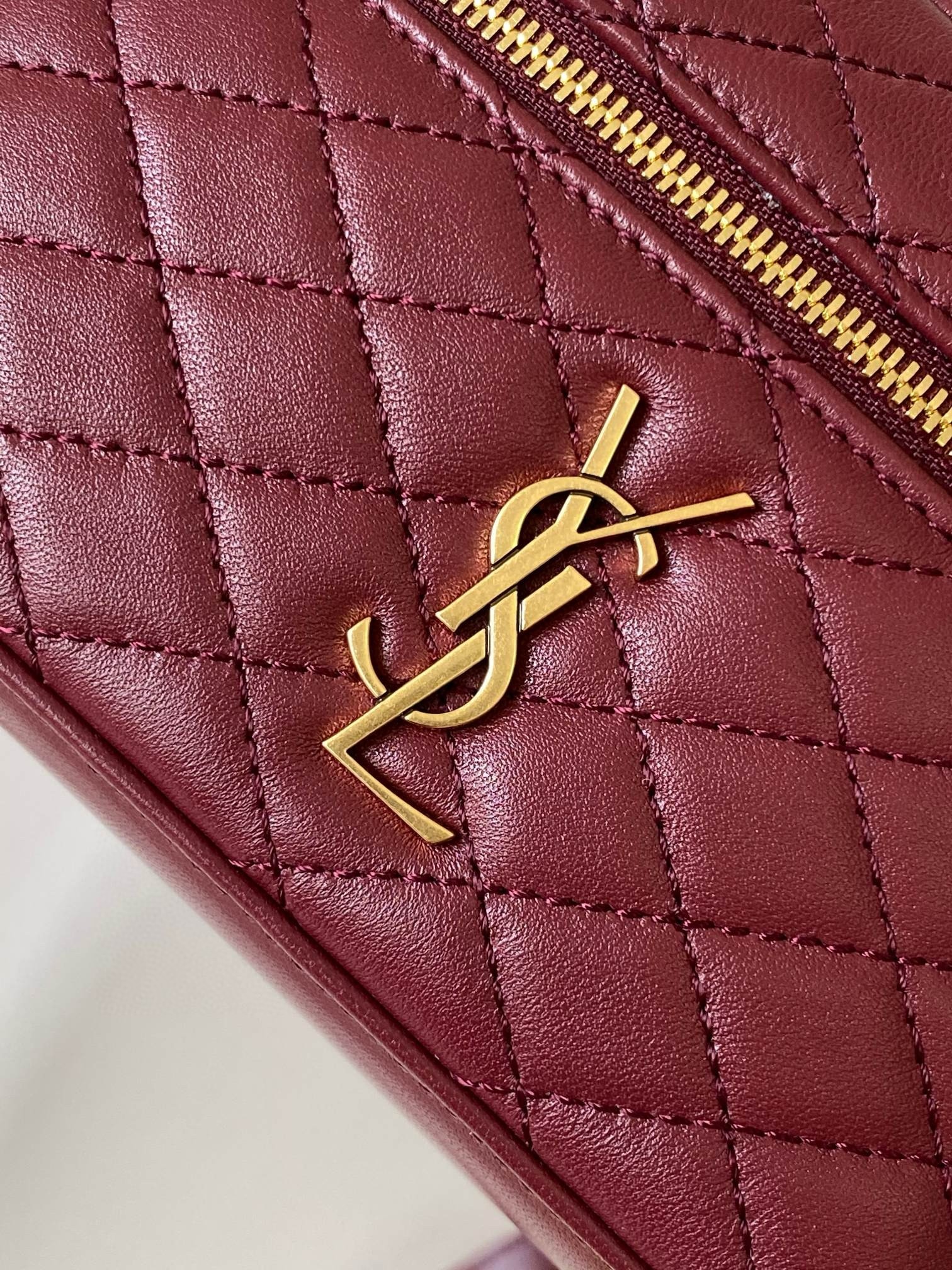 Like many of the designs in Saint Laurent's Gaby collection, this mini Vanity bag is made from quilted lambskin and embellished with its iconic gold-tone Cassandre logo. It will accommodate all of your small essentials, including a phone, cardholder, and keys. Carry it by the top handle or style it cross-body with the detachable long strap.