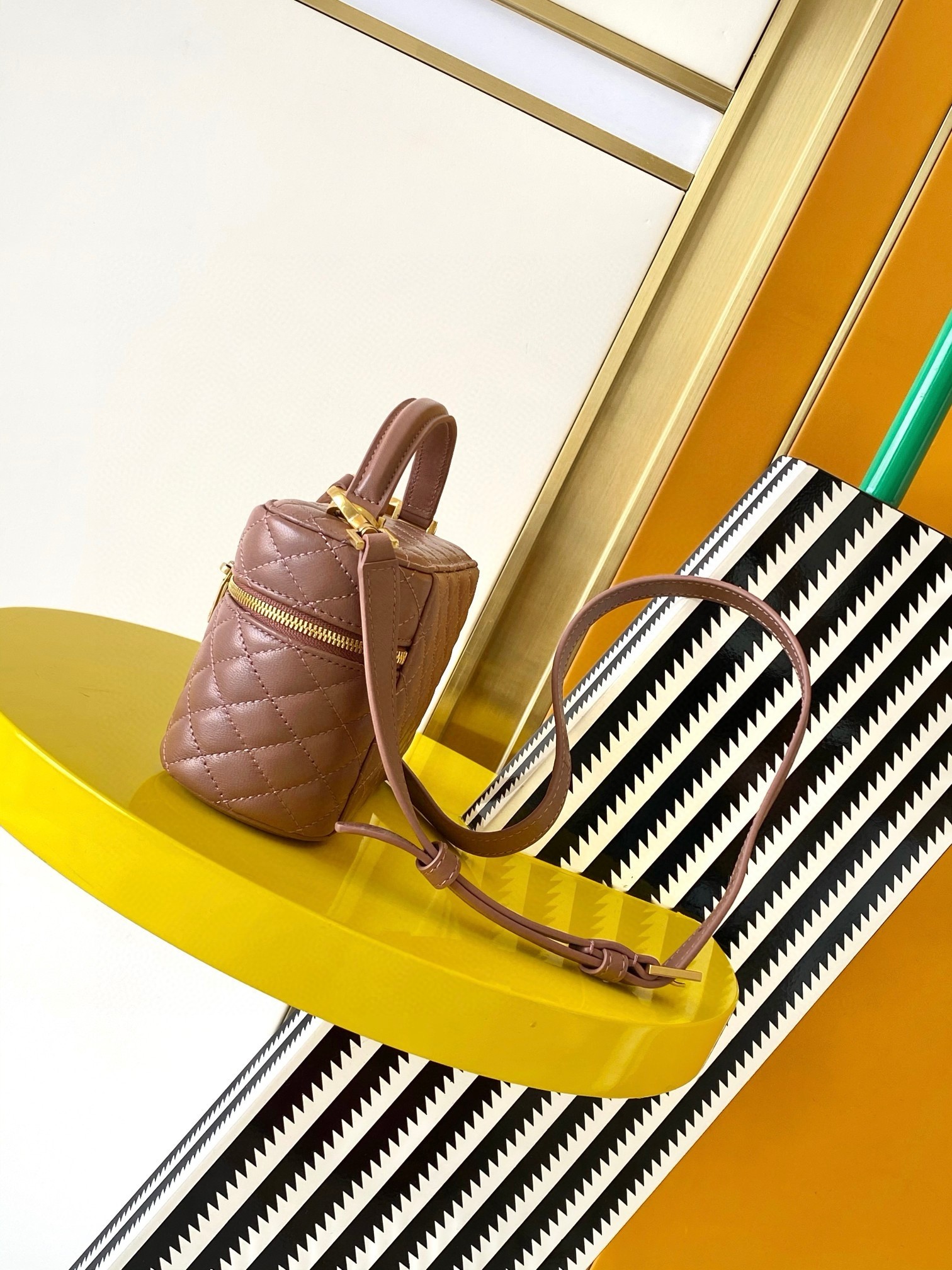 Like many of the designs in Saint Laurent's Gaby collection, this mini Vanity bag is made from quilted lambskin and embellished with its iconic gold-tone Cassandre logo. It will accommodate all of your small essentials, including a phone, cardholder, and keys. Carry it by the top handle or style it cross-body with the detachable long strap.