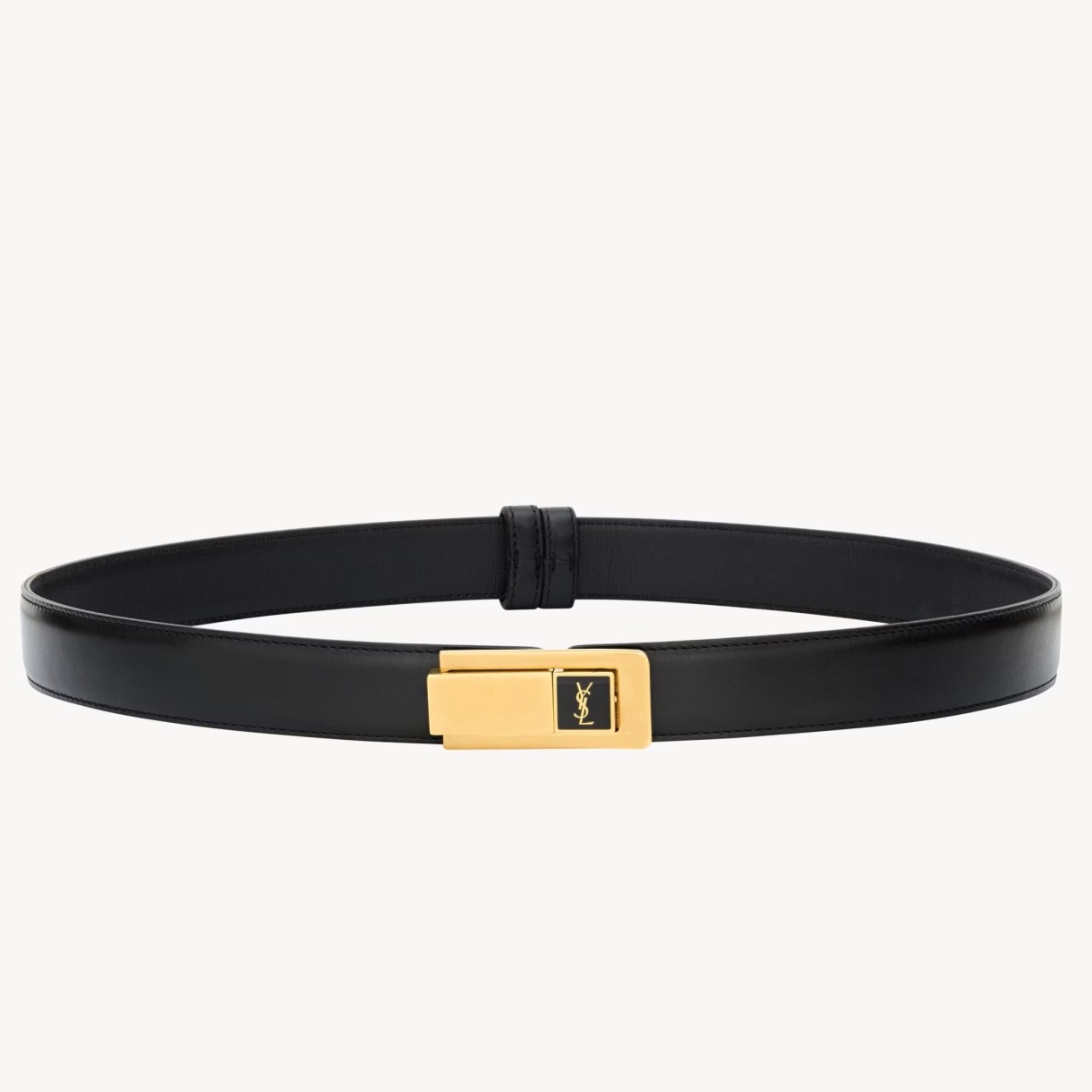 Saint Laurent Charniere Buckle Belt 25MM in Black Leather