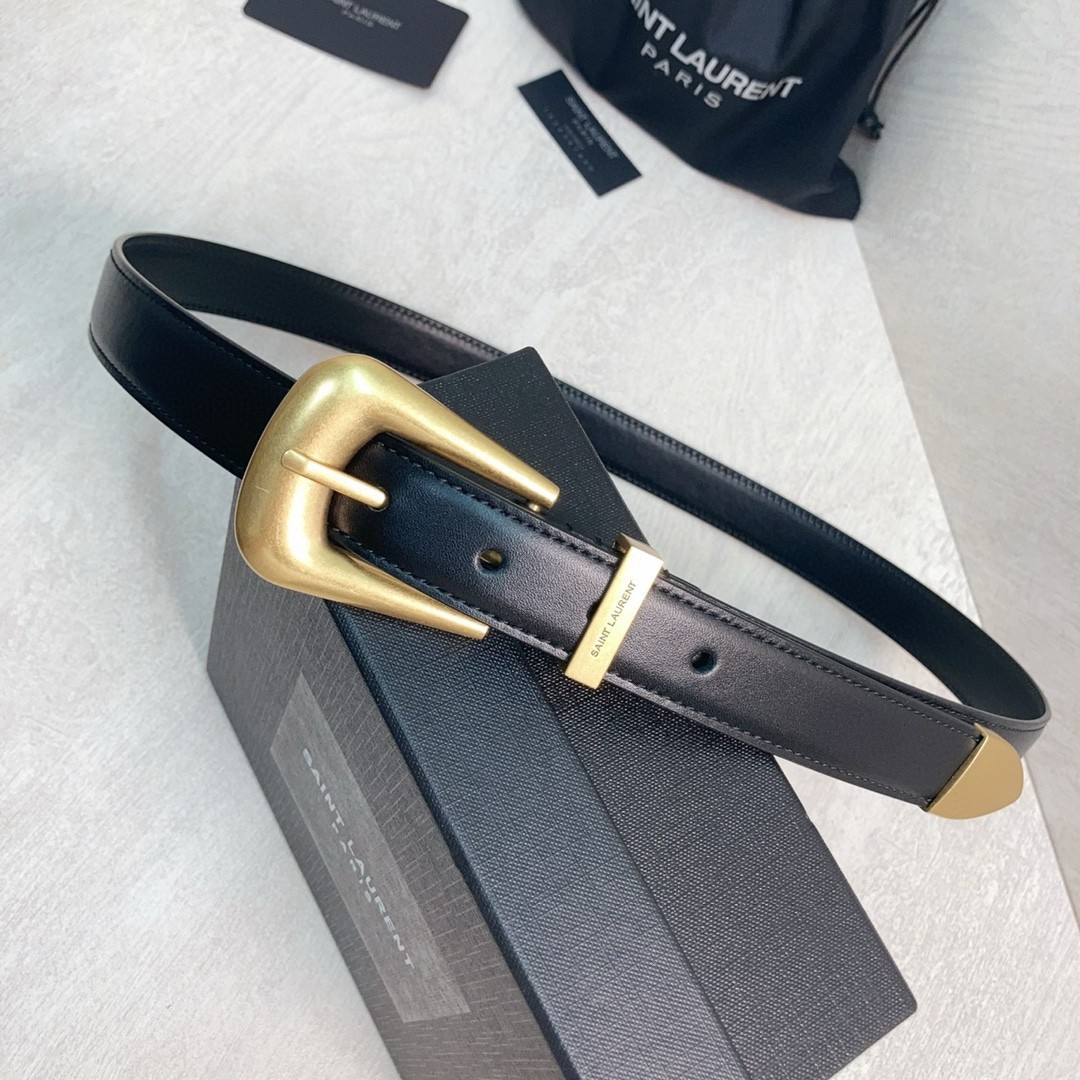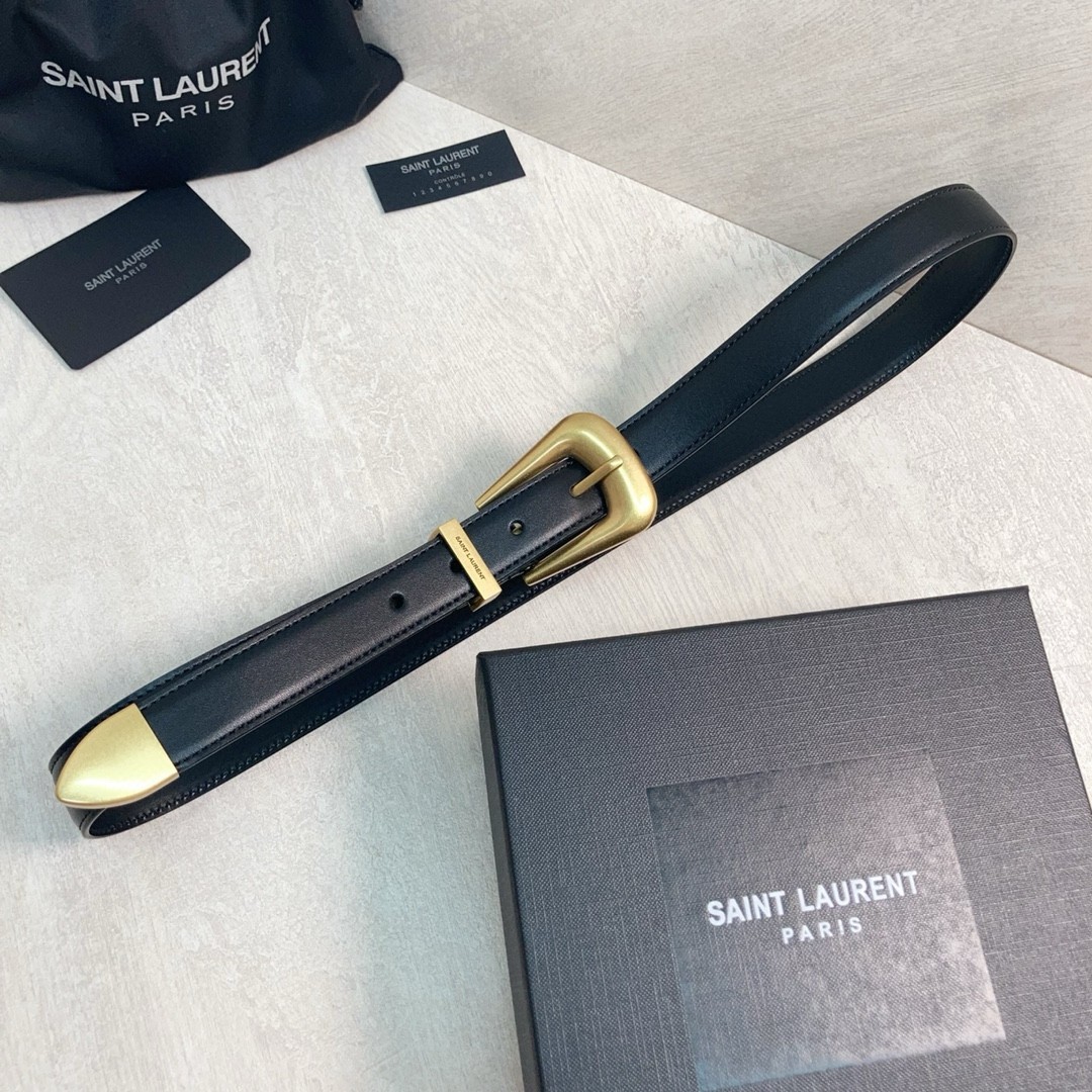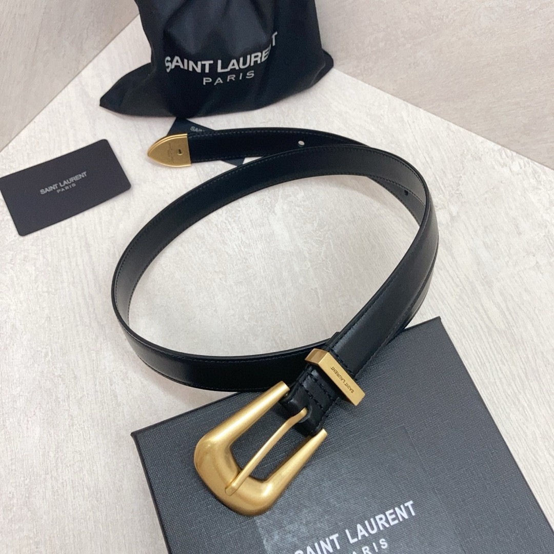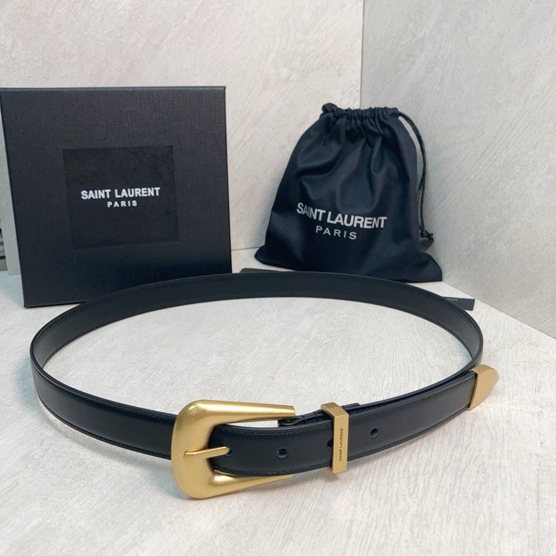 Saint Laurent Folk Buckle Belt 25MM in Black Leather