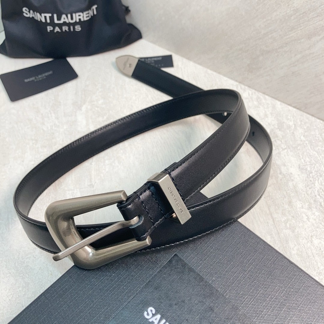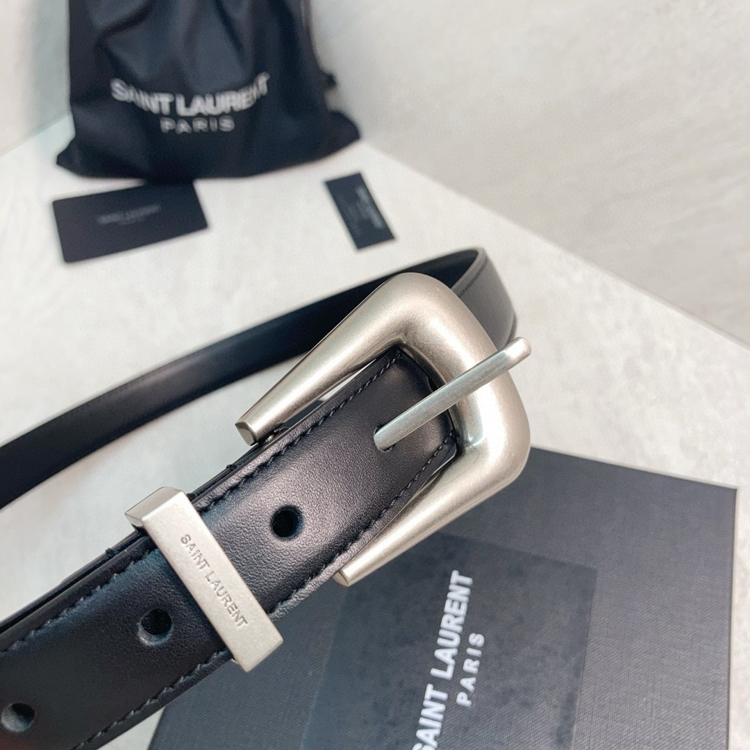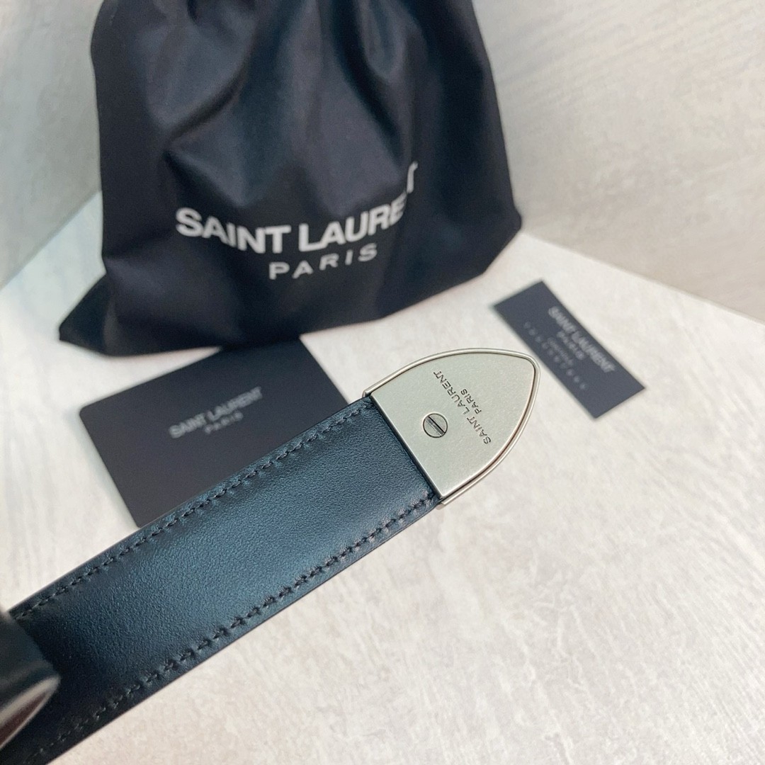 Saint Laurent Folk Buckle Belt 25MM in Noir Leather