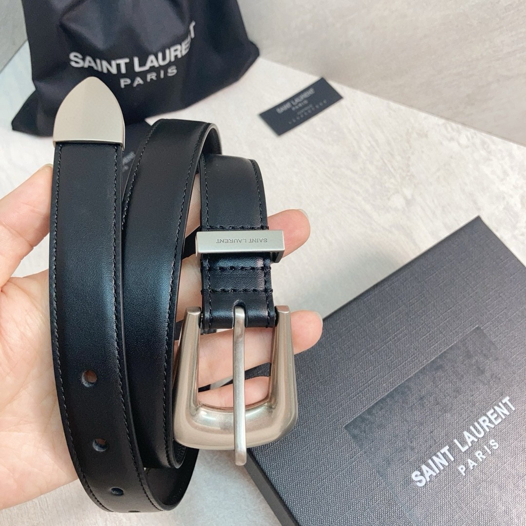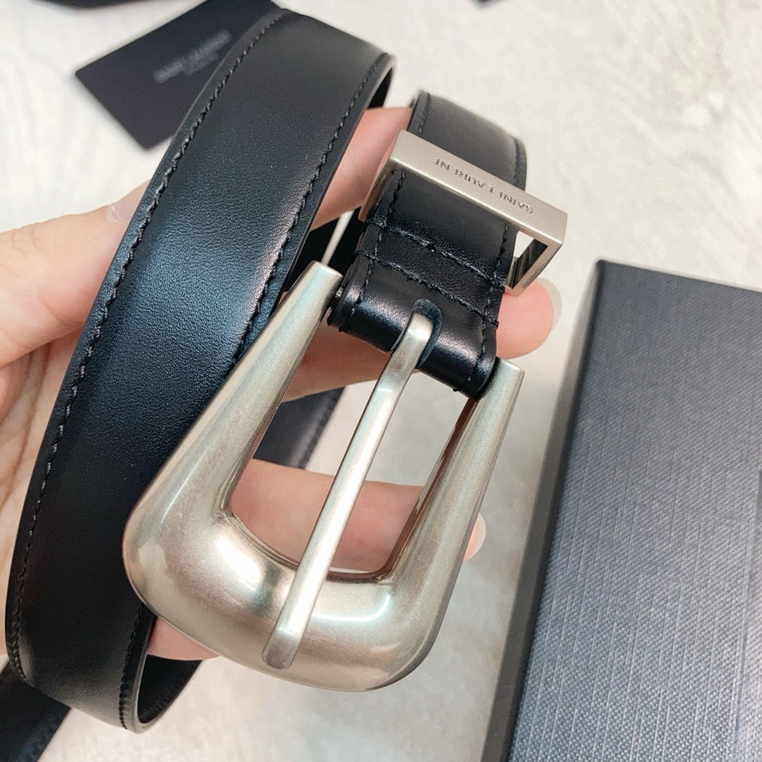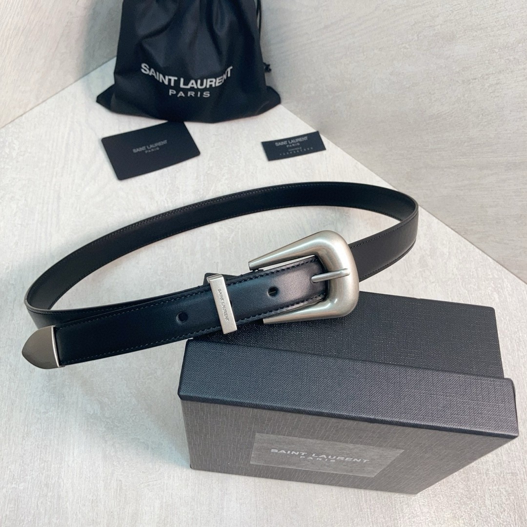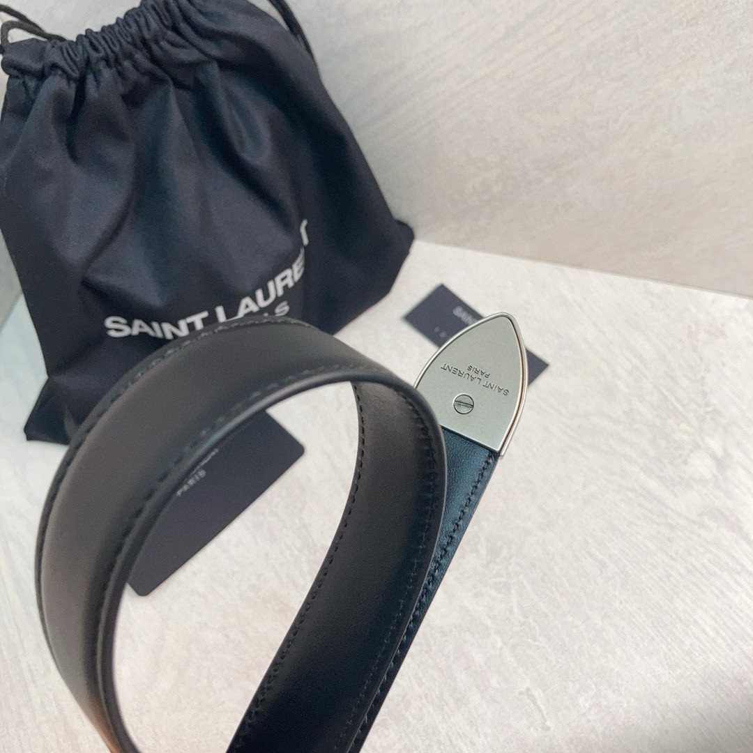Saint Laurent Folk Buckle Belt 25MM in Noir Leather