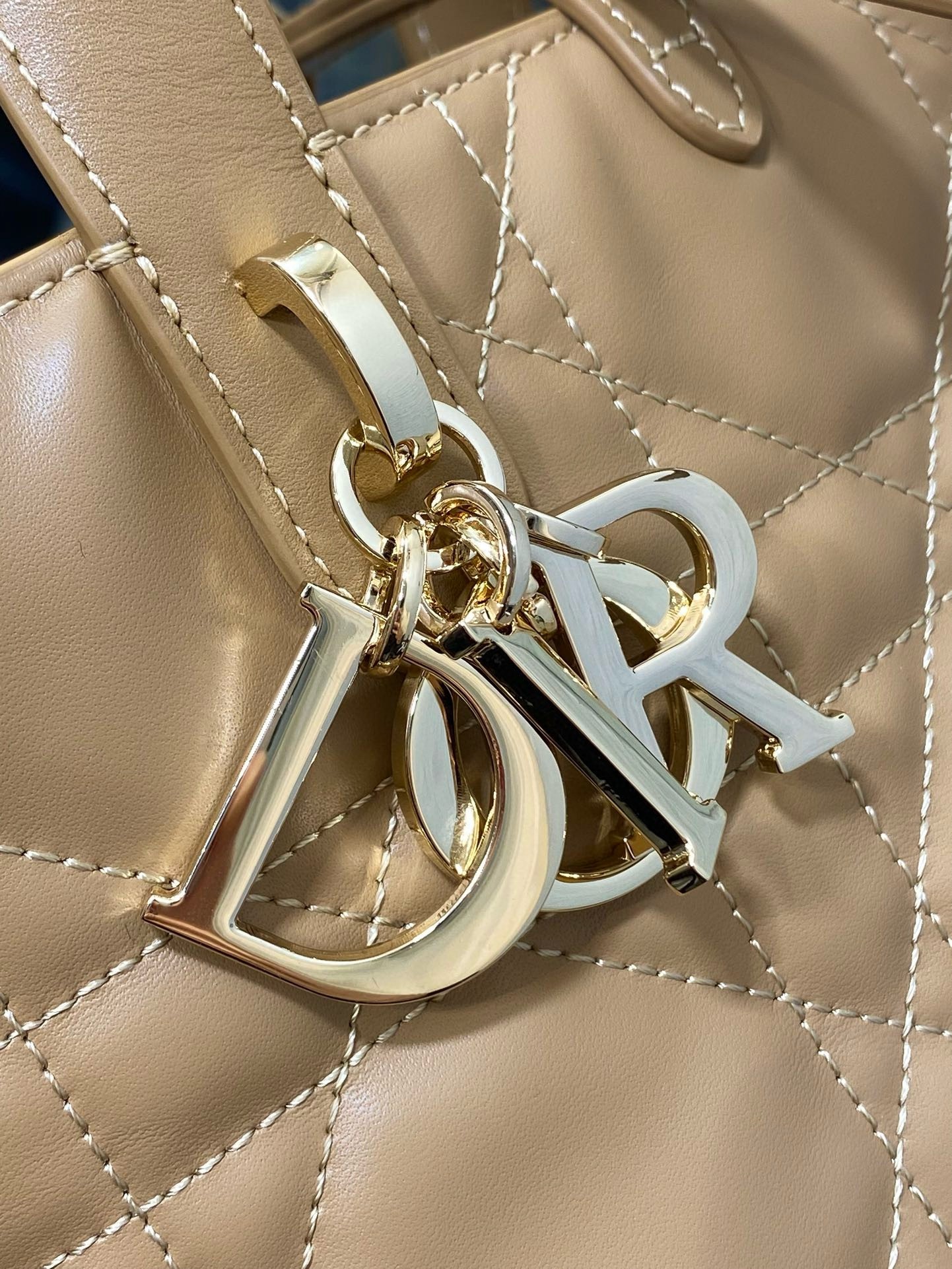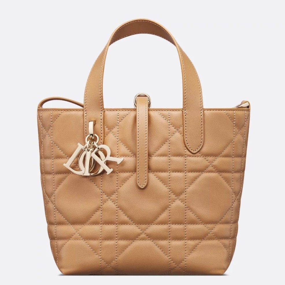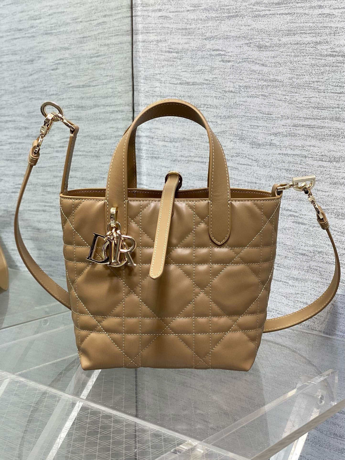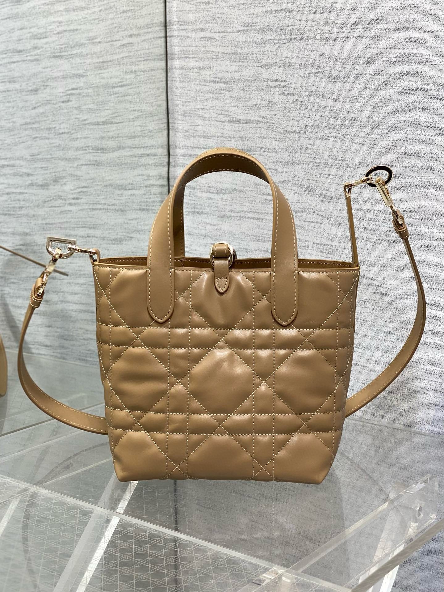 Dior Toujours Vertical Small Tote Bag in Brown Macrocannage Calfskin