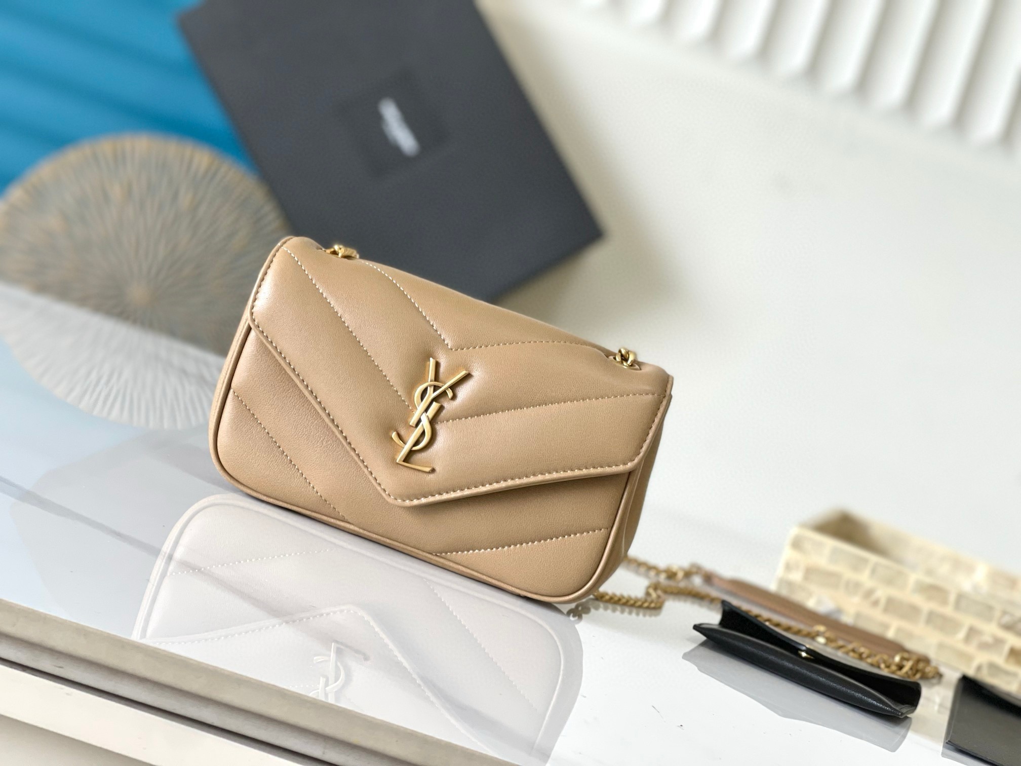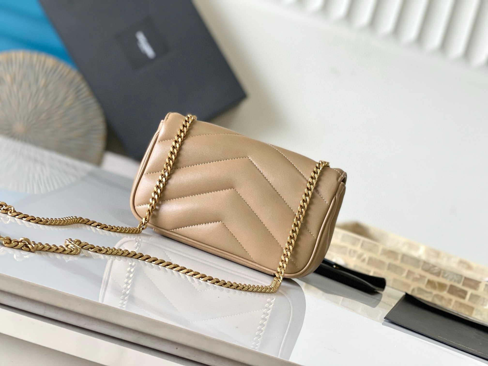Saint Laurent LouLou Mini Bag in Beige Matelasse Lambskin