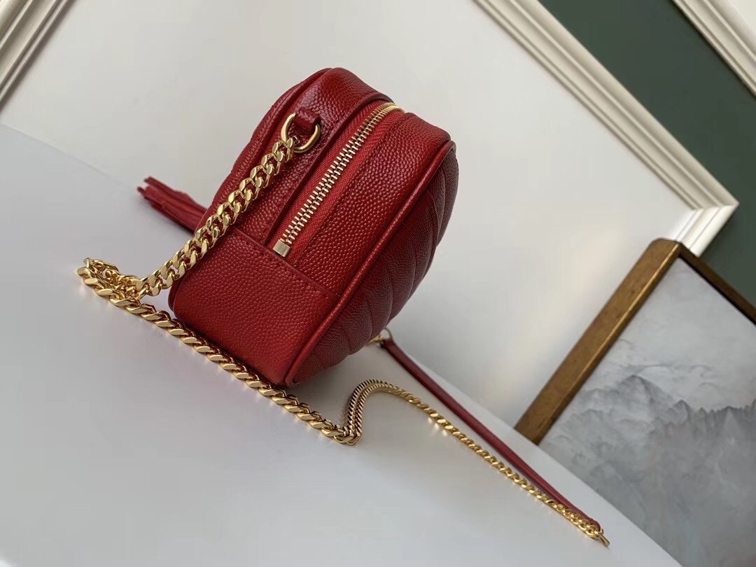 A coveted silhouette hallmarked by the iconic Parisian Maison's monogram, Saint Laurent's Lou mini bag spotlights the label's initials in gold-tone hardware upon its signature matelassé-quilted exterior. Structured and sleek, the leather design is adorned with a heritage tassel, which hangs from the accessory as you take it from day to night.