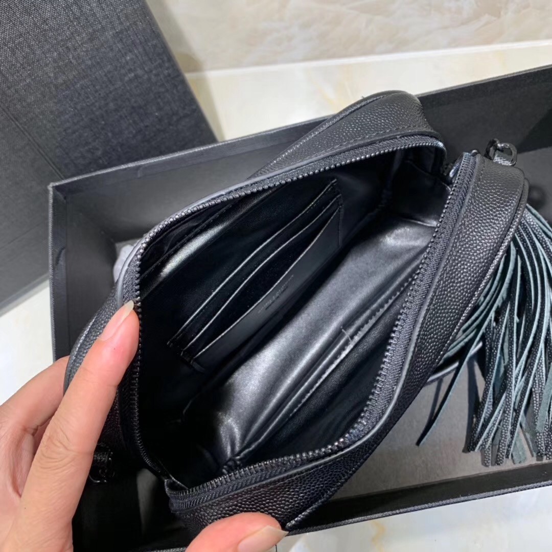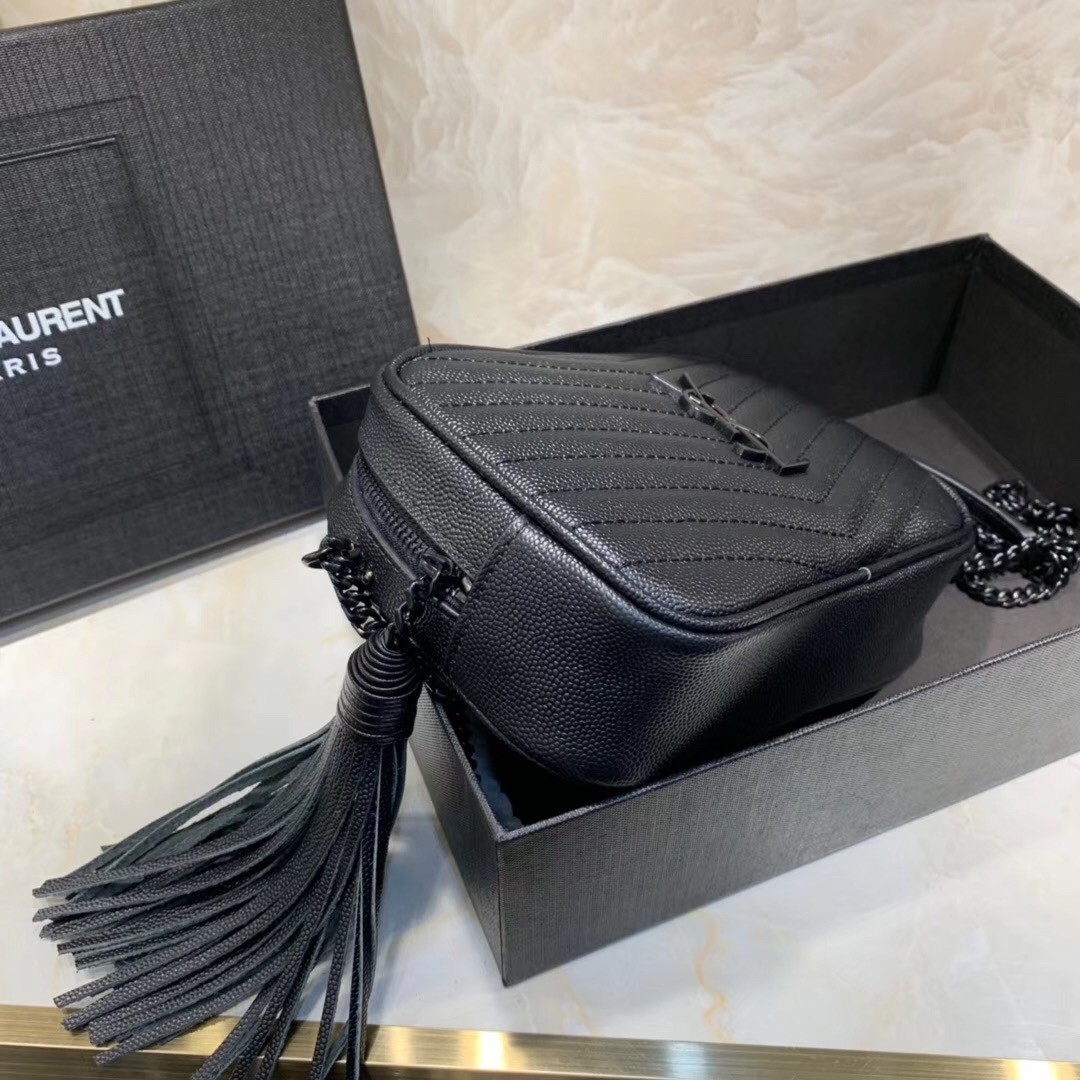 A coveted silhouette hallmarked by the iconic Parisian Maison's monogram, Saint Laurent's Lou mini bag spotlights the label's initials in black-tone hardware upon its signature matelassé-quilted exterior. Structured and sleek, the leather design is adorned with a heritage tassel, which hangs from the accessory as you take it from day to night.