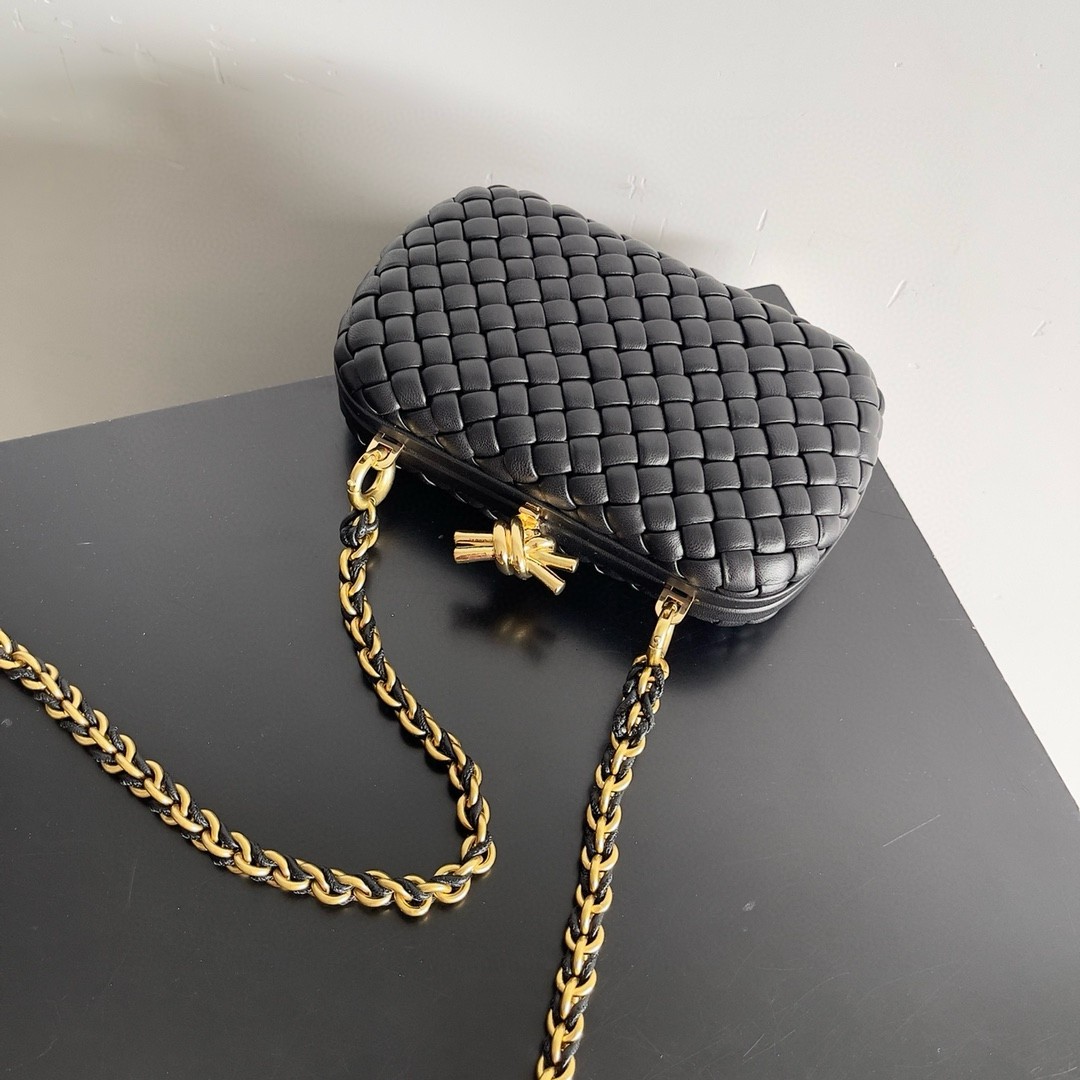 Bottega Veneta Knot Clutch with Chain in Black Intrecciato Lambskin