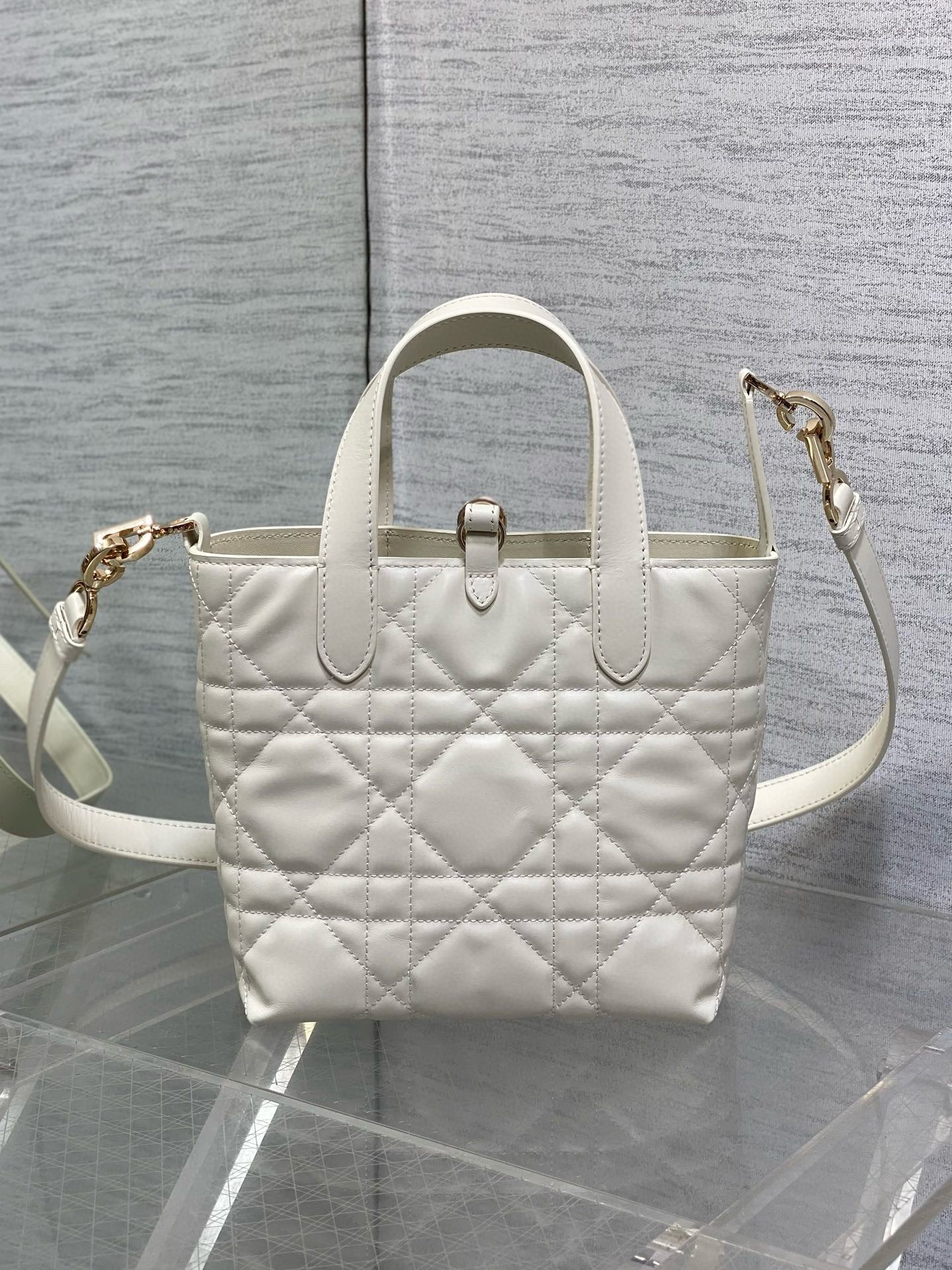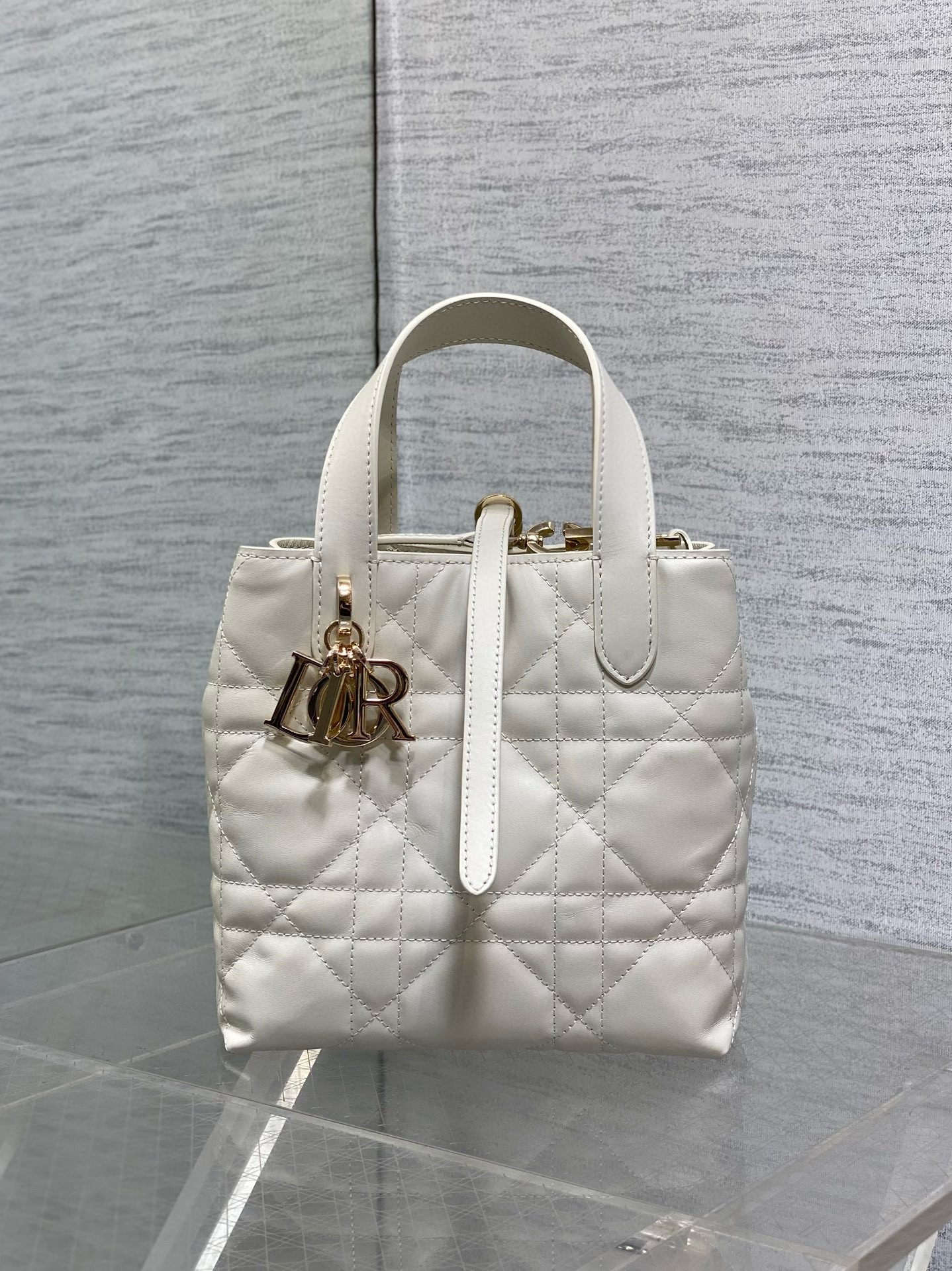 Dior Toujours Vertical Small Tote Bag in White Macrocannage Calfskin
