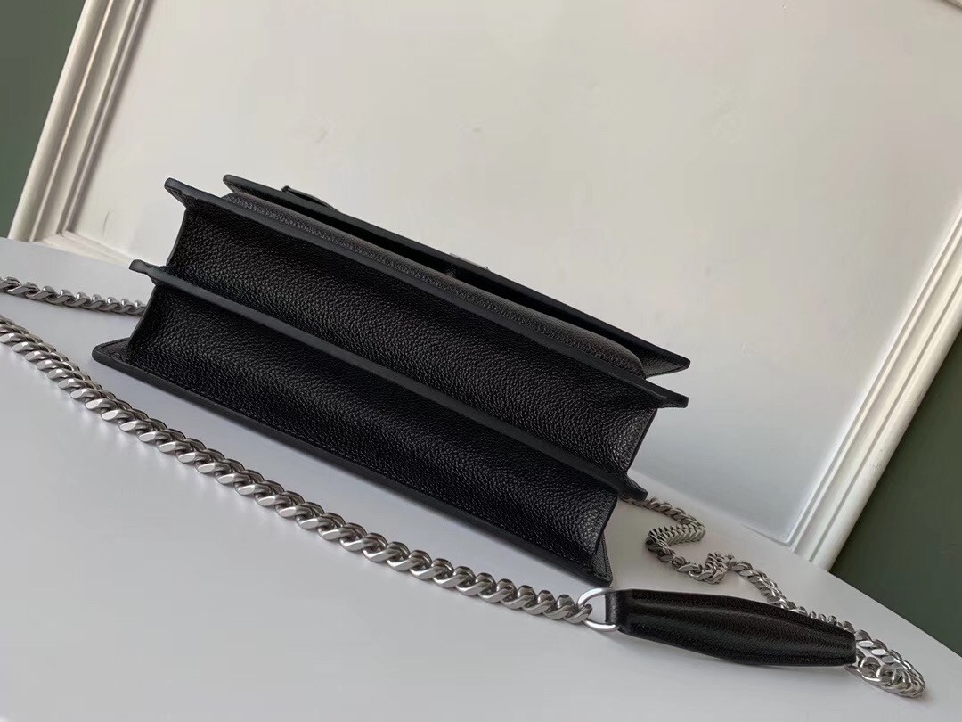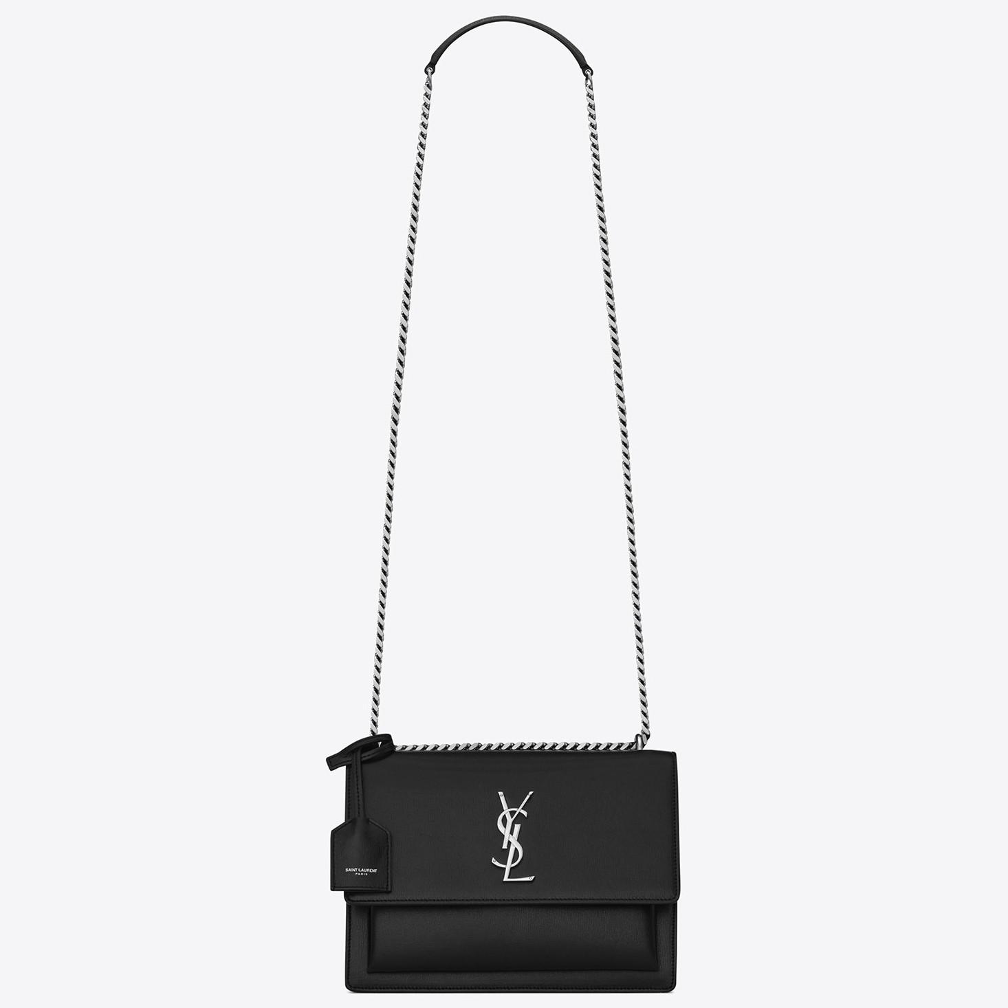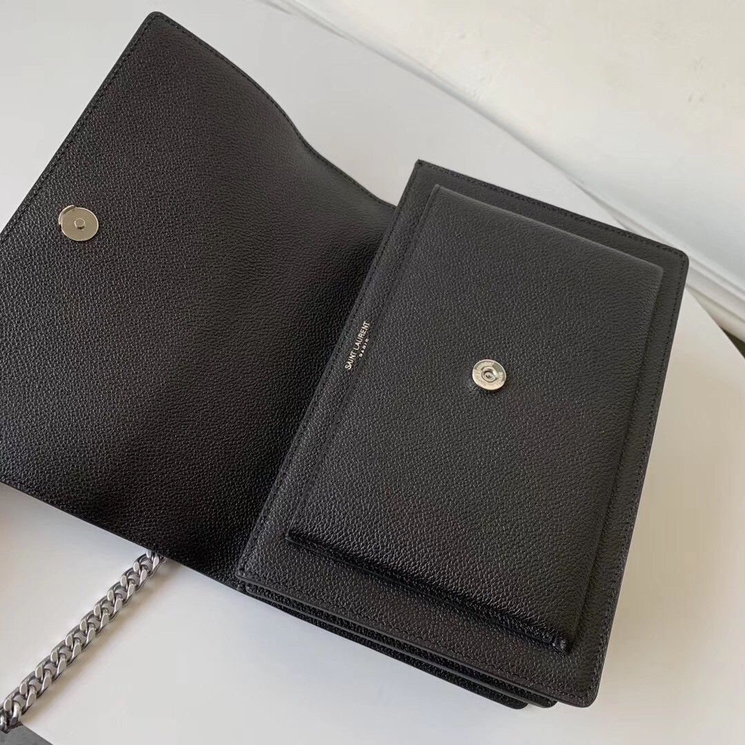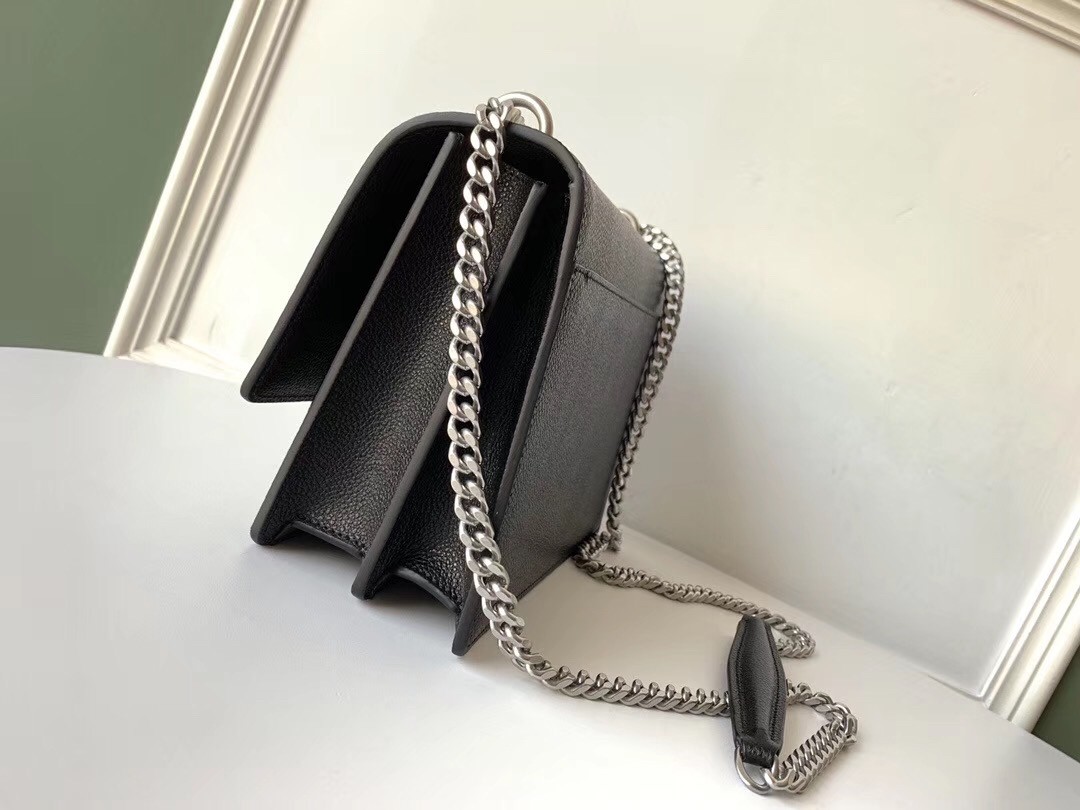 Saint Laurent's Sunset bag has a structured accordion silhouette with ample space for your essentials. It has been made from grained leather and punctuated on the front flap with the label's interlocking 'YSL' logo in antique silver. The chain strap is adjustable, so you can either wear it over your shoulder or cross-body.