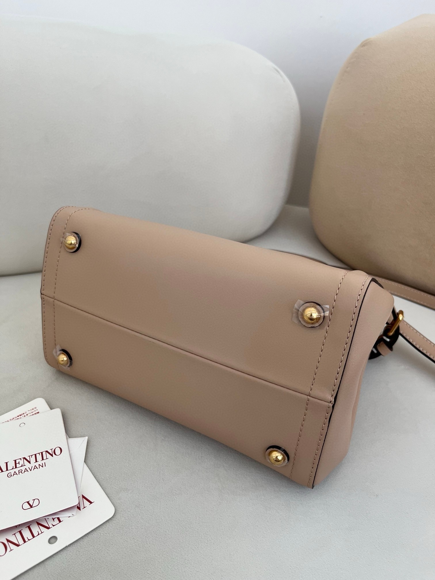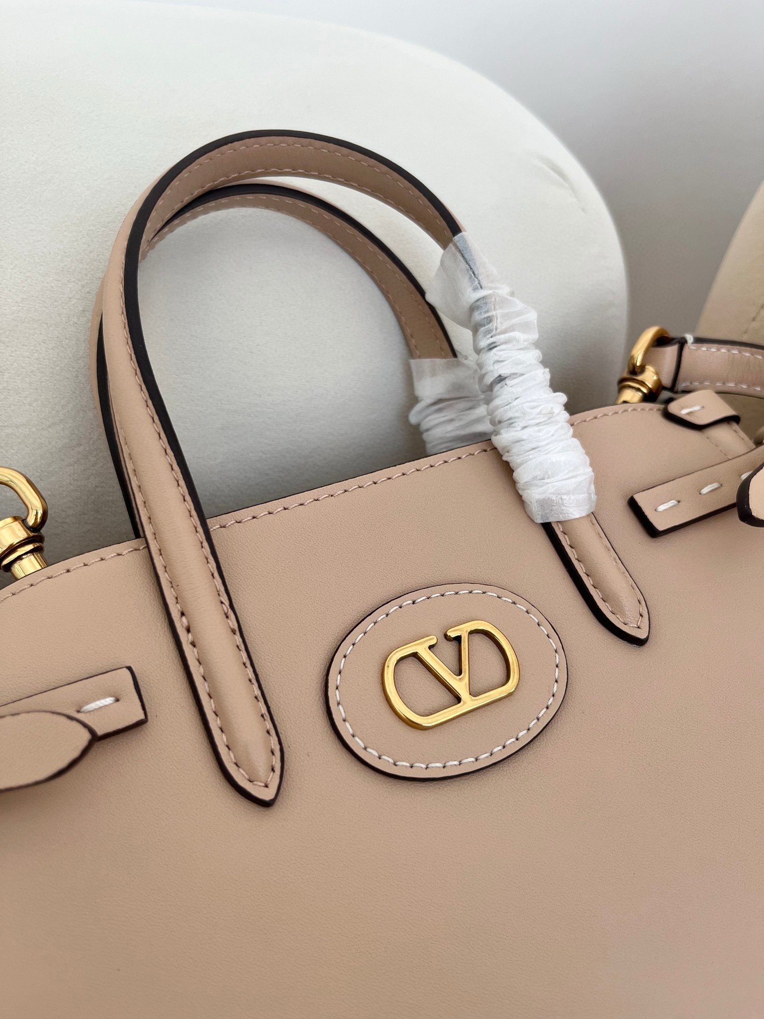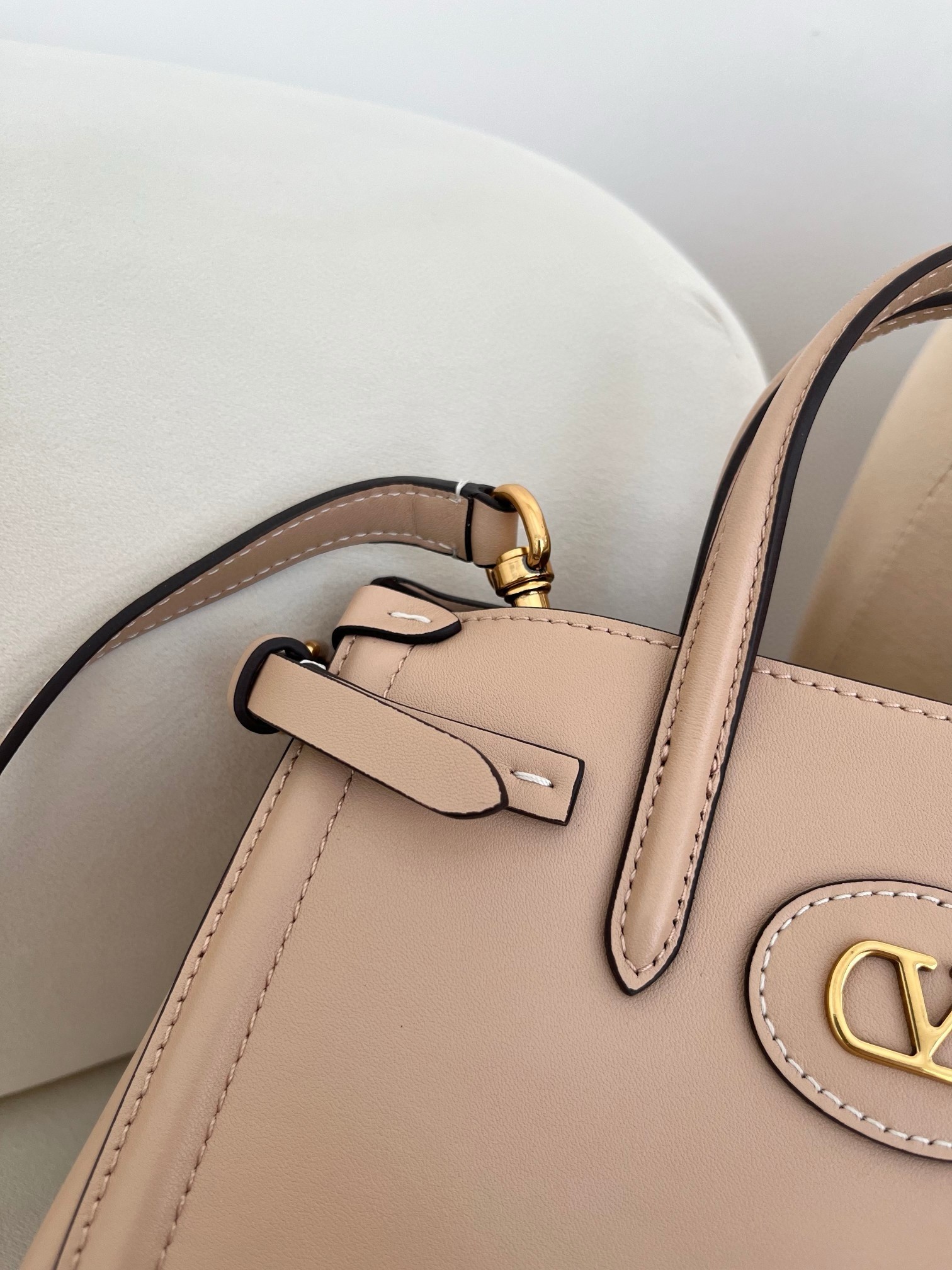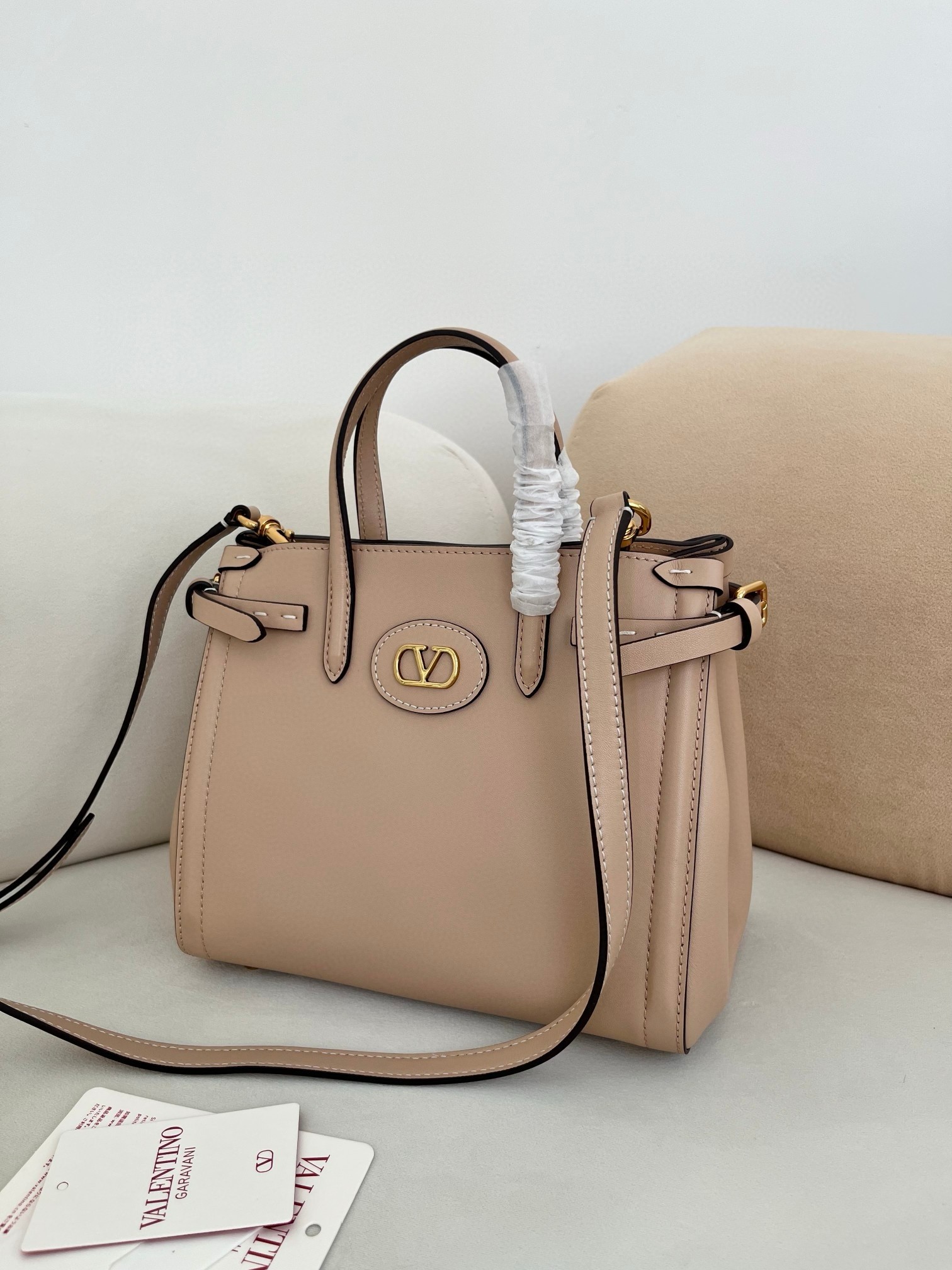 Valentino Garavani's Antibes tote is one you can count on to remain a versatile, timeless staple. Crafted from supple leather, this small iteration has slim buckled tabs that adjust the shape and features gold-tone hardware, including the 'VLogo'. The suede-lined interior has enough space for your phone, wallet and keys.
