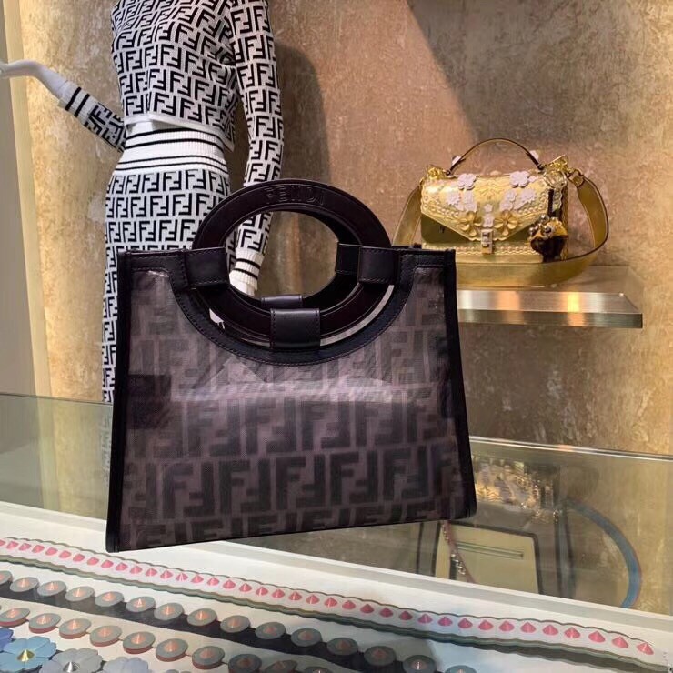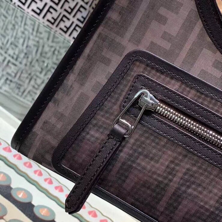 Fendi's tote has plenty of room for your everyday essentials. Adorned with the label's signature monogram design, this mesh tote features leather trims, top handles, silver-tone hardware, an open top design and a zipped pocket. Carry it in the crook of your elbow.