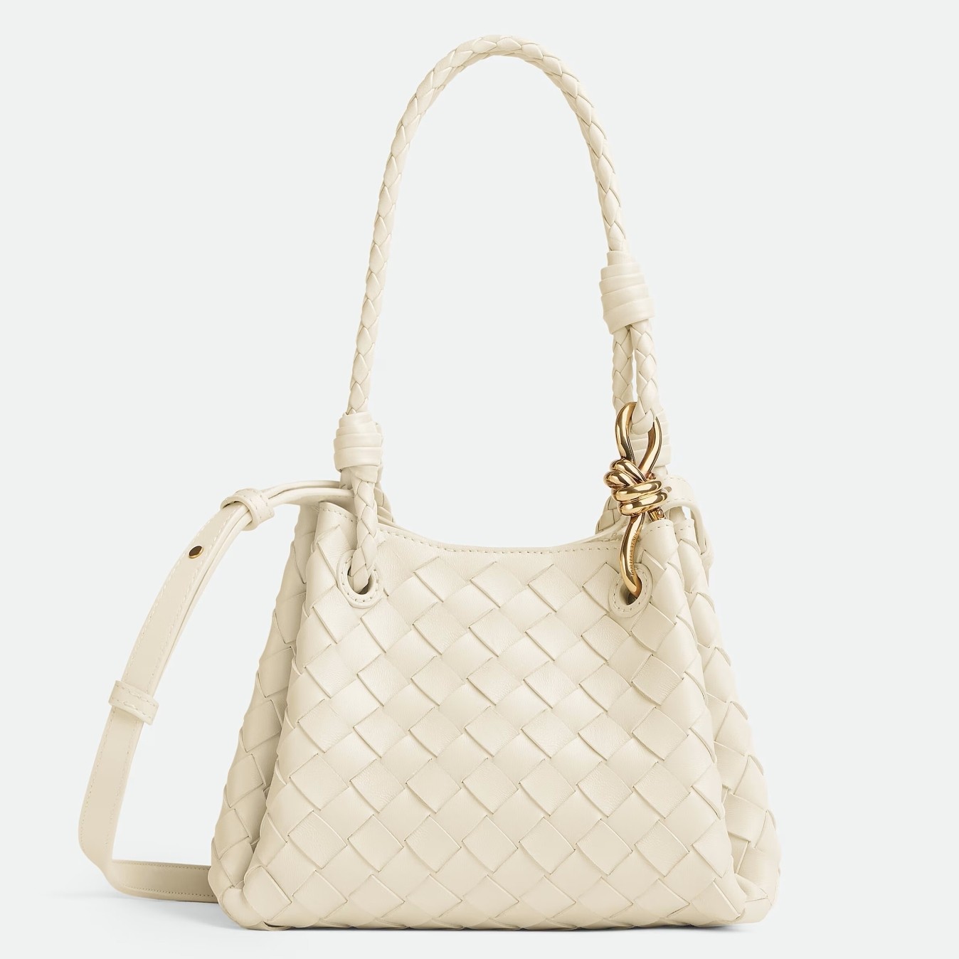 Building on his acclaimed tenure at Bottega Veneta, for Spring/Summer 2024 Matthieu Blazy looks to expand the Italian brand’s codes even further. And so this assortment felt more like couture than ready-to-wear, as the brand cleverly harnessed its outstanding craftsmanship prowess to offer styles that are daringly chic and overtly quiet, speaking to the women who have bustling lives to live – but want to look good while doing it. The Andiamo Parachute bag, a new take on the crowd favourite, is defined by the label’s signature Intrecciato weave and gold-tone knot hardware. It's made for the busy cosmopolitan – its name even translates to ‘let’s go’.