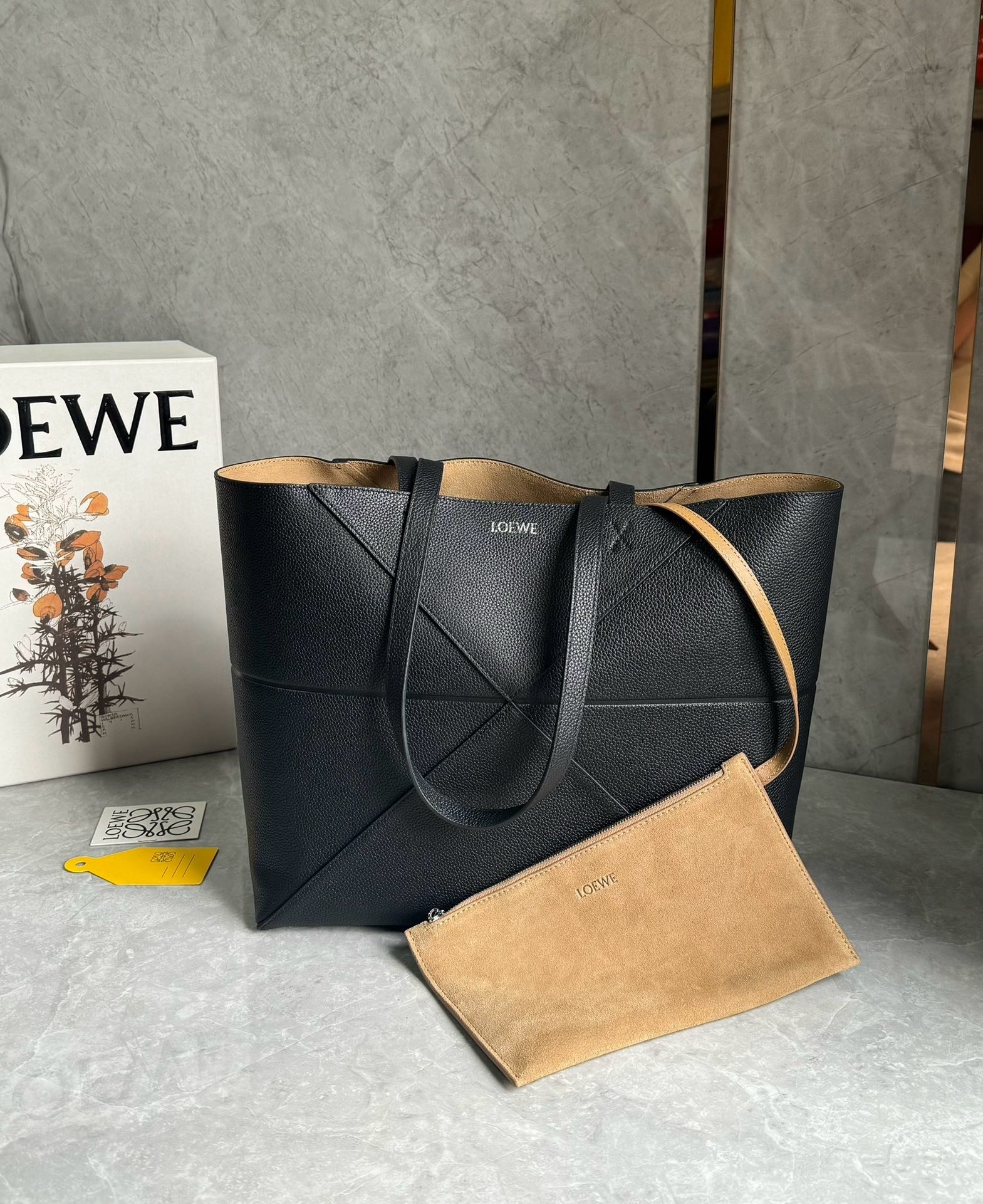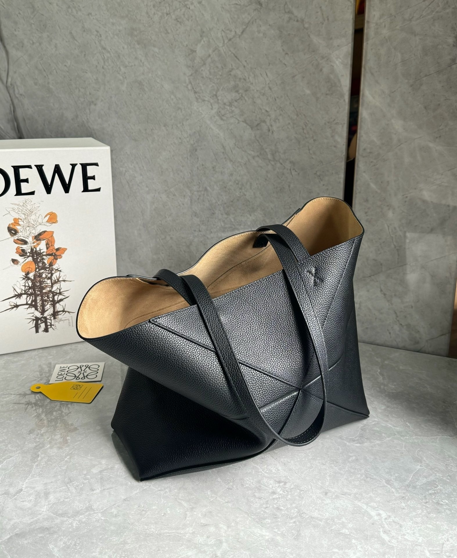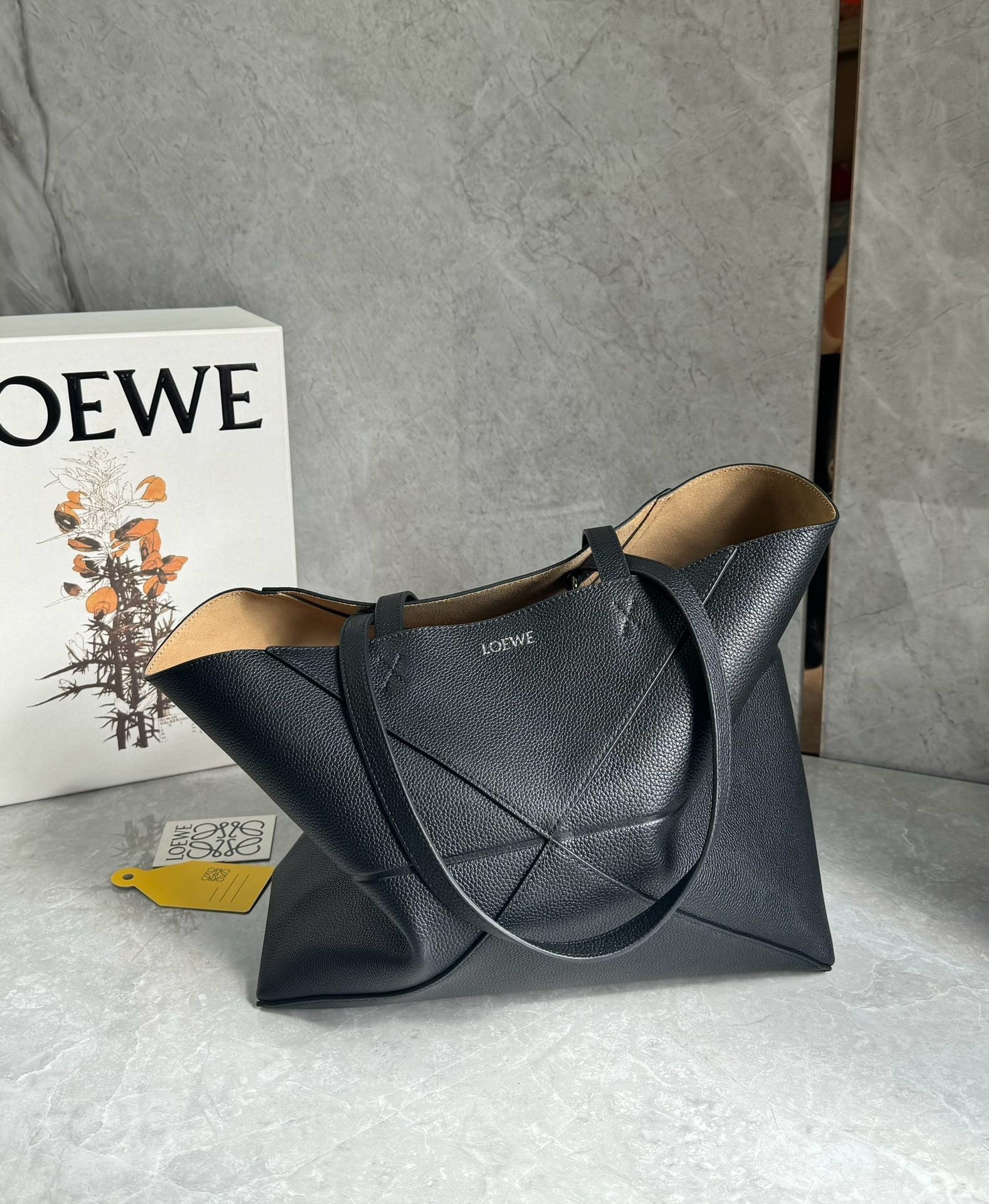 First introduced in 2014, the Puzzle bag from LOEWE has inspired a whole range of bags due to its icon status, the Puzzle Fold's lightweight geometric structure is designed to fold completely flat, making it a perfect tote to travel with. This medium horizontal version is crafted in soft grained calfskin, its capacious silhouette features those signature origami-like lines and architectural panels.