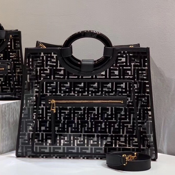Fendi’s runway shopper is one of those accessories that we’ll never get bored of, because it gets reworked season after season. Playing up on this season’s see-through bag trend, it’s made from clear PVC — well, clear other than the FF print that’s spread across it. Clutch it by its structured grab handles, or sling its detachable cross-body strap over your shoulder.