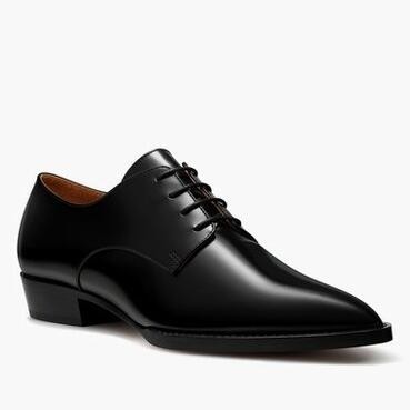 Derby shoe in black calfskin leather with white star cut-out at the back, 2.5 cm heel.