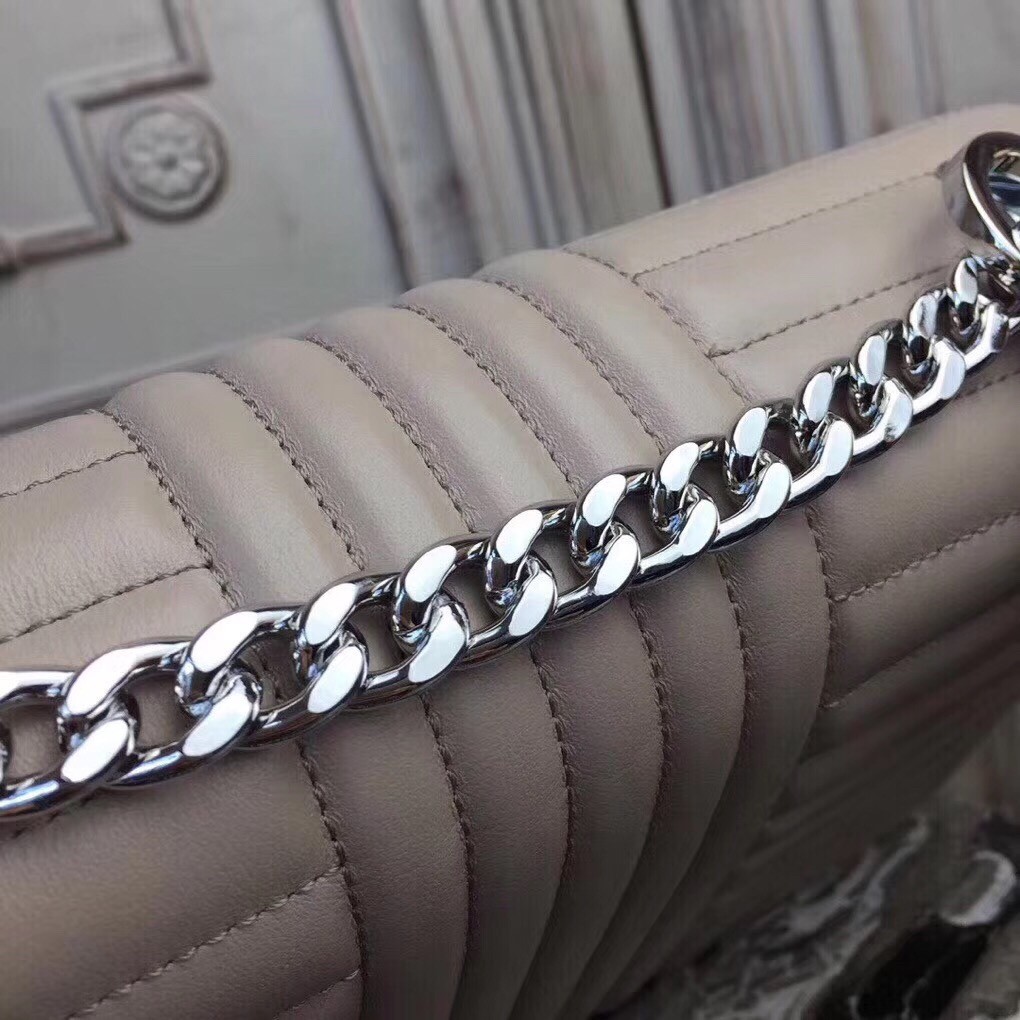 Prada has invented a complete new type of quilting. It looks modern but very sophisticated. The flap has a nose-like design and the center is crafted with the new Prada logo. This handbag is the house’s latest design and it looks like it will pave its way to the iconic status. Comes with a long chain strap for shoulder and cross body carry. The durable calfskin leather makes sure you can be fashionable without the need to baby this bag.