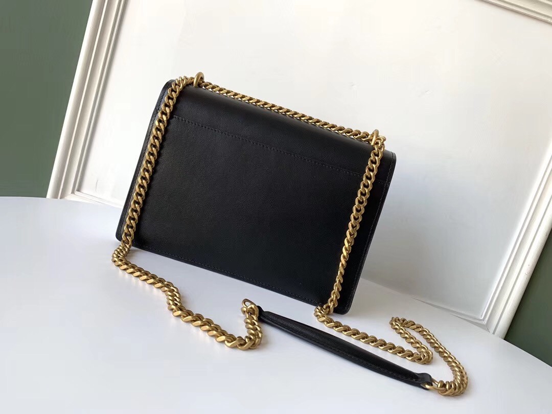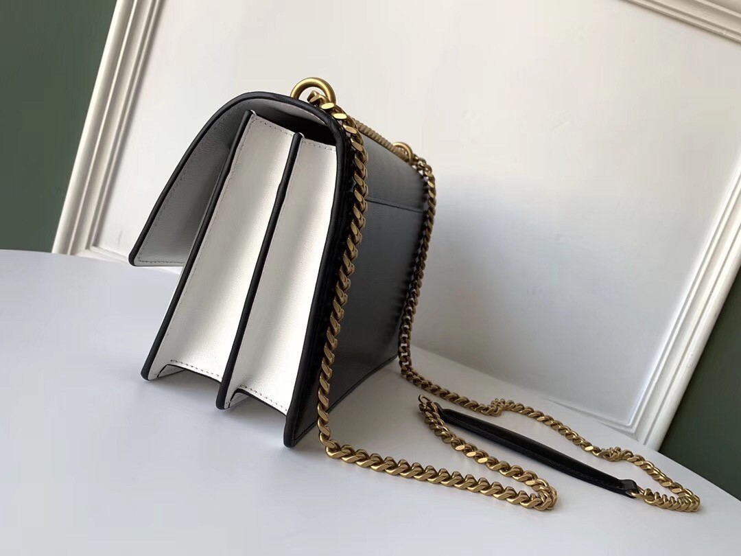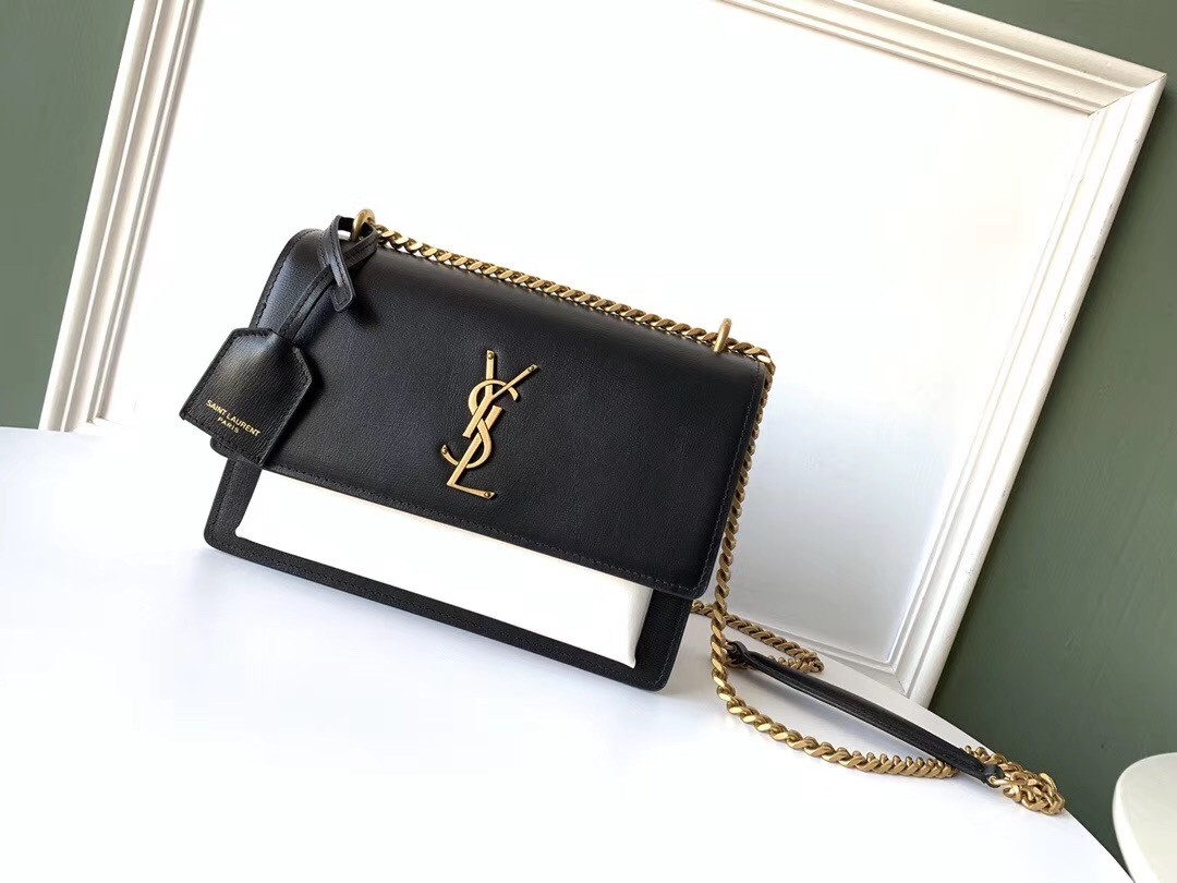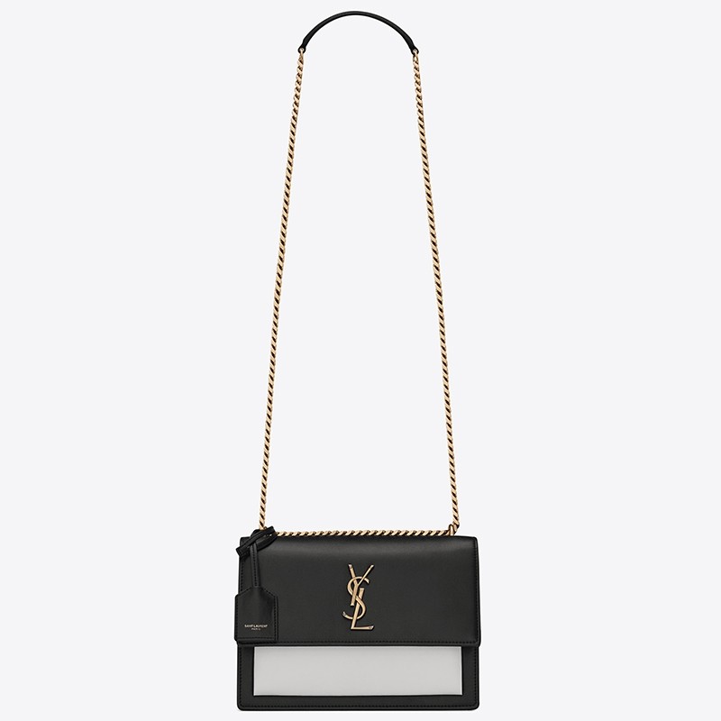 Defined by its clean lines, accordion sides and beautifully-structured profile, the Monogram Sunset medium shoulder bag showcases Saint Laurent's sophisticated blend of classic and modern designs. The YSL sigil takes centre stage against the smooth calfskin leather, its gold finish elegantly complementing the dark tones, while a dual-length strap creates an interchangeable silhouette.