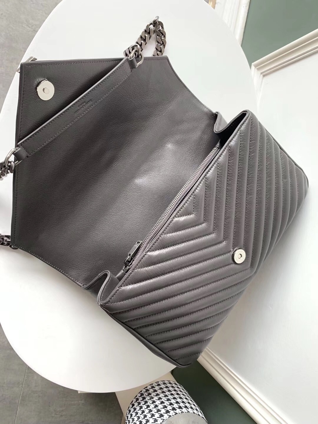 Saint Laurent's College bag is an investment that will stand the test of time - it comes in an versatile grey hue and has been crafted from the finest goatskin leather using time-honored techniques. The twill-lined interior has enough room for all of your essentials and is separated into organized compartments. Carry it as a top handle or attach the chain-embellished shoulder strap to go hands-free.