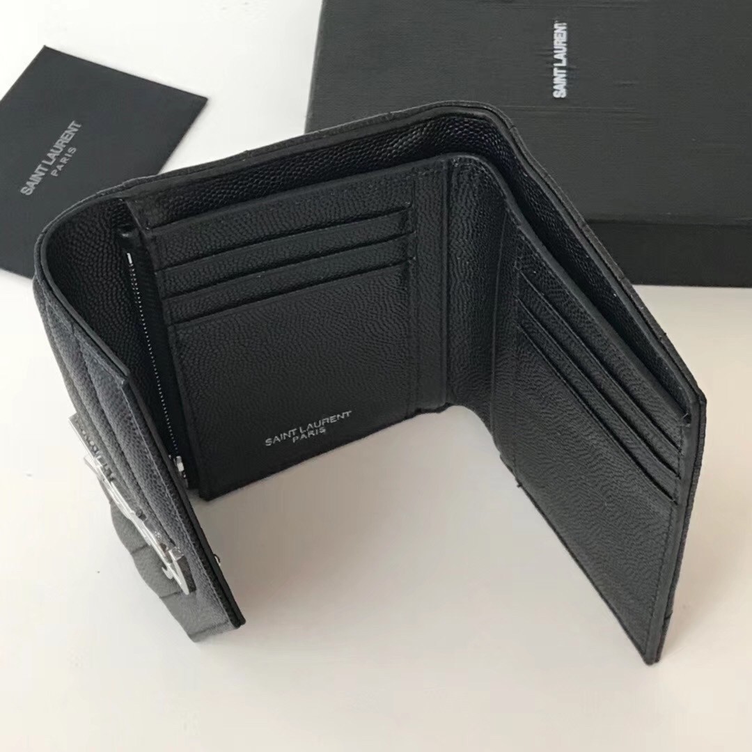 Saint Laurent Compact Tri Fold Wallet In Noir Leather