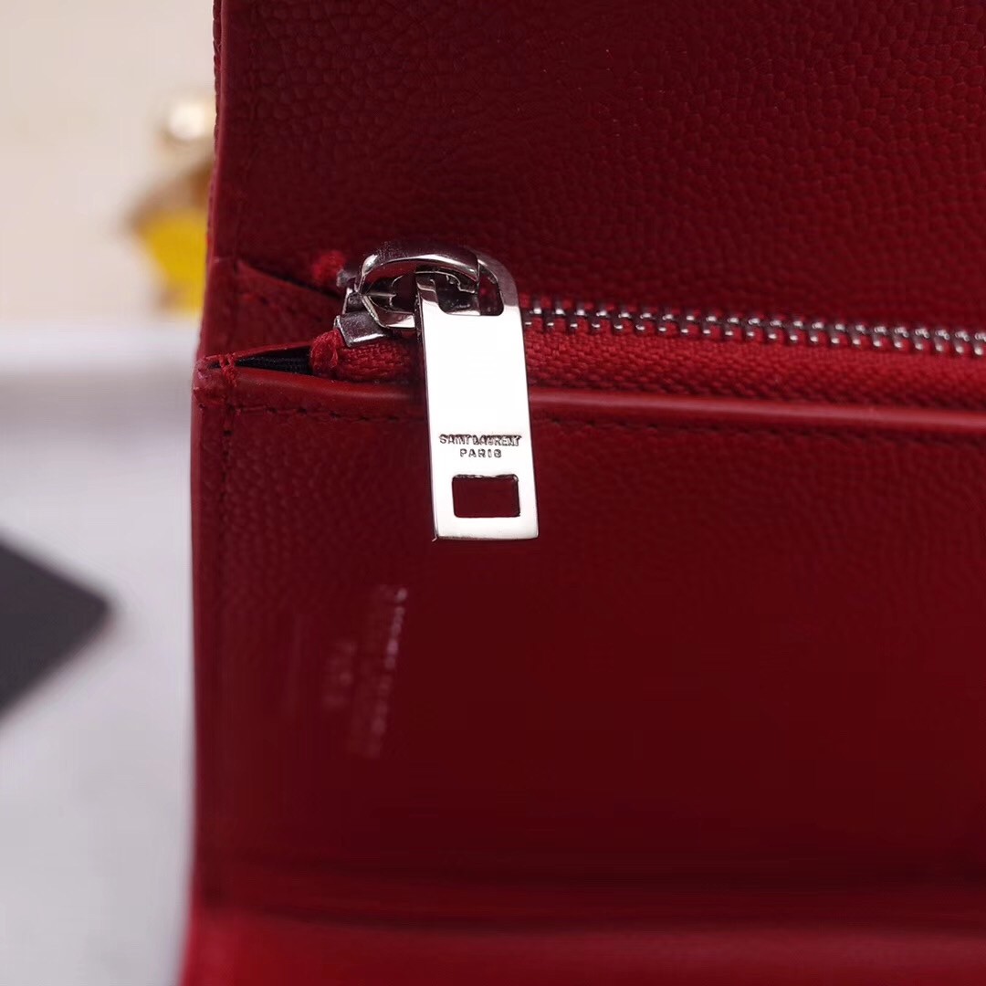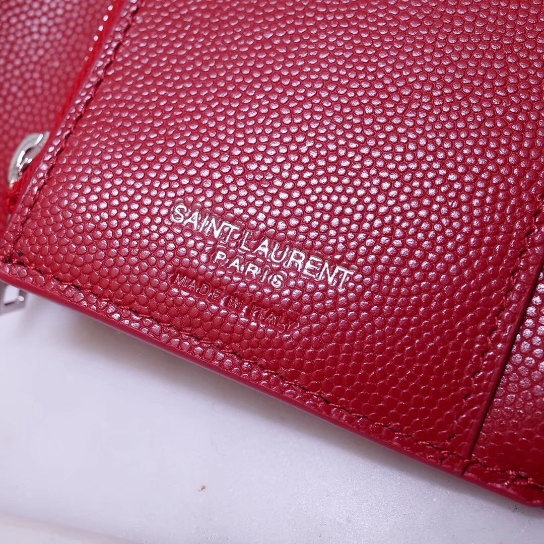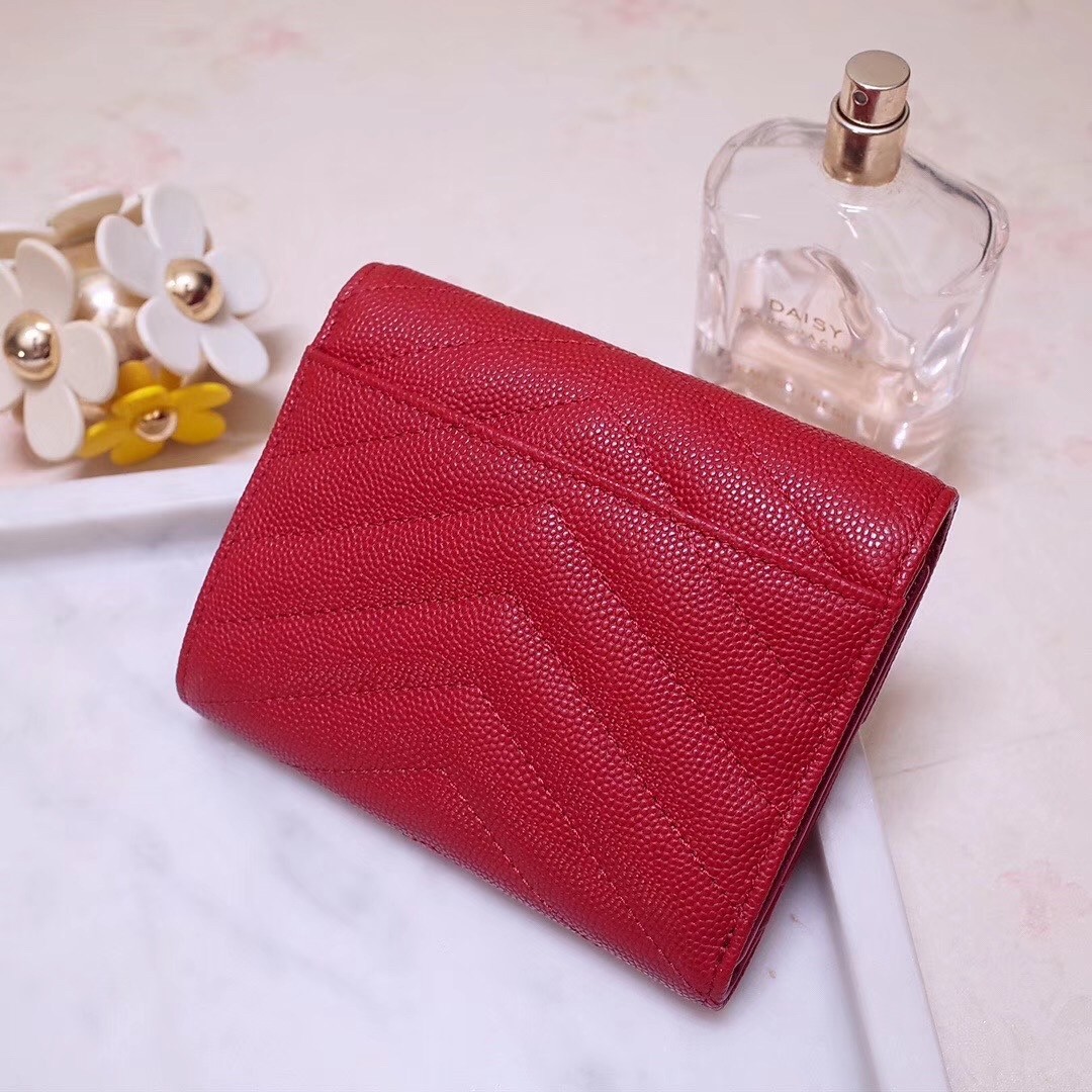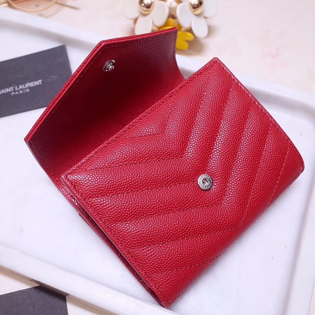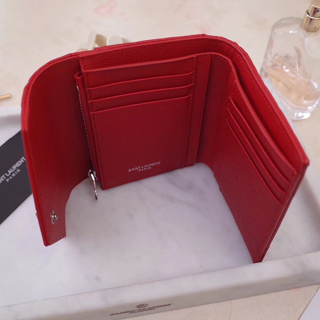 The Compact Tri Fold wallet looks chic in grain de poudre embossed leather, which is finished with interlaced YSL metal initials. Small enough to fit into even a tiny bag or clutch, yet with space for coins, notes and credit cards, this neat wallet is the ultimate mini companion.