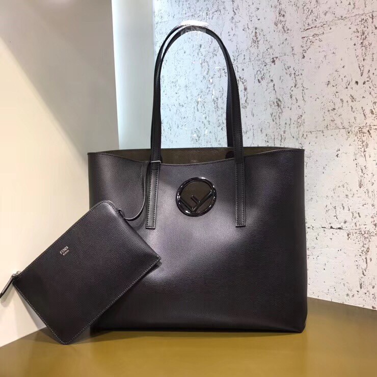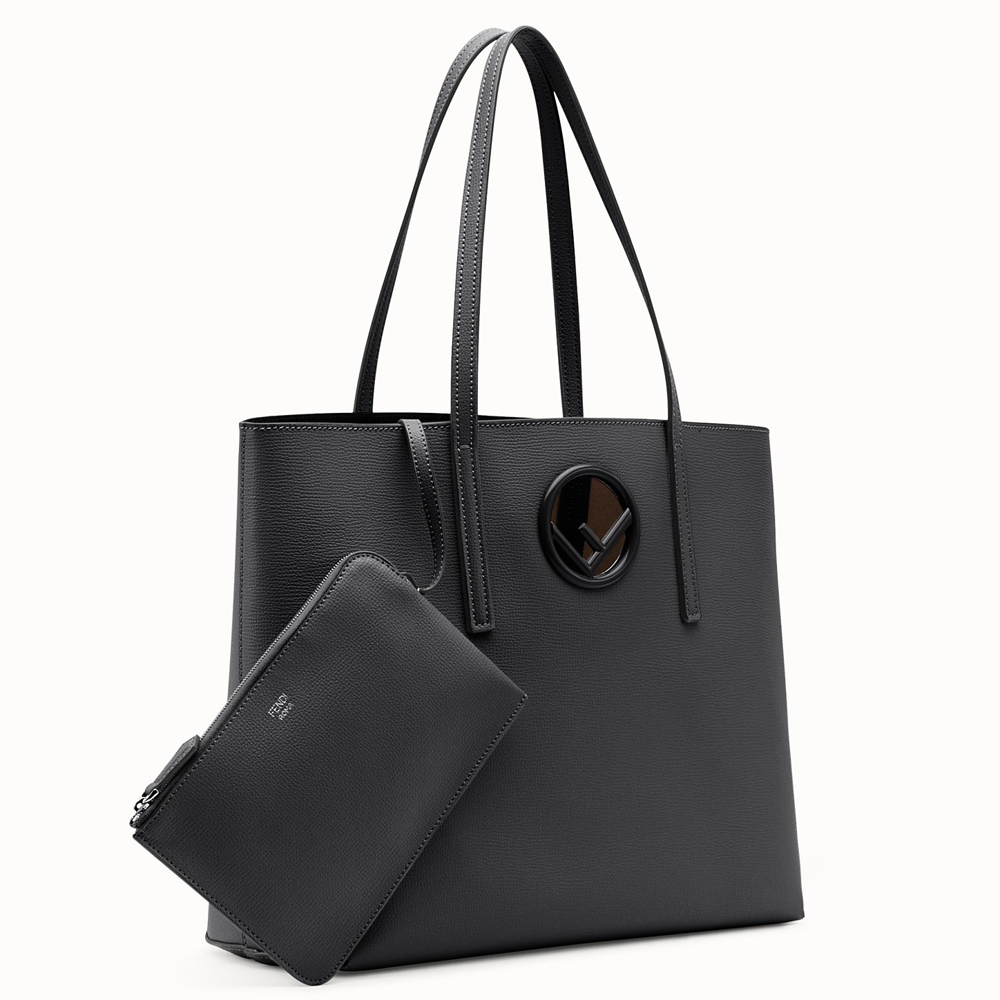 Finesse everyday errands with this chic shopper bag from Fendi, hosting the new hollow logo rendered in glossy tonal metal. Crafted from leather and cut into a simple open-top silhouette, twin top handles can be handheld or carried over the shoulder, while the removable zip pouch ensures essentials stay secure and close to hand.