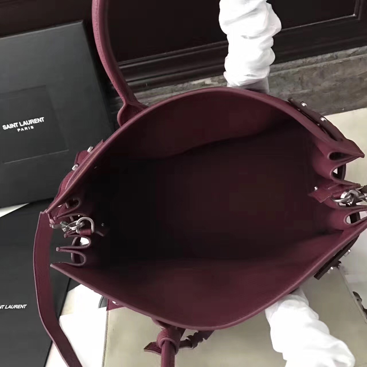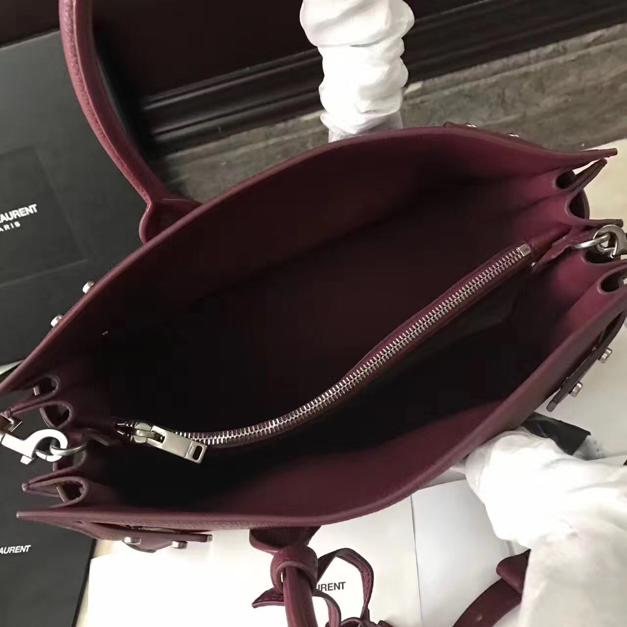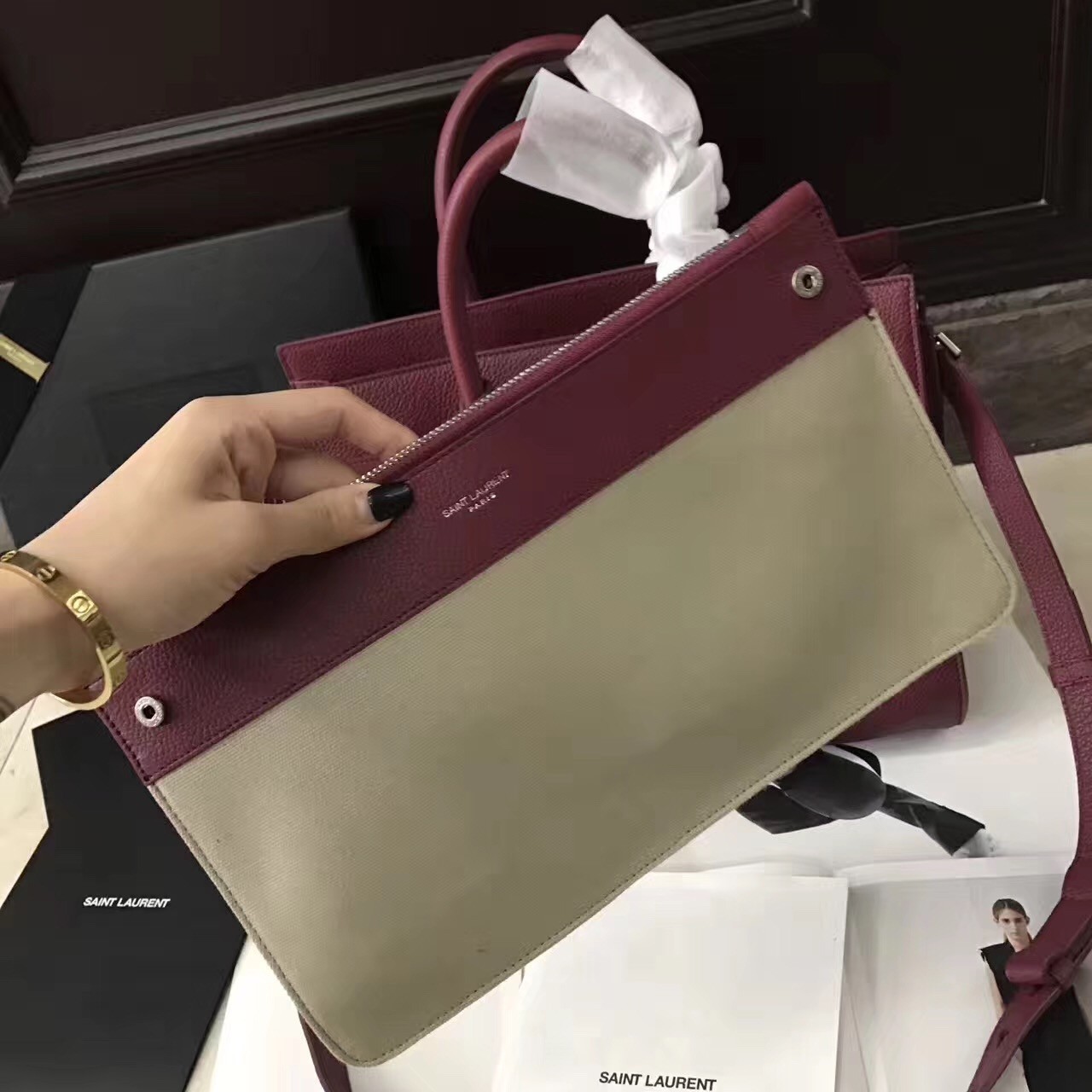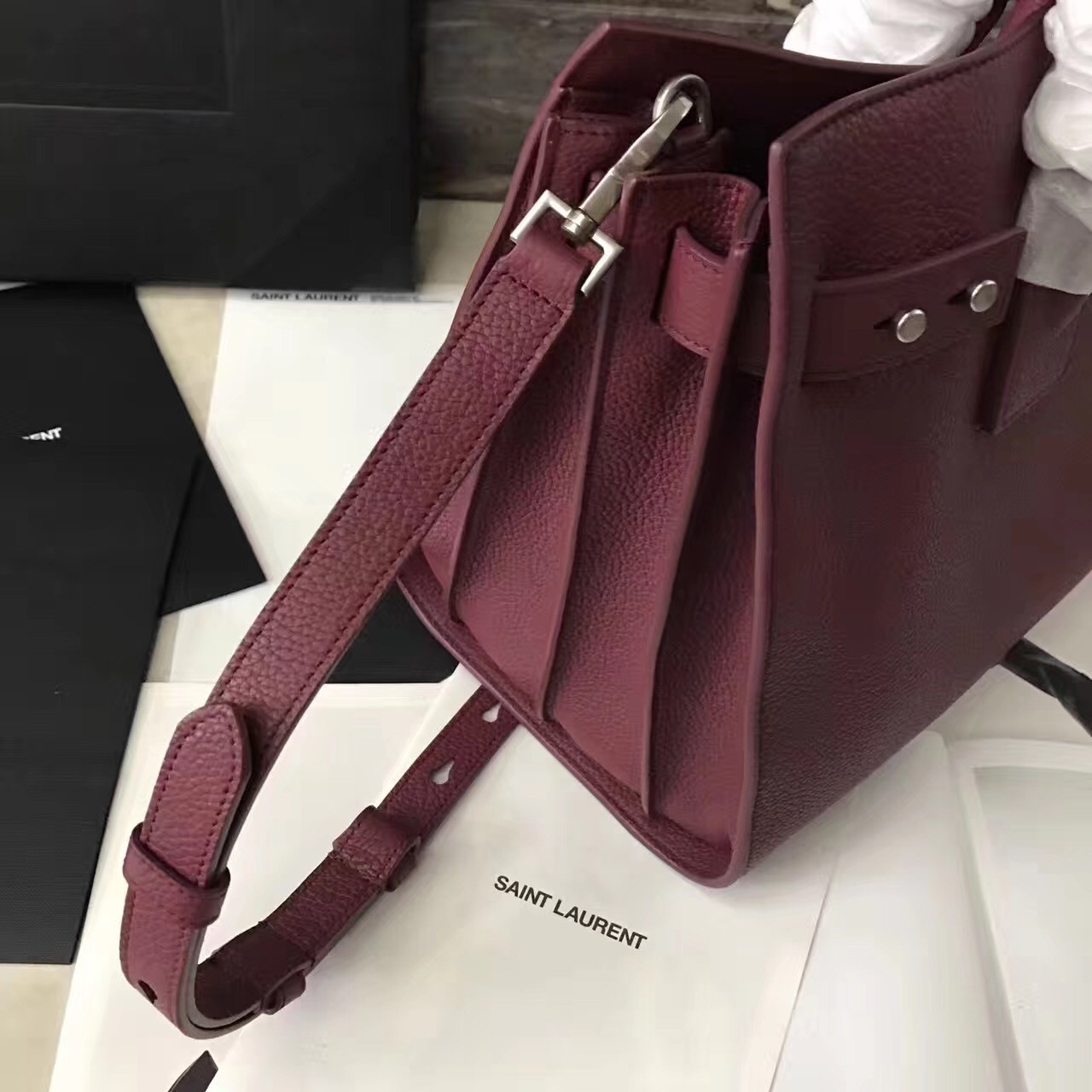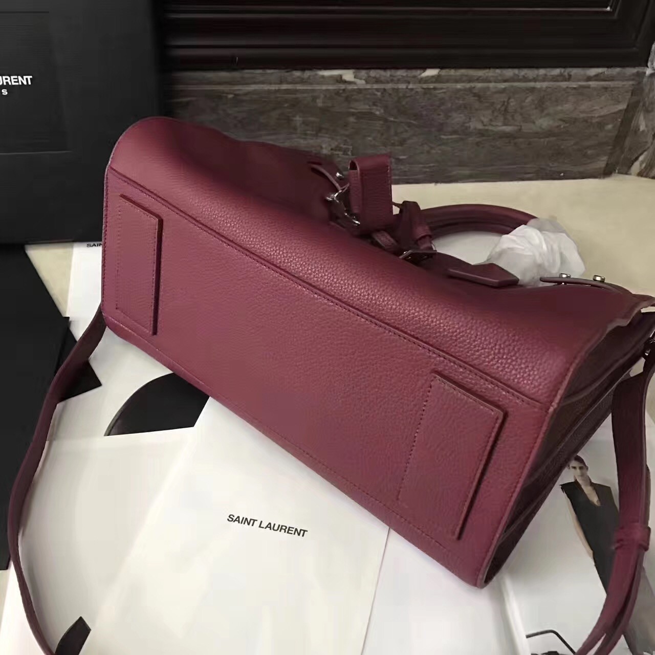 Reworked with a more supple silhouette, yet maintaining the unmistakable accordion construction and clean lines, Saint Laurent's Sac de Jour Souple bag encapsulates the Parisian label's distinctive fusion of timeless and modern designs. Soft grained leather is accented with minimal hardware and subtle lettering, while the detachable strap and removable zipped pouch provide practicality.