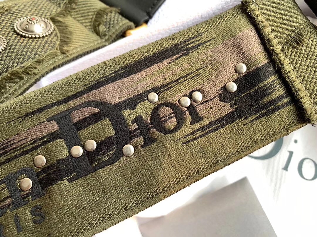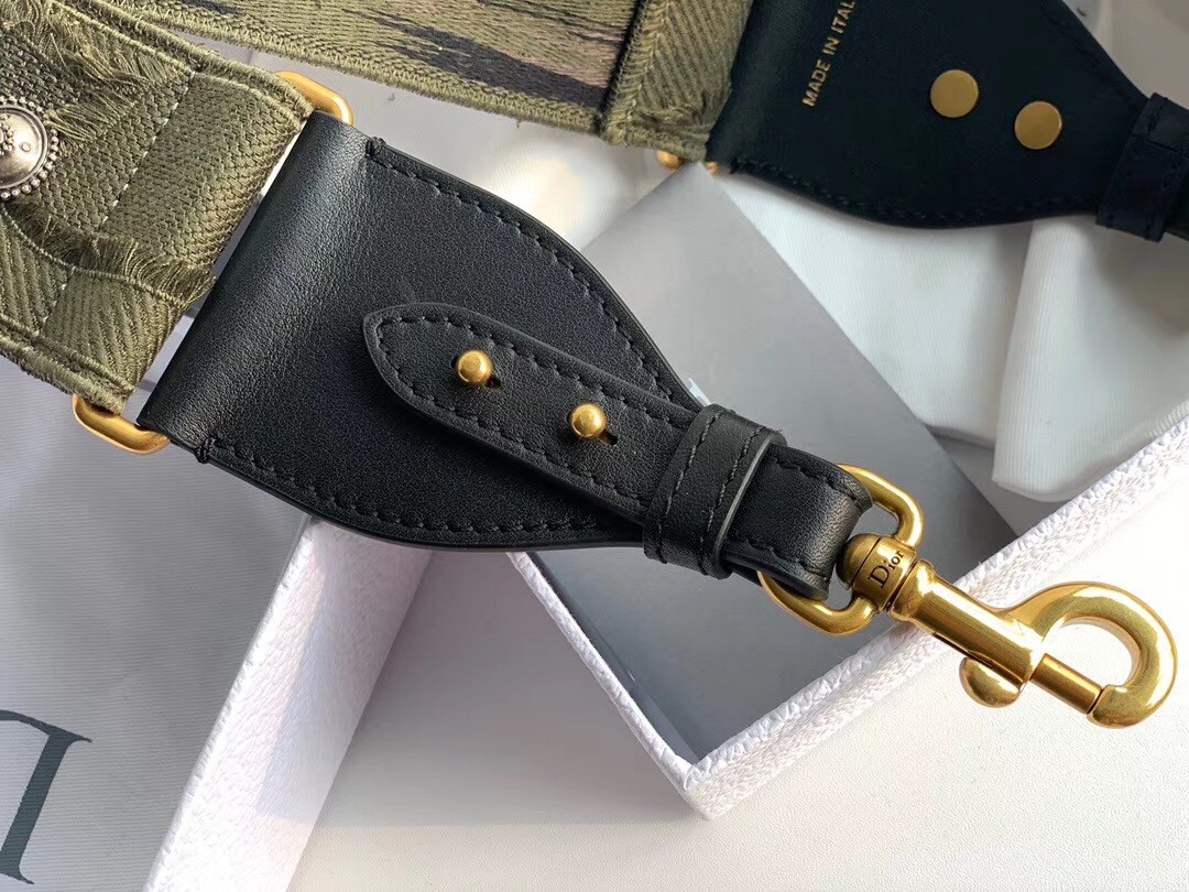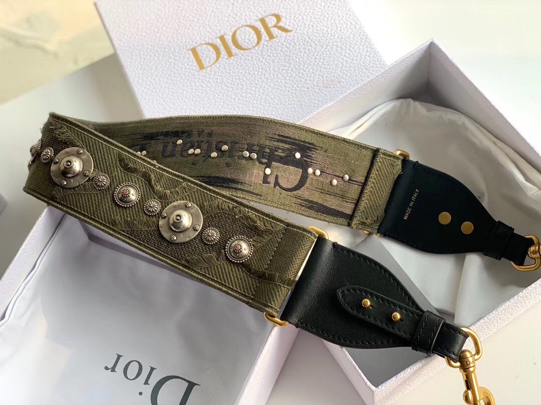 A wide canvas strap is introduced by Maria Grazia Chiuri to accompany Dior’s most iconic bags like the Saddle or Lady Dior. Made from embroidered green canvas and adorned with a frieze of medallions, the strap elevates the legendary bags with a touch of comfort and a fresh versatile attitude.