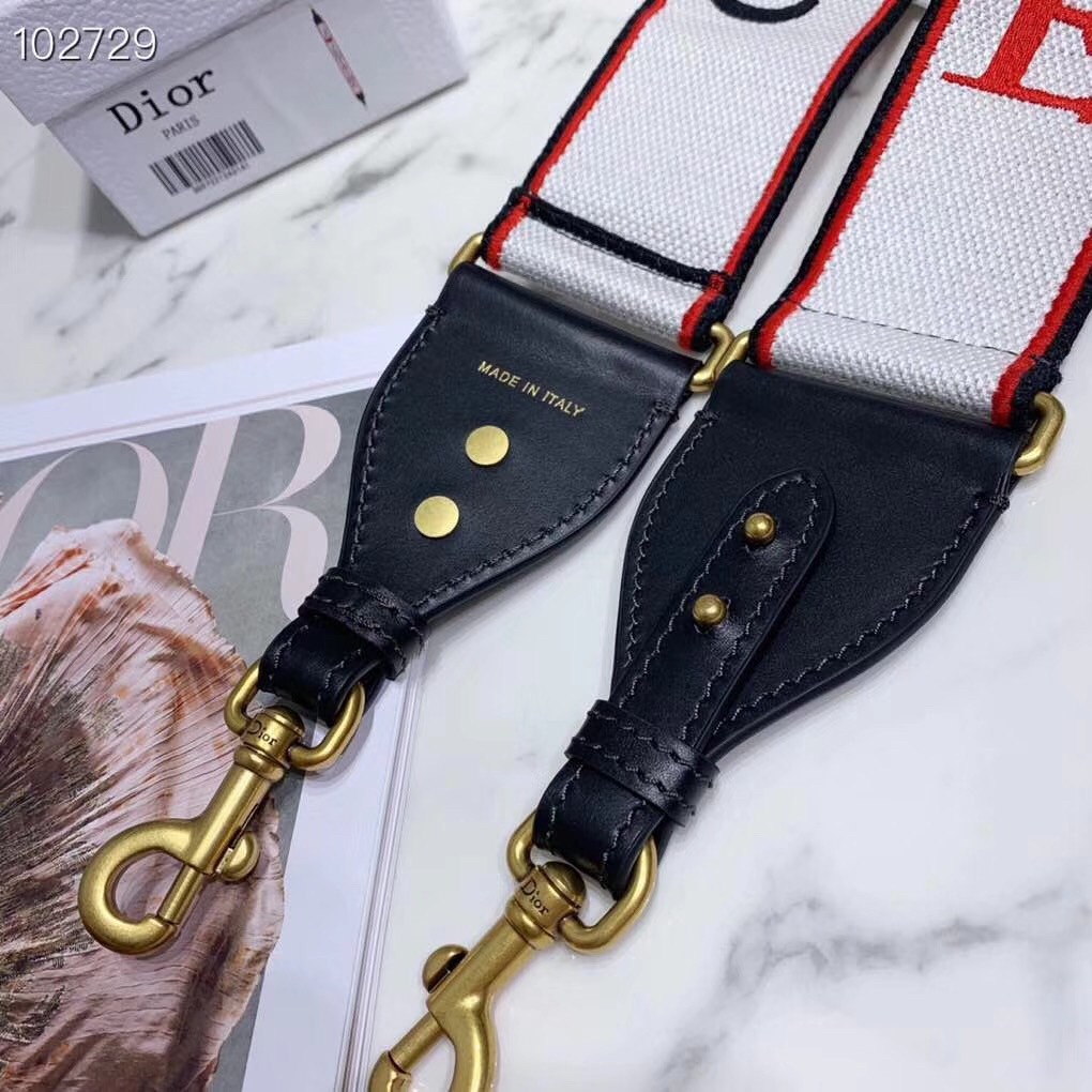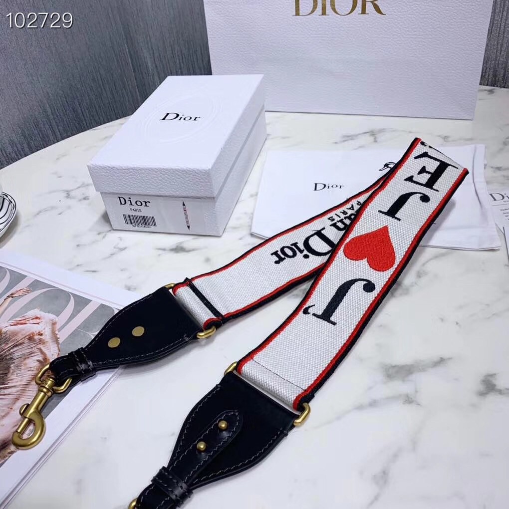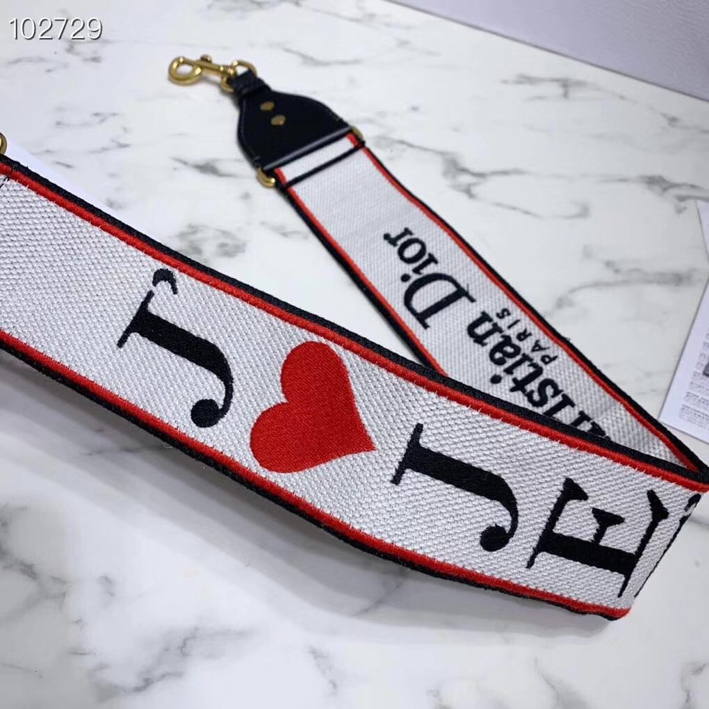 A wide canvas strap is introduced by Maria Grazia Chiuri to accompany Dior’s most iconic bags like the Saddle or Lady Dior. Made from canvas embroidered with a multicolored "Je t’aime" motif and portraying the 'Christian Dior' signature, the strap elevates the legendary bags with a touch of comfort and a fresh versatile attitude.