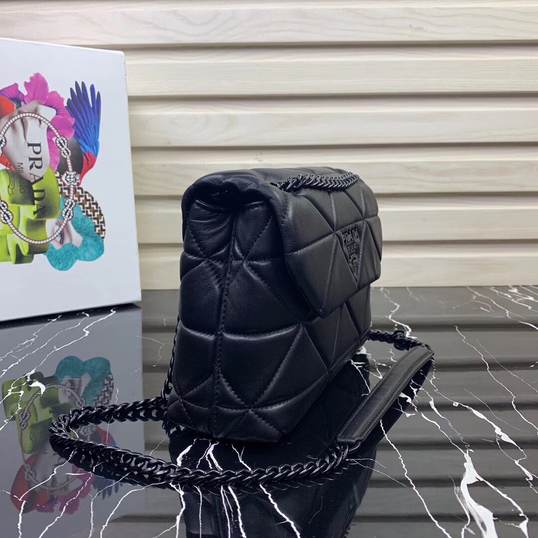 Feminine in design,the Prada Spectrum small shoulder bag is characterized by a geometric motif designed by the stitching on the nappa leather. It has a tonal metal lettering logo.