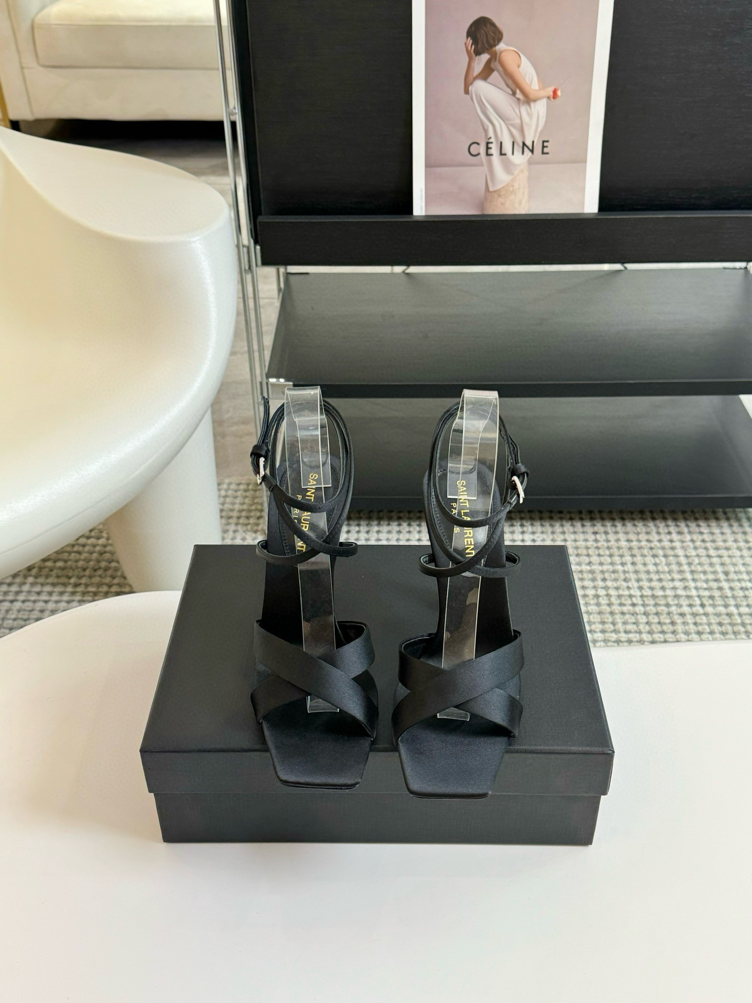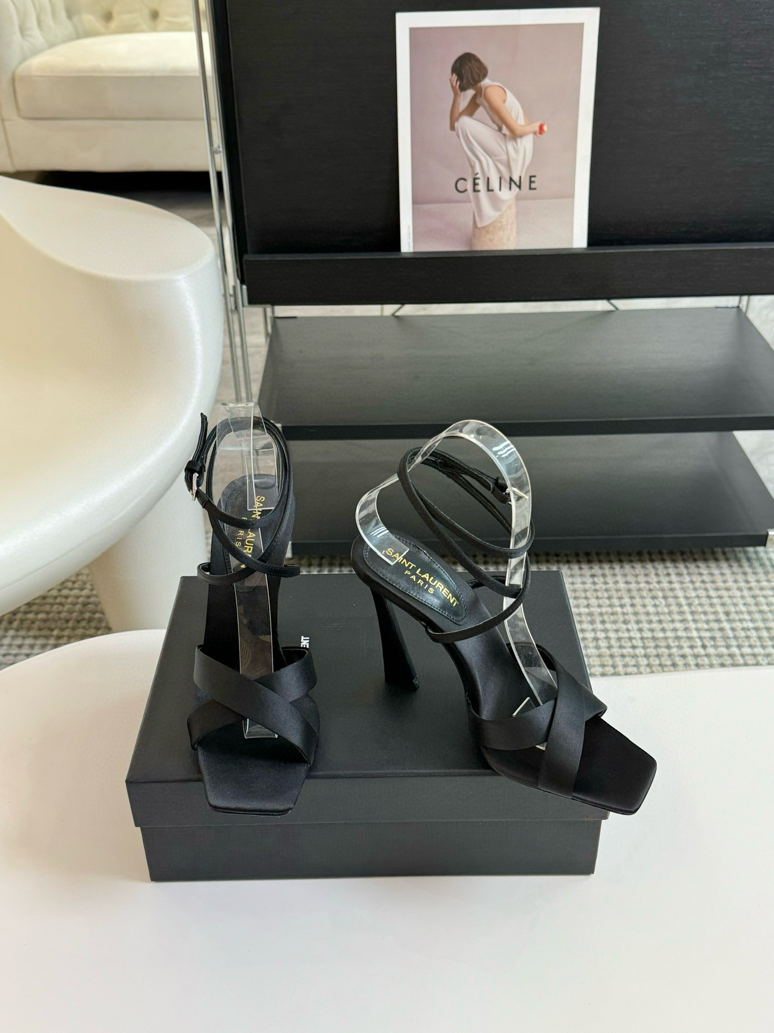 Saint Laurent Corinne Sandals 110mm in Black Satin