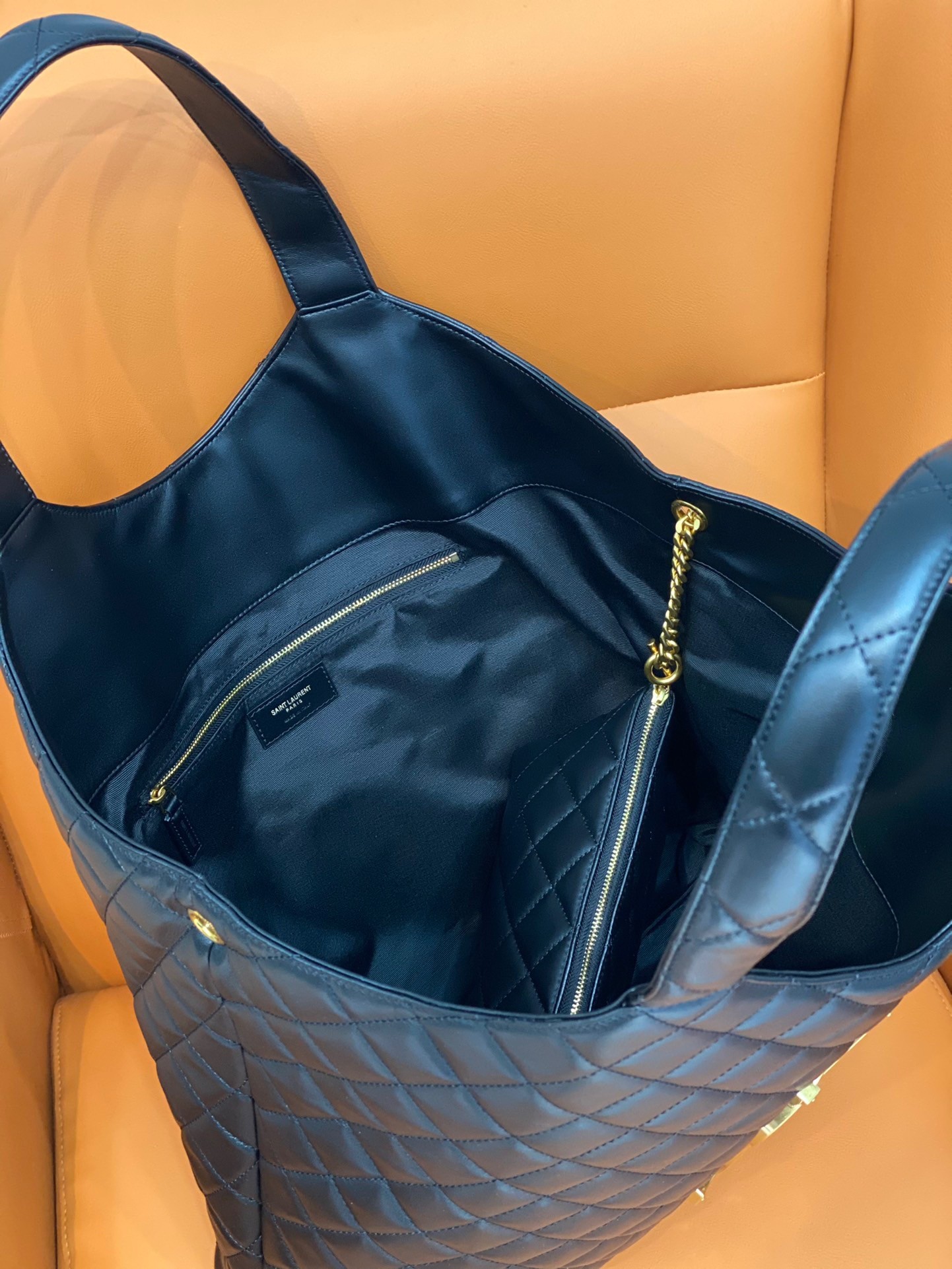 Saint Laurent Icare Maxi Shopping Bag In Black Quilted Lambskin
