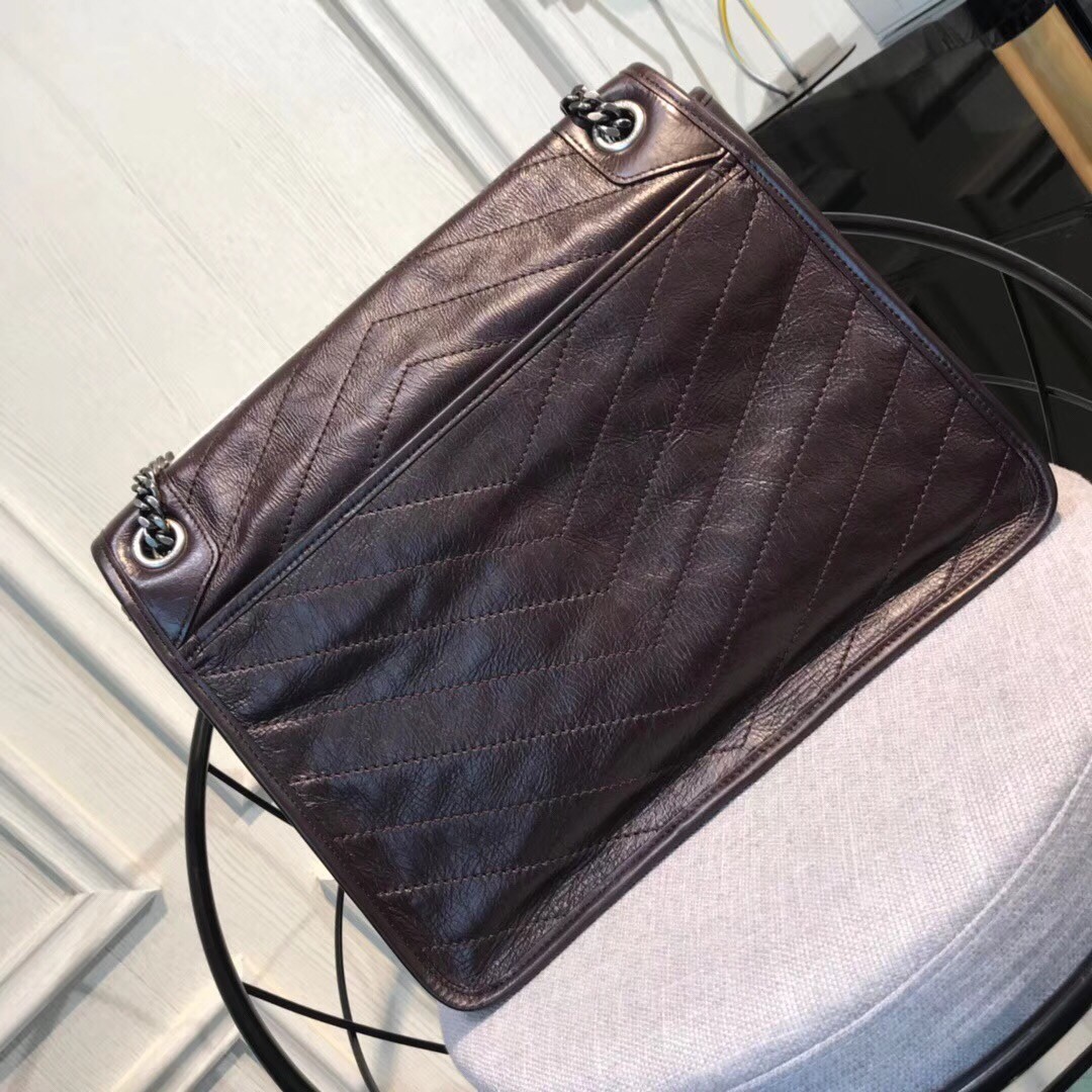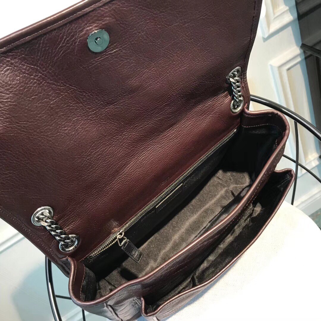 Saint Laurent Large Niki Chain Bag In Bordeaux Crinkled Leather