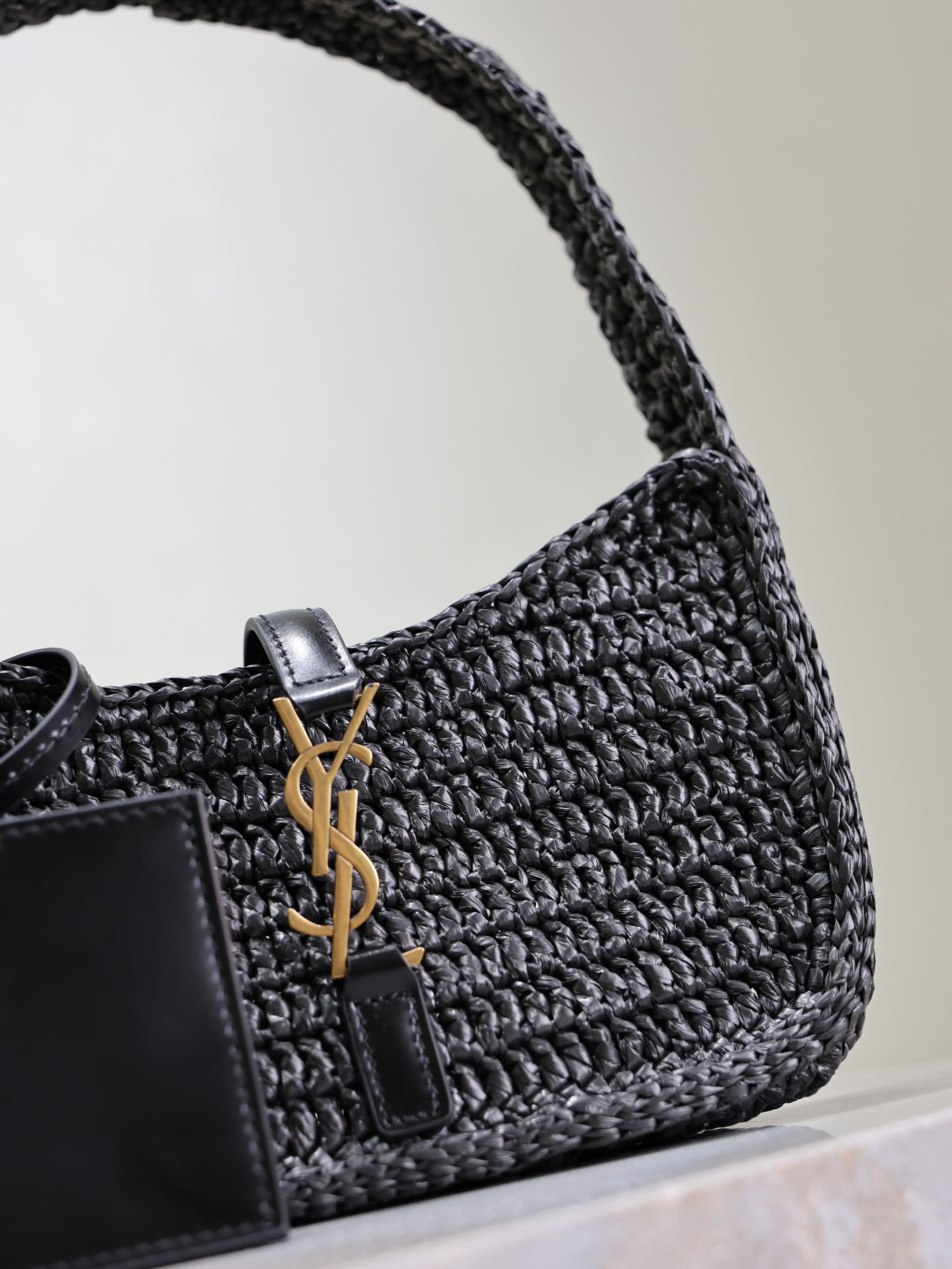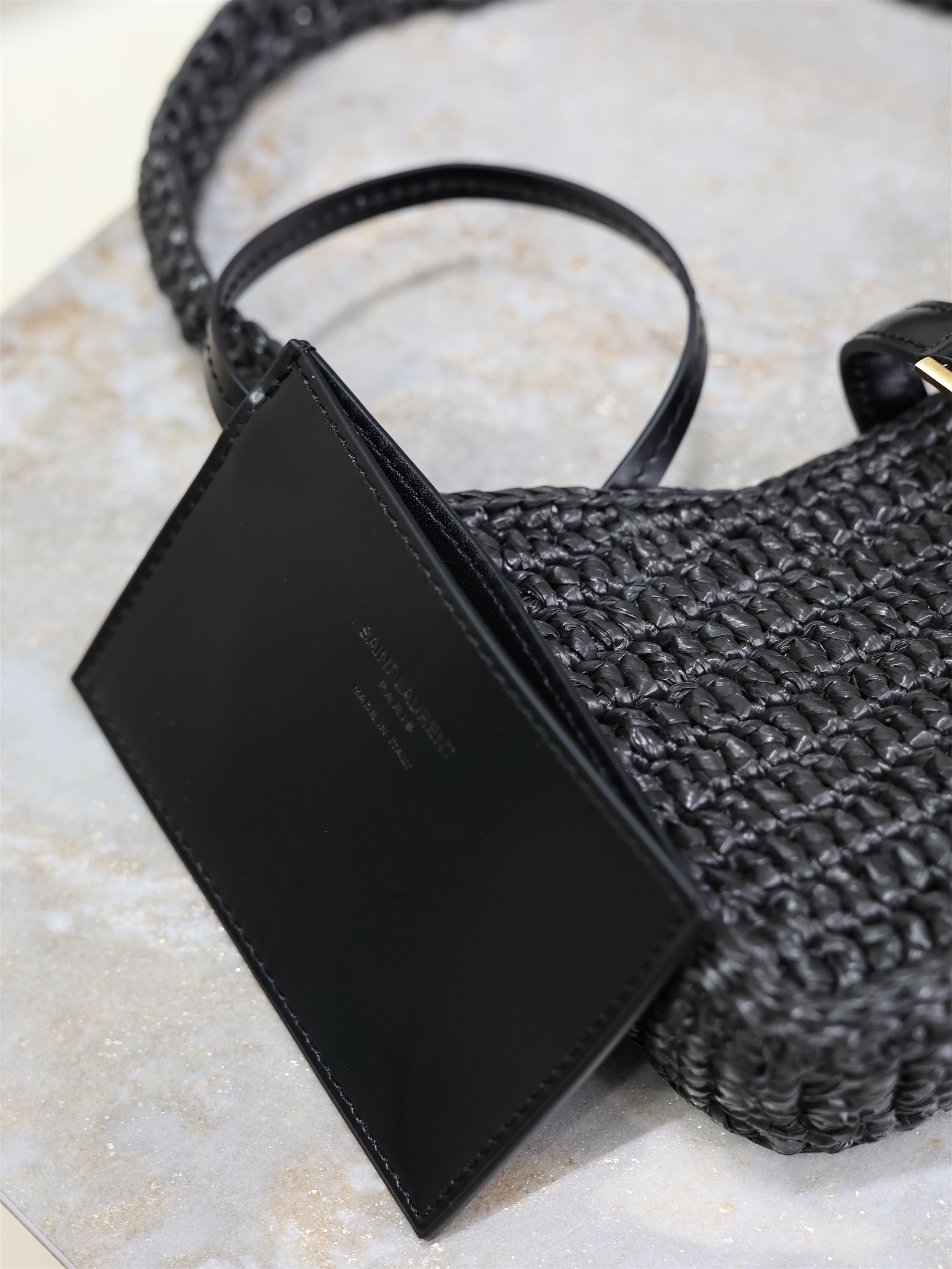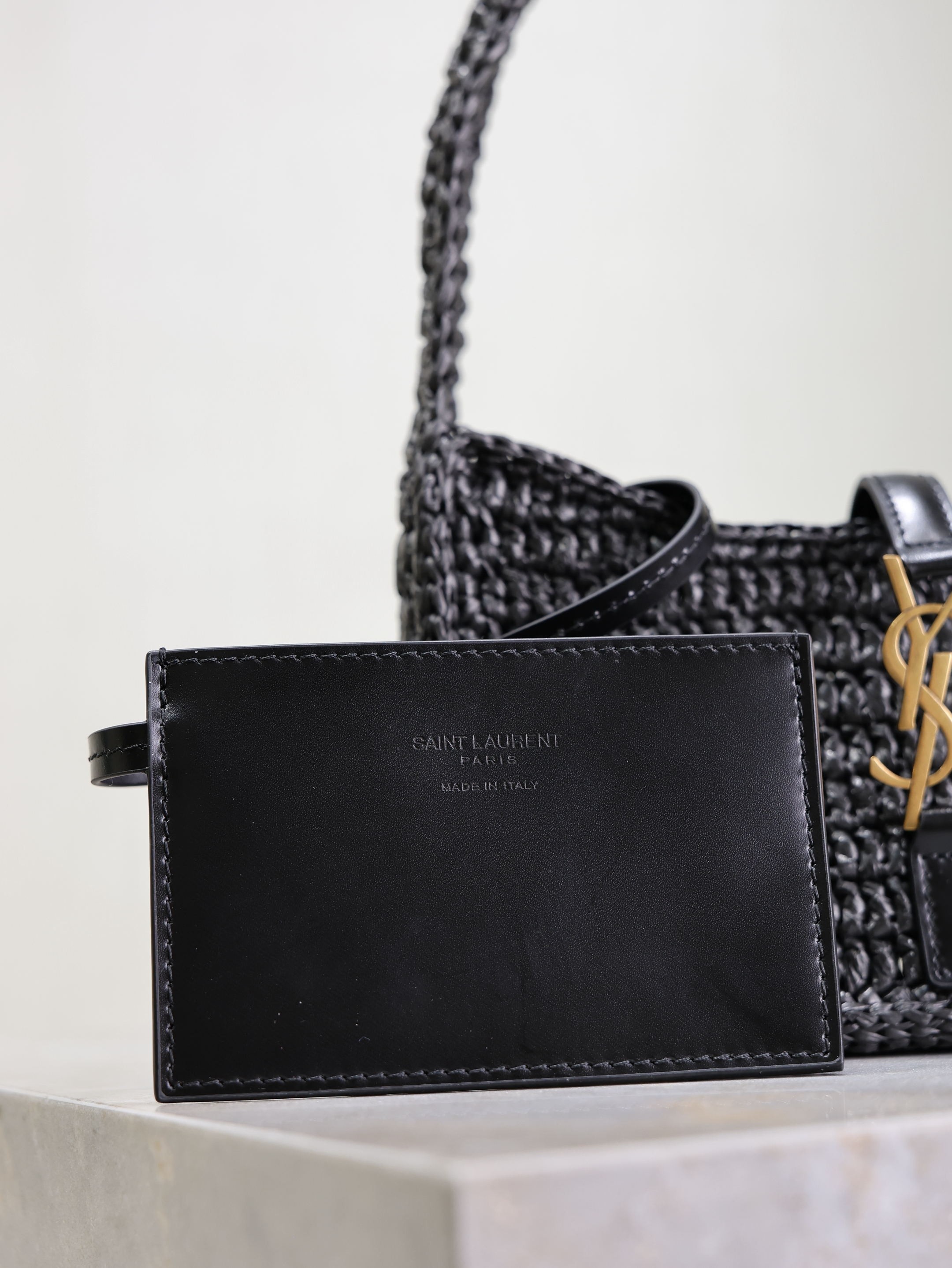 Saint Laurent Le 5 À 7 Hobo Mini Bag in Black Raffia