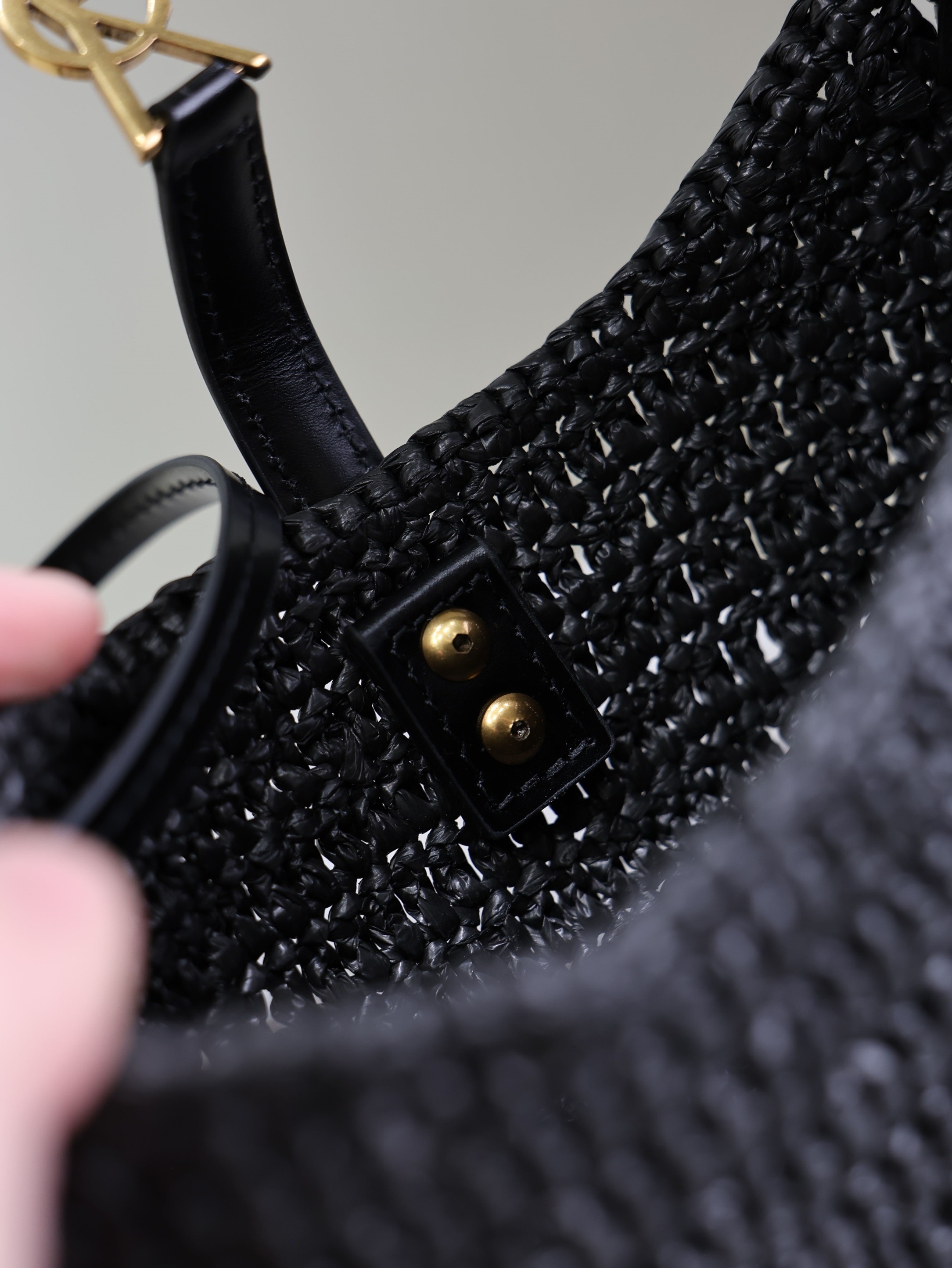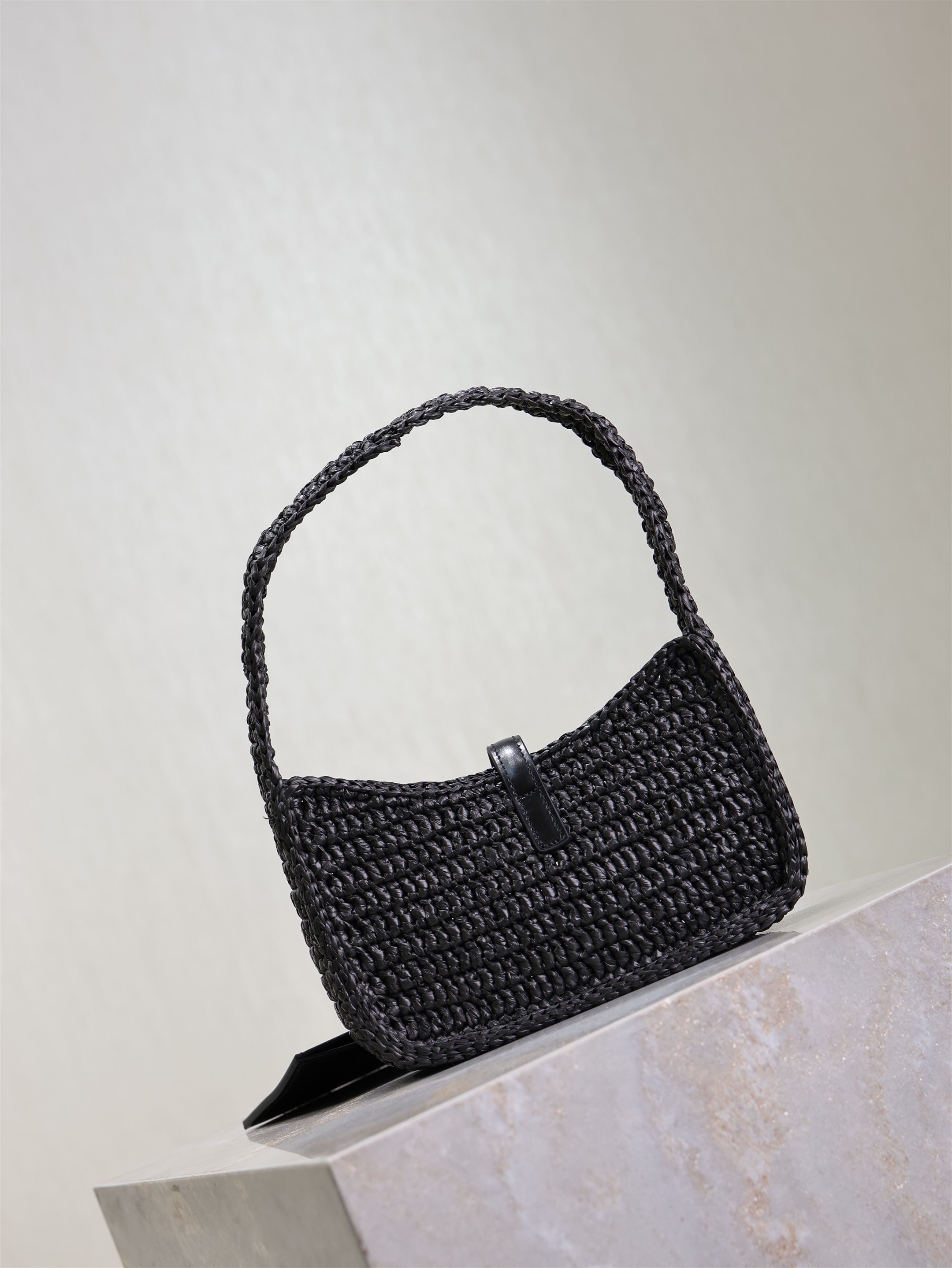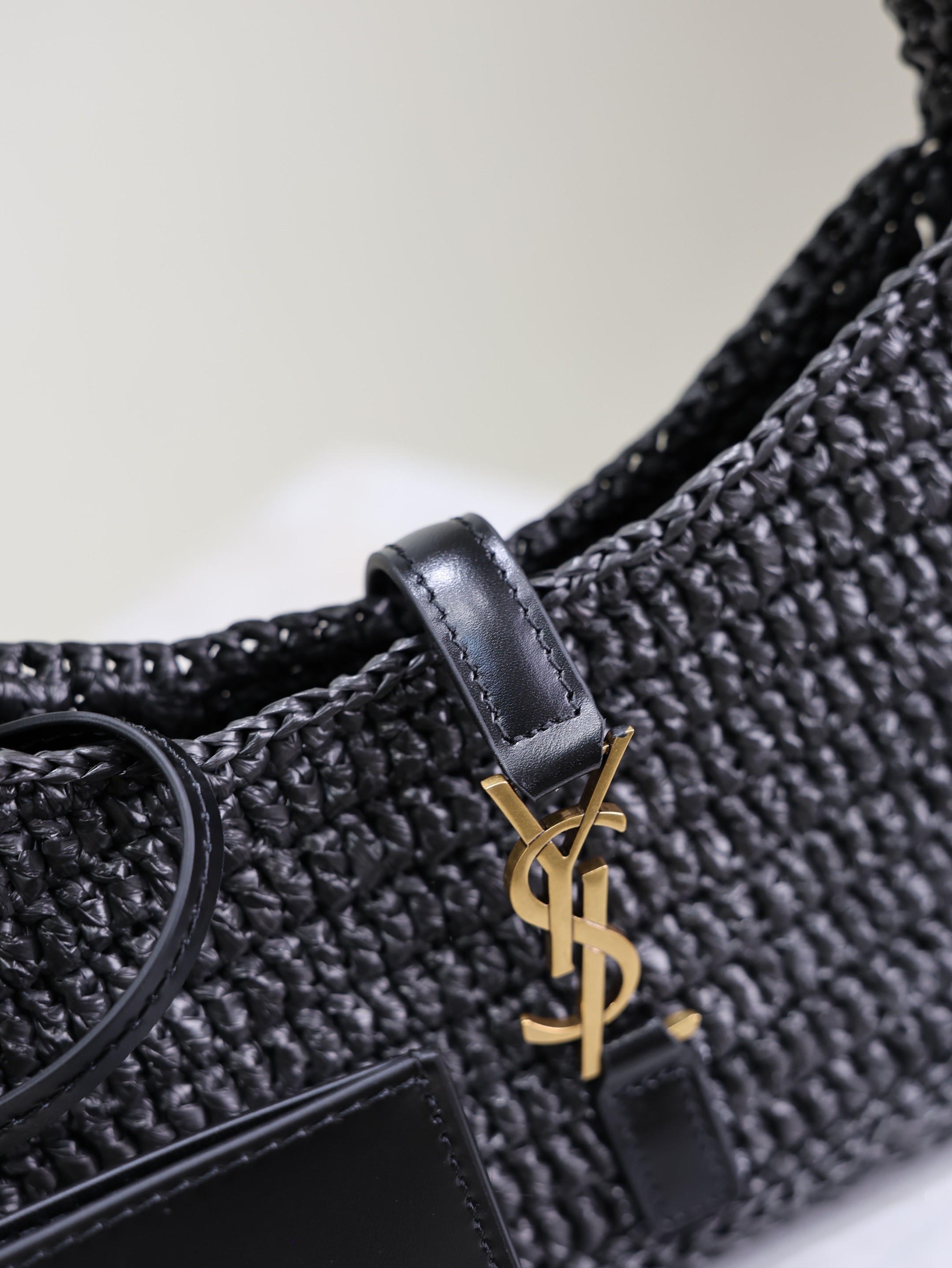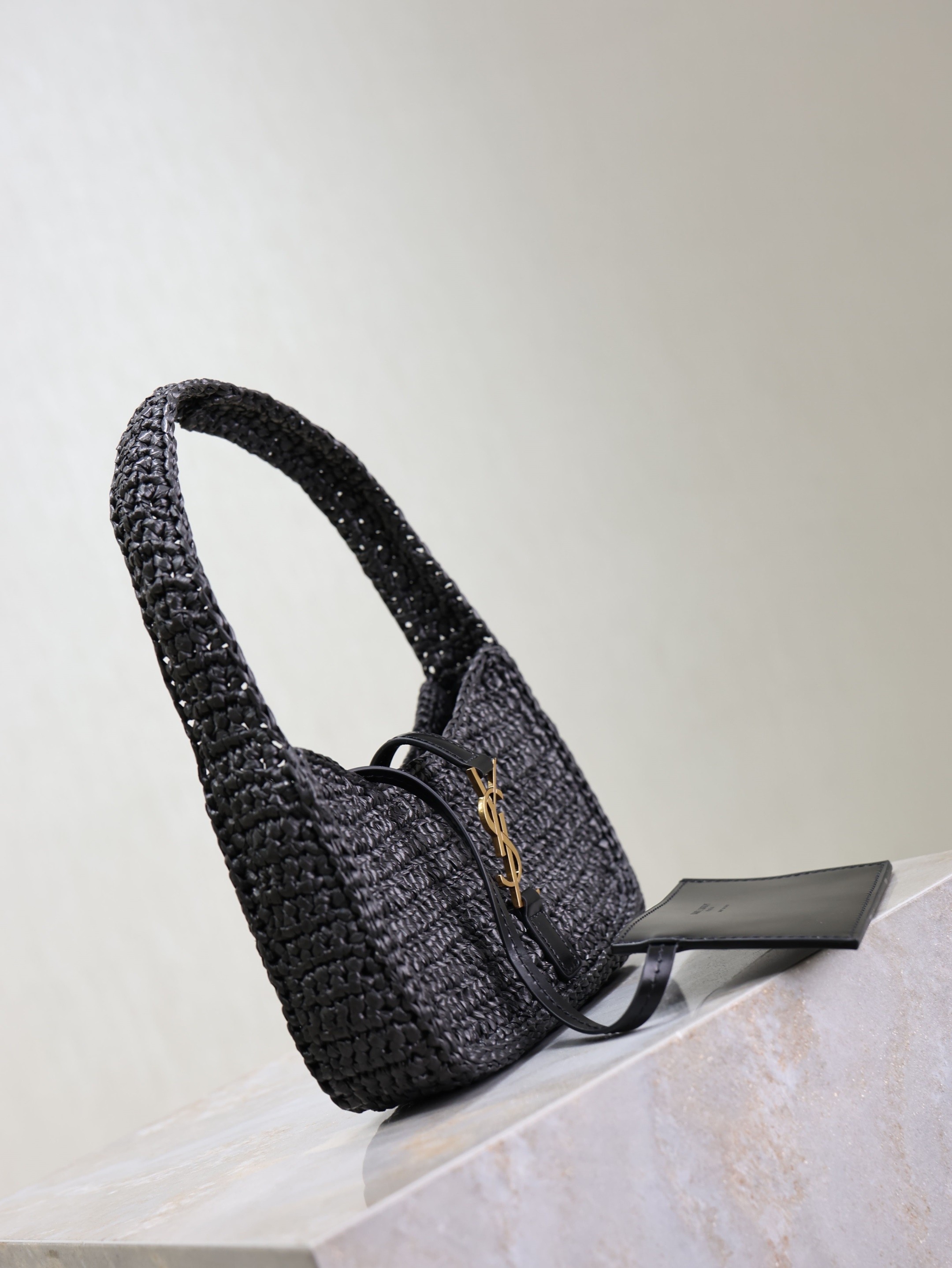 Saint Laurent Le 5 À 7 Hobo Mini Bag in Black Raffia