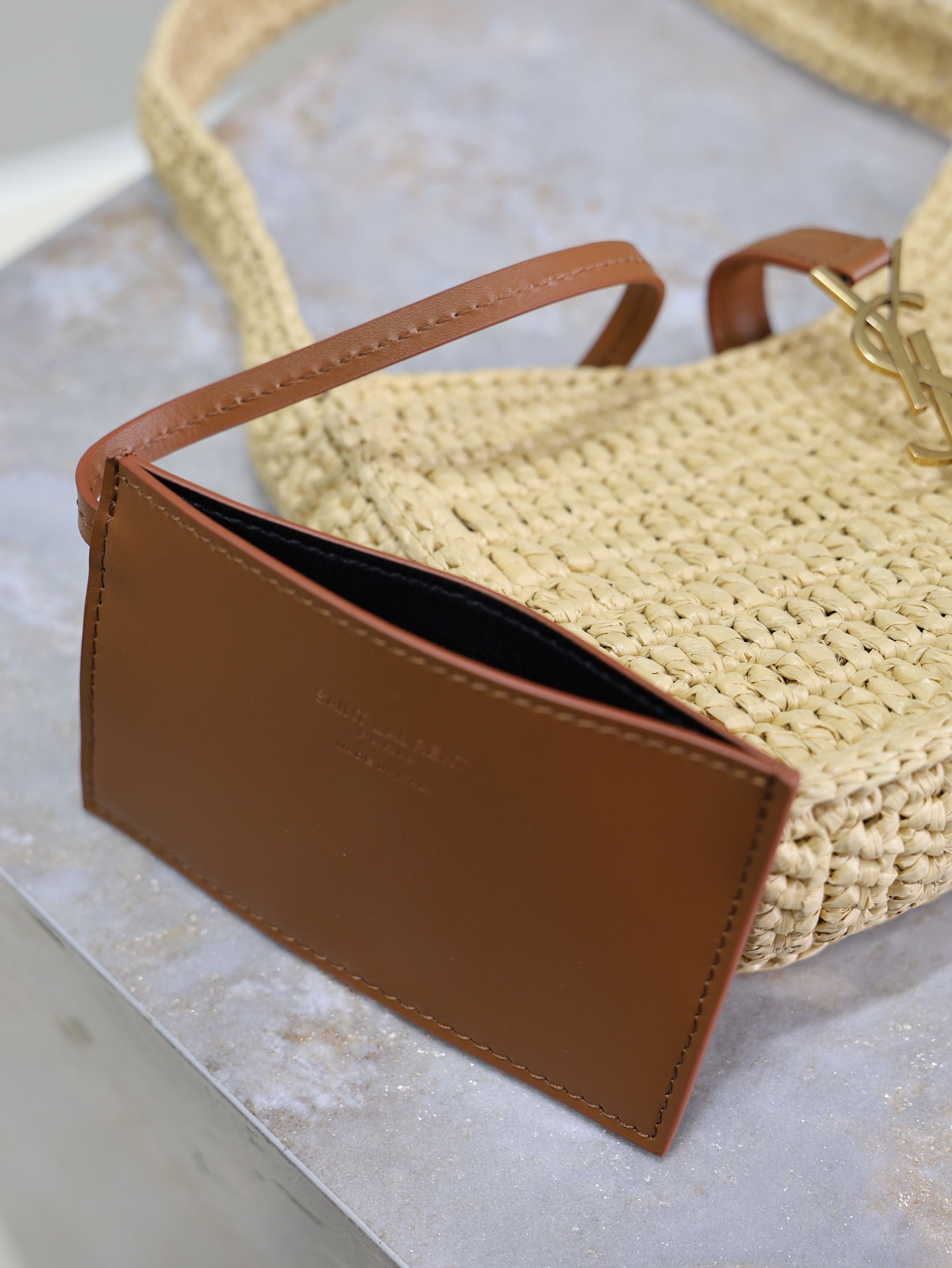 Saint Laurent Le 5 À 7 Hobo Mini Bag in Natural Raffia