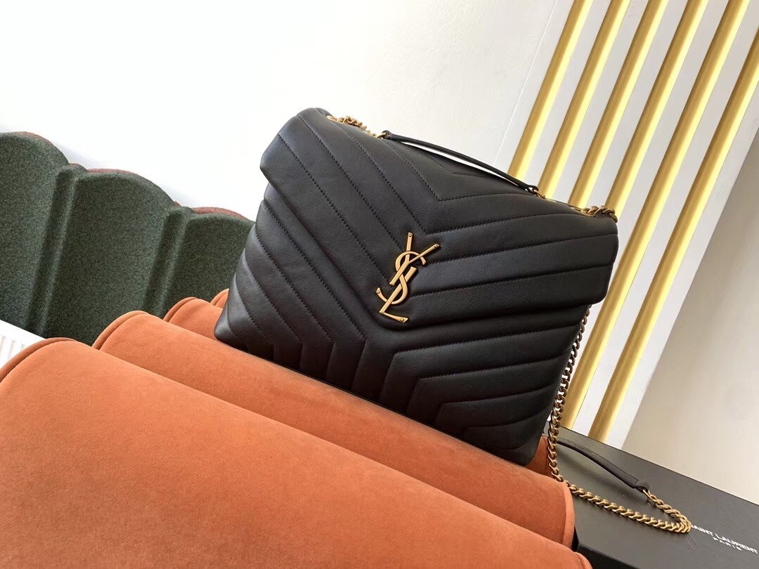 Saint Laurent Loulou Medium Bag In Black Matelasse Leather