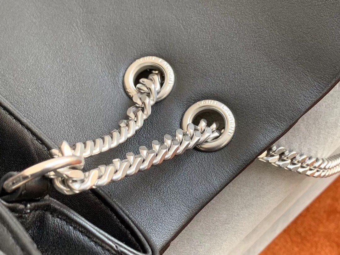 - Leather and metal chain strap can be worn doubled on the shoulder