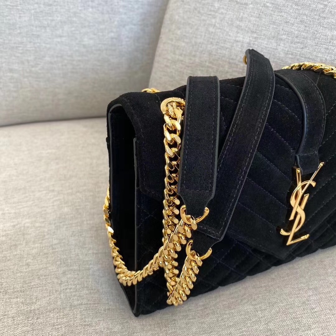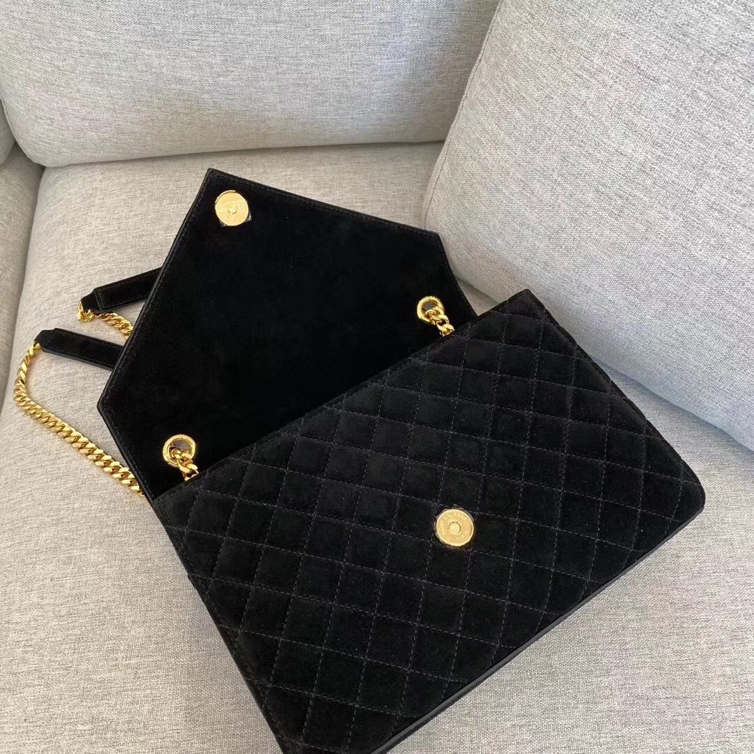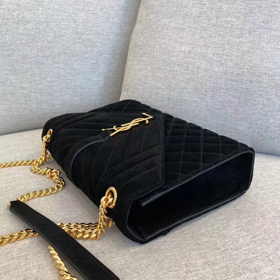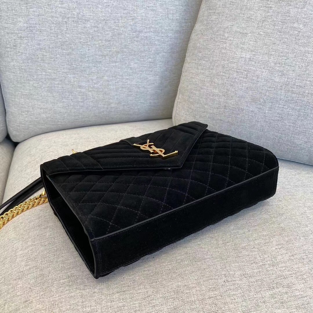 Saint Laurent Medium Envelope Bag In Black Suede
