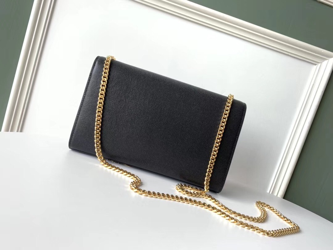 Lifted with the now iconic YSL logo lettering to the front dating back to the 1960s, the Kate shoulder bag from Saint Laurent is as timeless as it is glamorous. Crafted from grained leather and detailed with a heritage tassel, open the flap front to reveal an interior perfectly sized for your mobile phone and lipstick. Have it swing from the chain shoulder strap or tuck it inside and carry as a clutch.