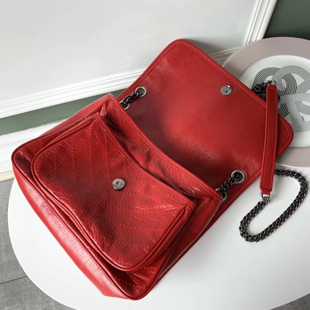 Saint Laurent Medium Niki Bag In Red Crinkled Leather