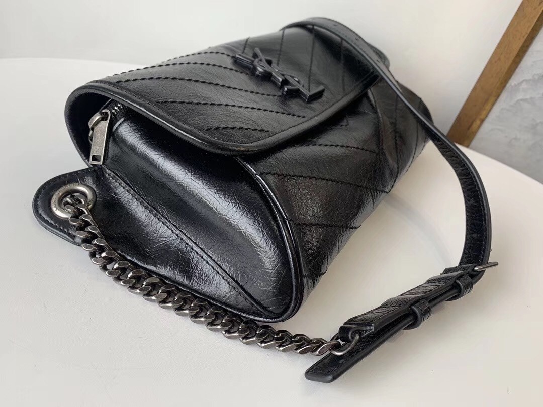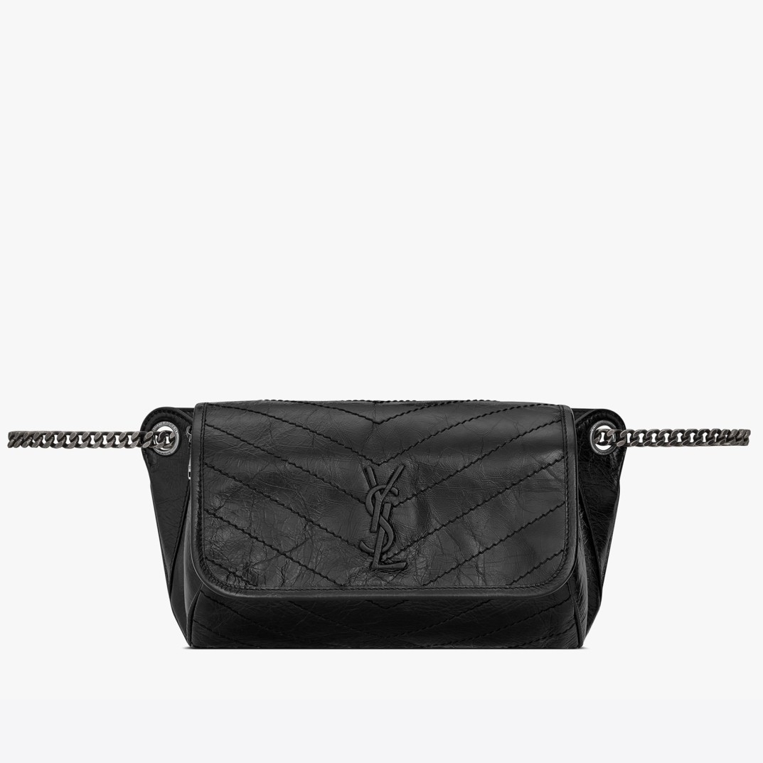Saint Laurent Niki Body Bag In Black Crinkled Vintage Leather