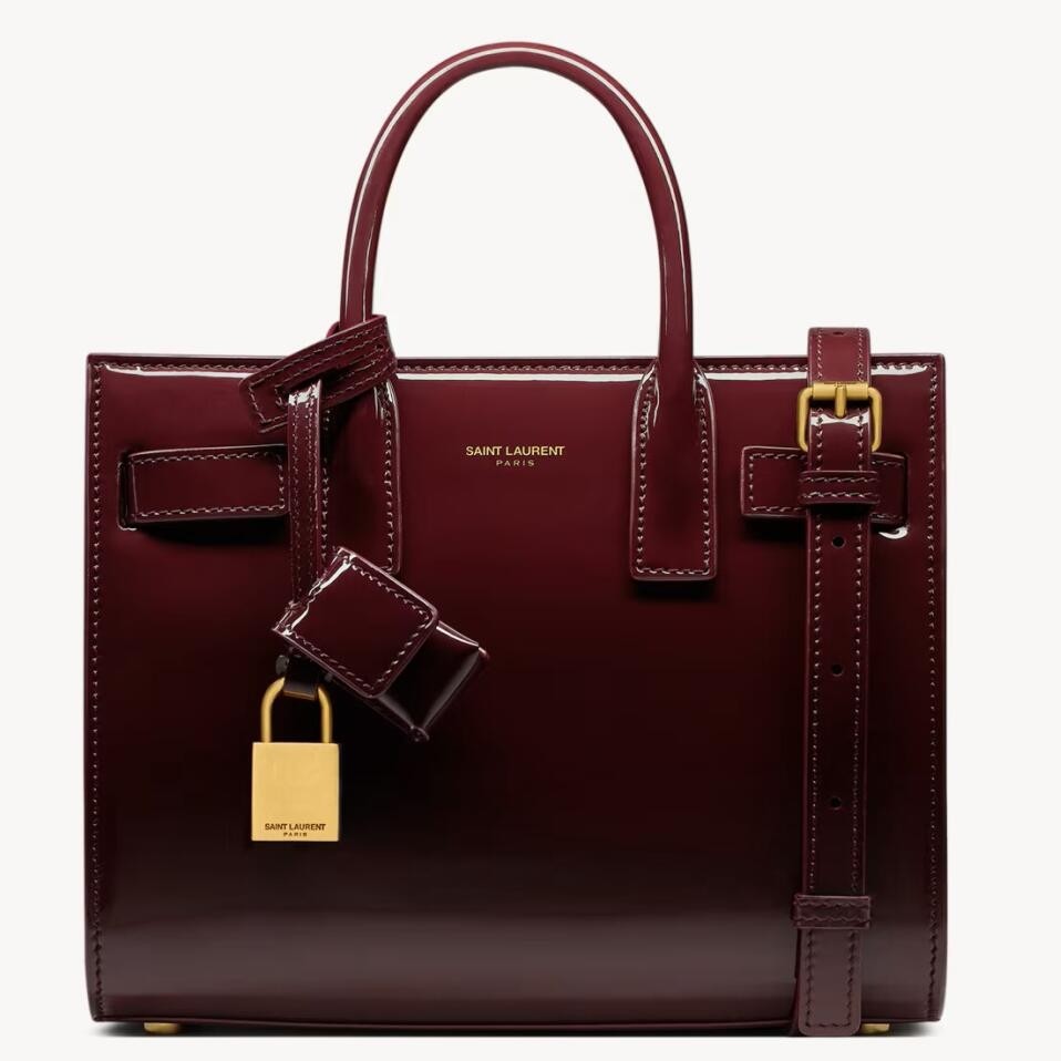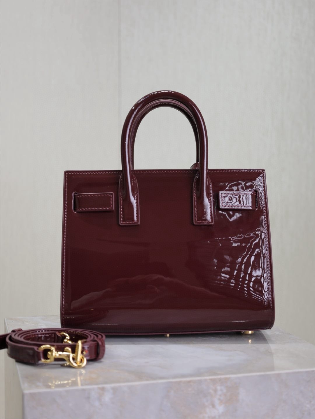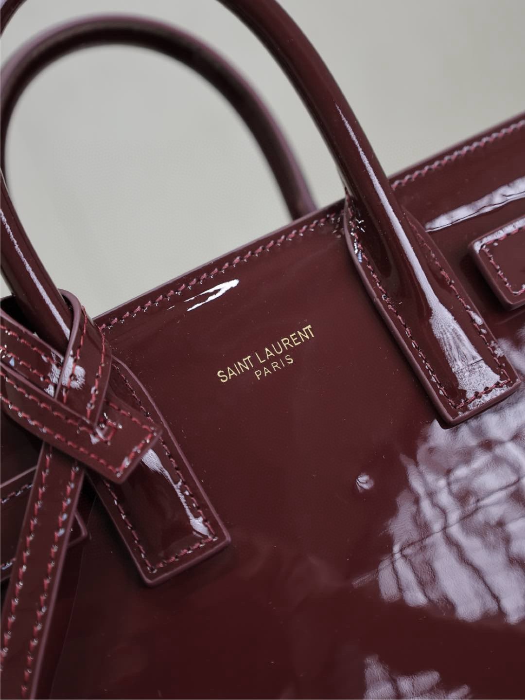 Saint Laurent Sac De Jour Nano Bag in Bordeaux Patent Calfskin